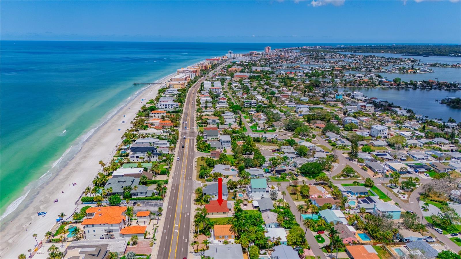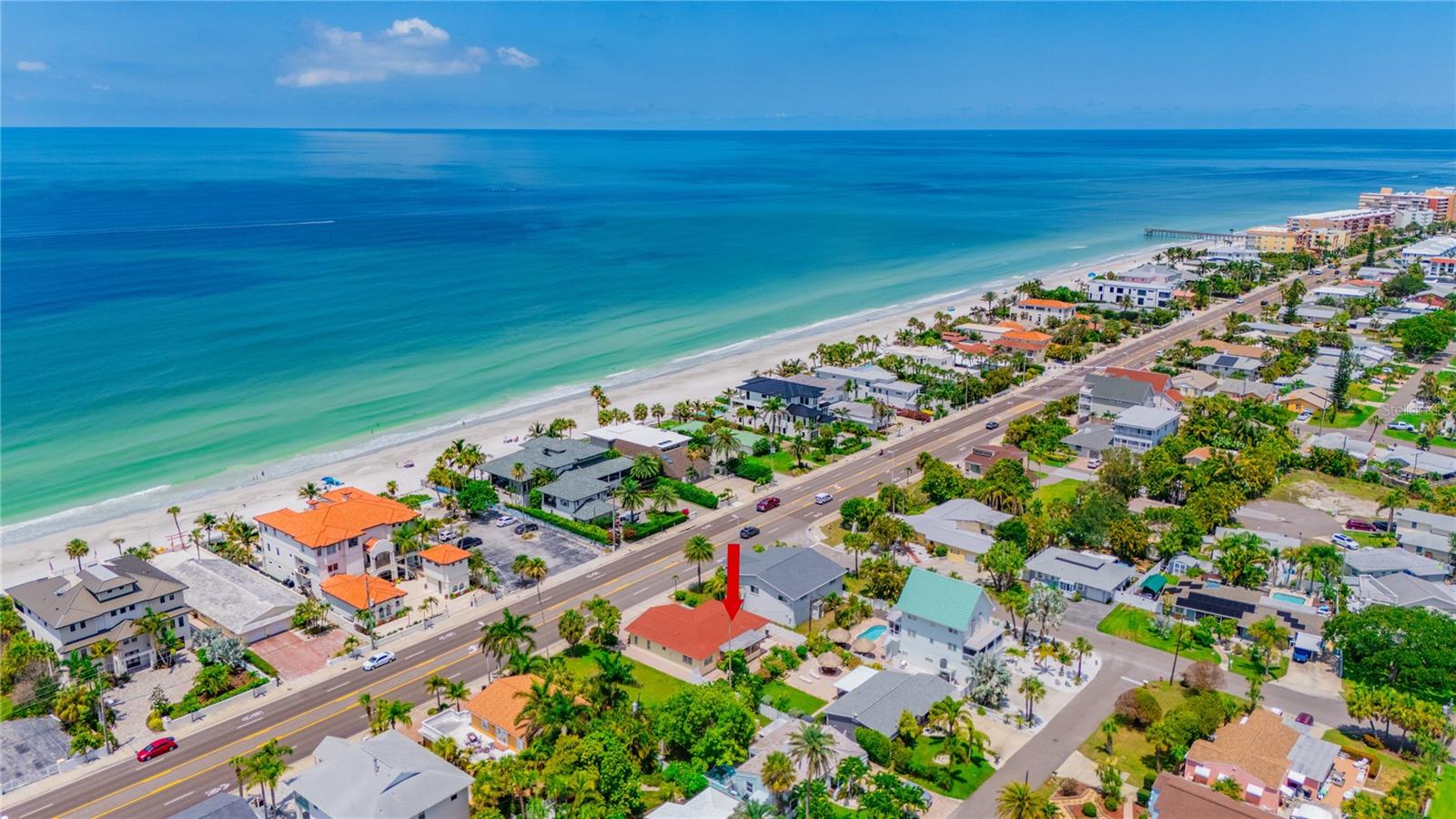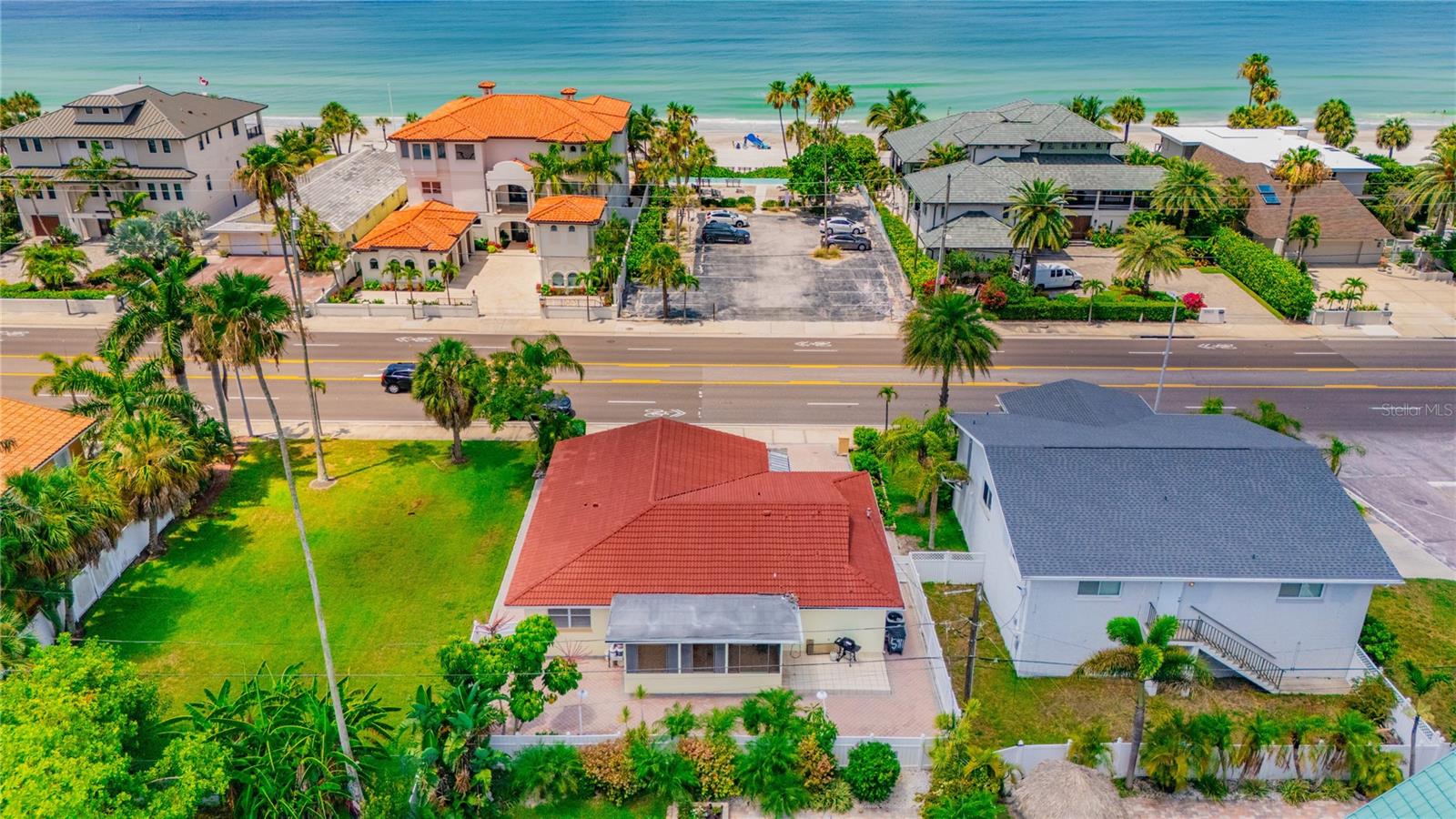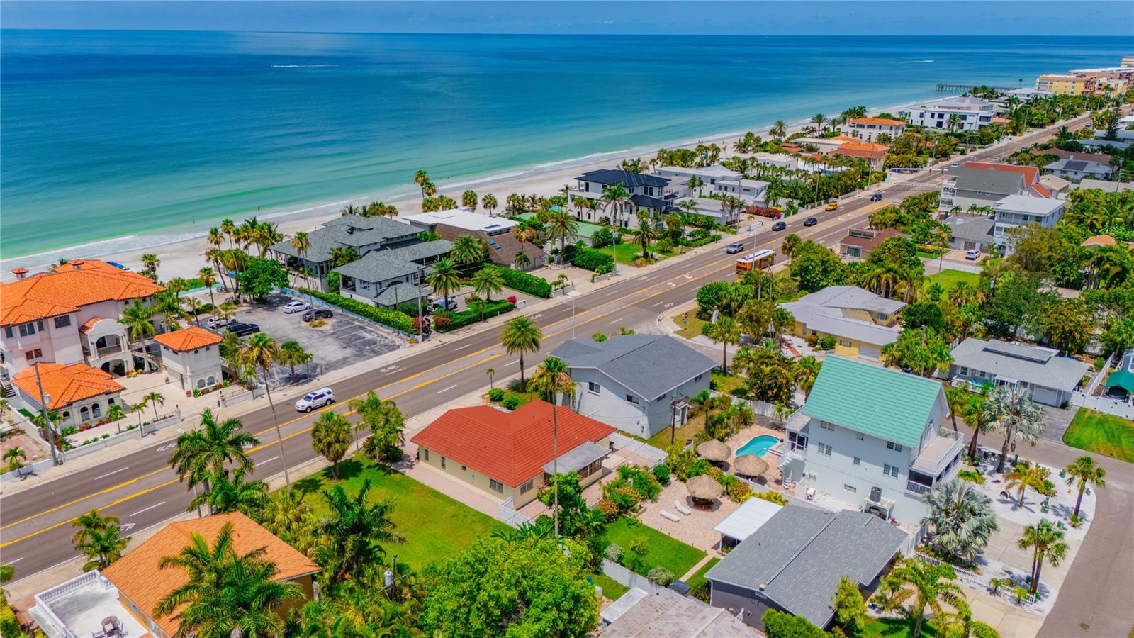 VACATION GETAWAYS OR YEAR-ROUND OCCUPANCY BEACH VIEWS 2 BEDROOM 2 BATHROOMS STEPS FROM THE BEACH. This 2 bedroom, 2 bathroom, 1612 sqft home is perfect for your weekend getaway or a smart investment. As you step inside, you are greeted by the soothing sound of waves crashing on the beach. The home is bathed in natural light, welcoming you into a spacious formal sitting area featuring a large picture window, perfect for enjoying stunning sunsets. The open floor plan is ideal for entertaining, with a kitchen that boasts ample storage and counter space, wood cabinets, and granite countertops, perfect for the family chef. The family room, situated at the back of the home, seamlessly connects to the kitchen, dining, and formal living areas, enhancing the open feel. The Primary Bedroom is a true oasis, offering water views and a beautiful en suite bathroom. It is generously sized, providing a peaceful retreat. The guest bedroom, located at the back of the home, offers privacy and access to a guest bathroom, making it ideal for visitors. Step out from the family room onto a nicely sized lanai, perfect for enjoying your morning coffee. The backyard is designed with pavers throughout, minimizing maintenance. Equipped with a oversized one car garage. This home is incredibly convenient to the beach – just a walk across the street and you're there! Experience the beach lifestyle in Redington Beach. Close to shopping and restaurants, this home is a gem that won't last long. Schedule your showing today!