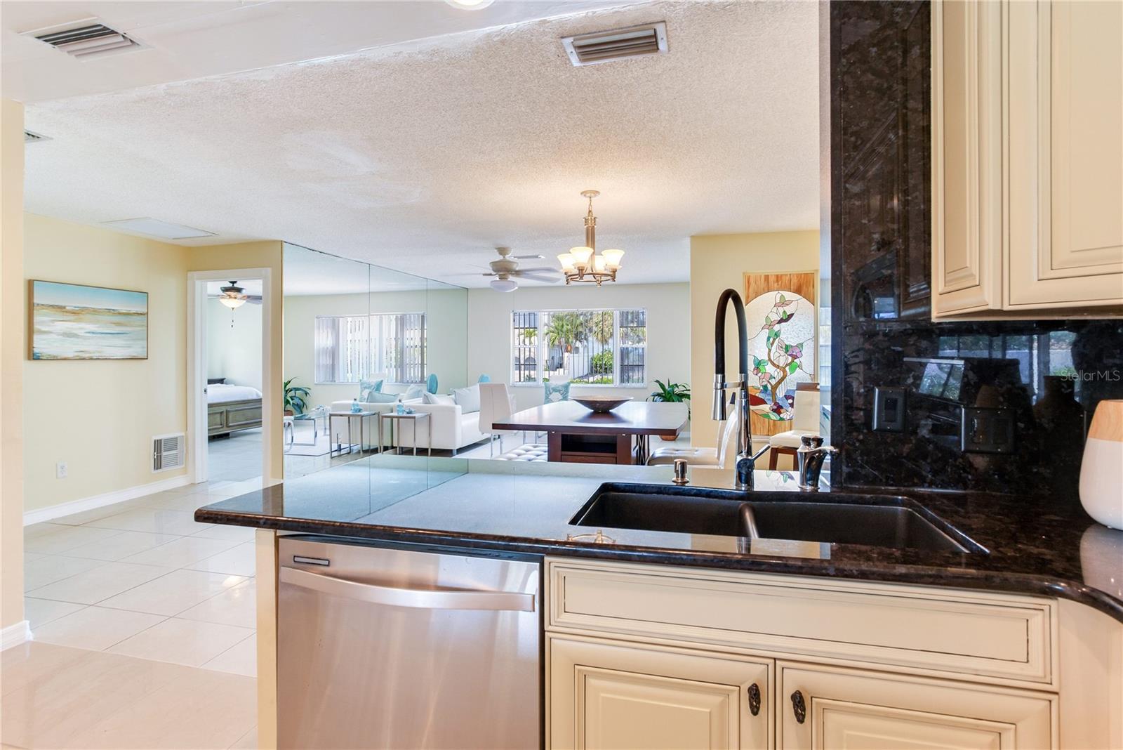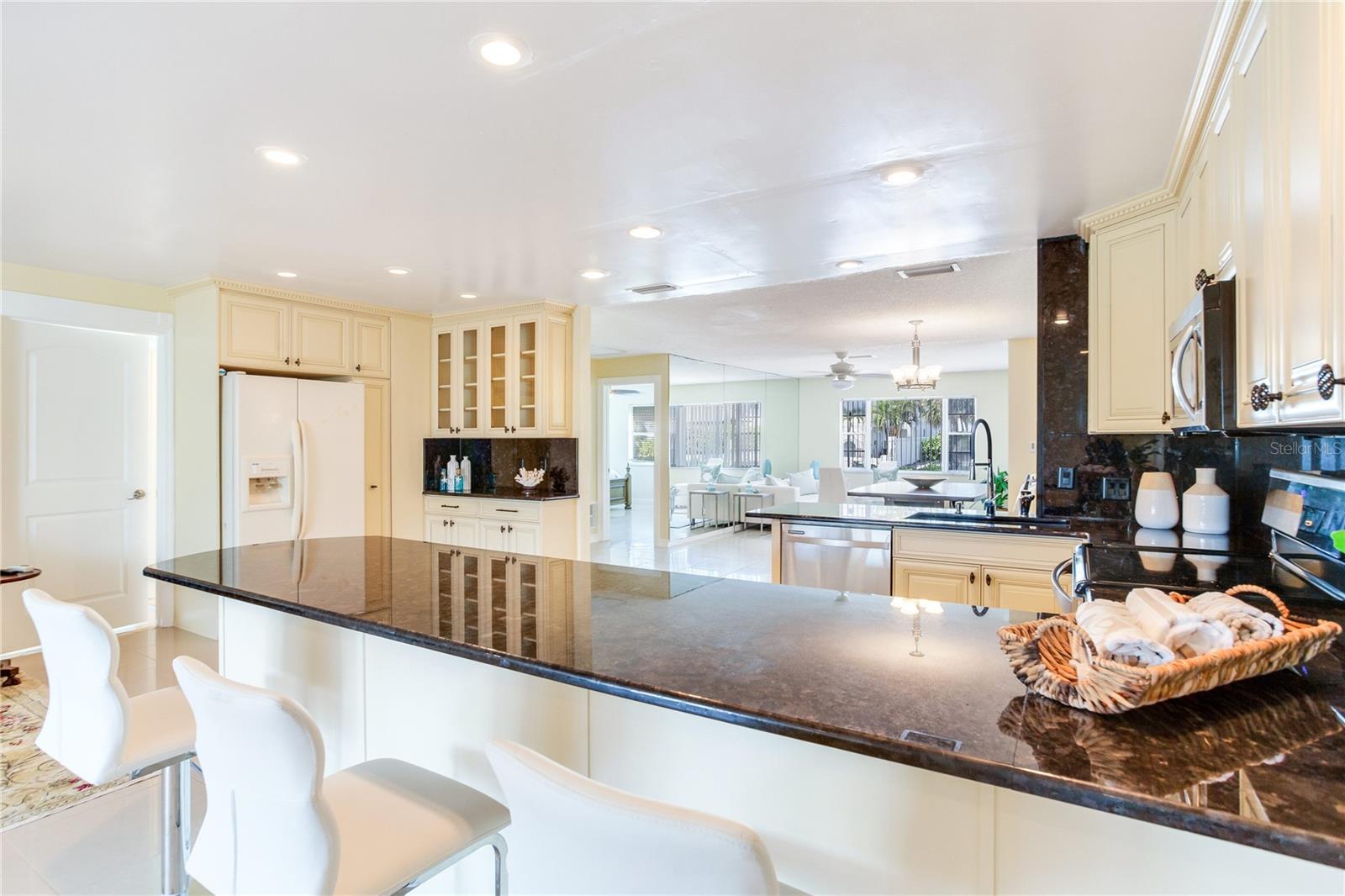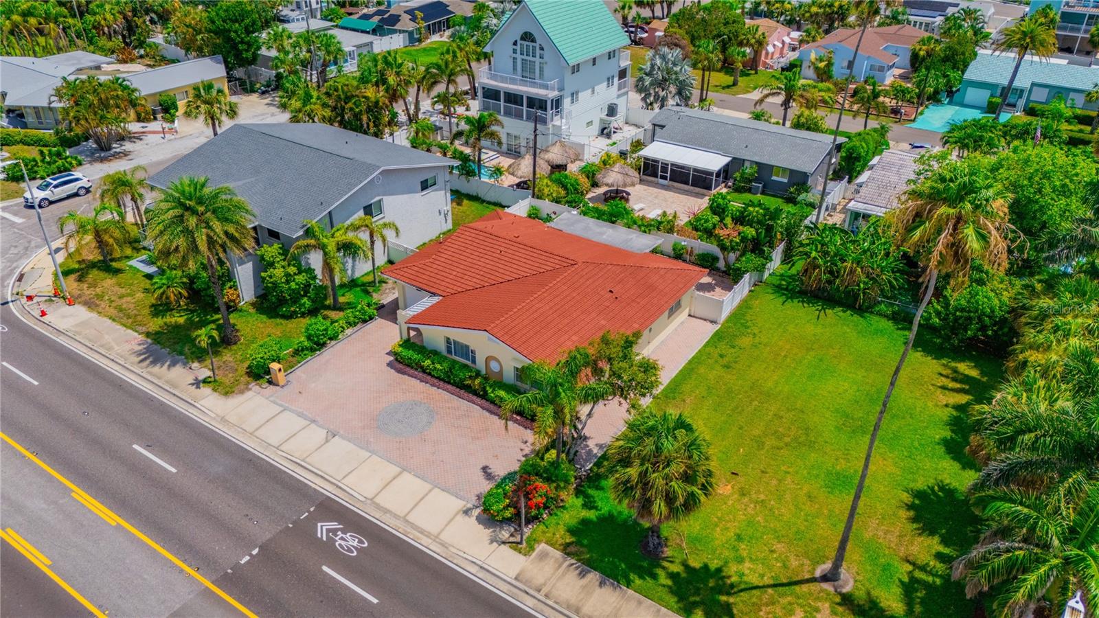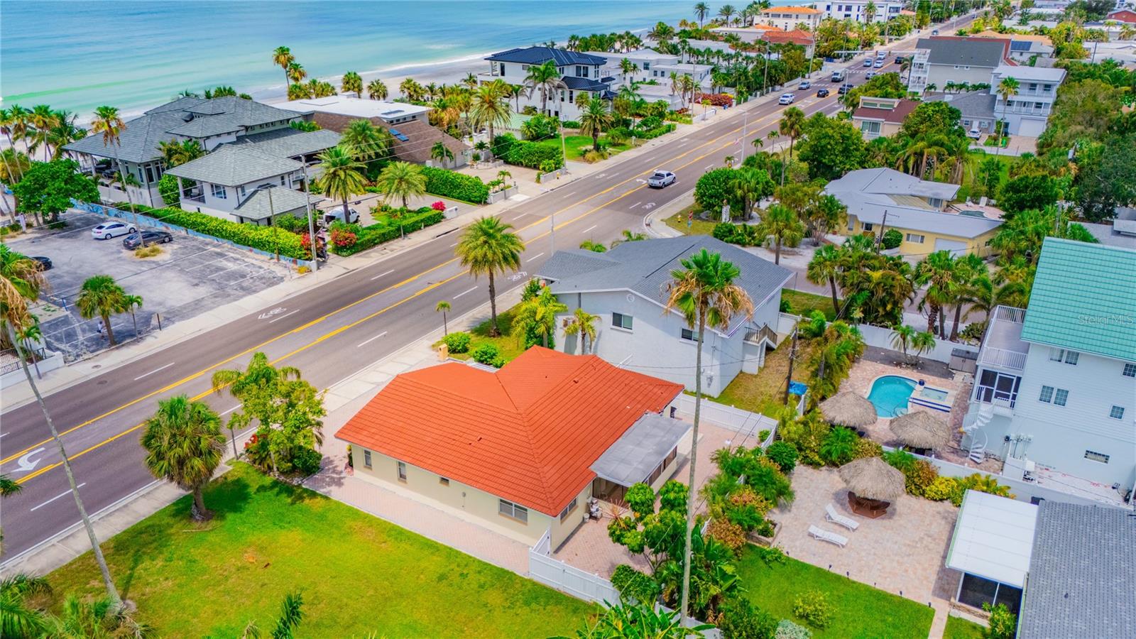VACATION GETAWAYS OR YEAR-ROUND OCCUPANCY BEACH VIEWS 2 BEDROOM 2 BATHROOMS STEPS FROM THE BEACH. This 2 bedroom, 2 bathroom, 1612 sqft home is perfect for your weekend getaway or a smart investment. As you step inside, you are greeted by the soothing sound of waves crashing on the beach. The home is bathed in natural light, welcoming you into a spacious formal sitting area featuring a large picture window, perfect for enjoying stunning sunsets. The open floor plan is ideal for entertaining, with a kitchen that boasts ample storage and counter space, wood cabinets, and granite countertops, perfect for the family chef. The family room, situated at the back of the home, seamlessly connects to the kitchen, dining, and formal living areas, enhancing the open feel. The Primary Bedroom is a true oasis, offering water views and a beautiful en suite bathroom. It is generously sized, providing a peaceful retreat. The guest bedroom, located at the back of the home, offers privacy and access to a guest bathroom, making it ideal for visitors. Step out from the family room onto a nicely sized lanai, perfect for enjoying your morning coffee. The backyard is designed with pavers throughout, minimizing maintenance. Equipped with a oversized one car garage. This home is incredibly convenient to the beach – just a walk across the street and you're there! Experience the beach lifestyle in Redington Beach. Close to shopping and restaurants, this home is a gem that won't last long. Schedule your showing today!