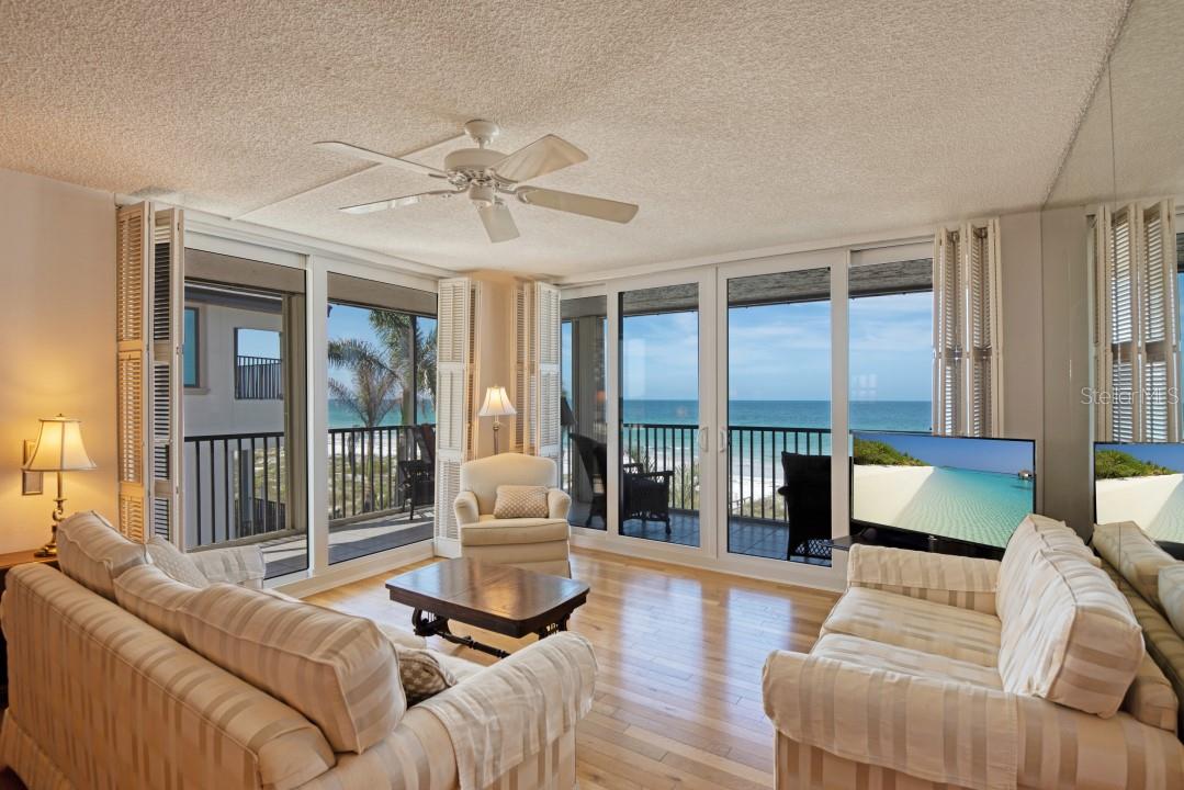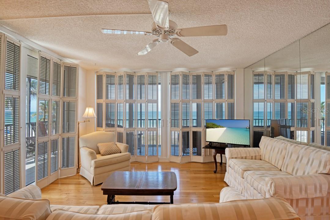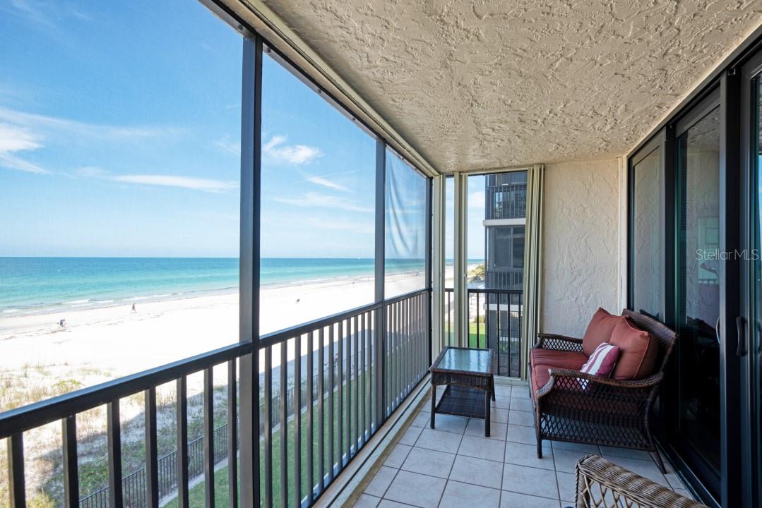Welcome to the Shore Mariner Condominiums where the beautifully landscaped lawn, and large swimming pool, sits directly on the sugary sands of Redington Shores Beach. This beach is unique in that it is quieter than the adjacent tourist heavy beaches, while still being steps from friendly taverns and restaurants .This particular unit is also unique for several reasons. It has a much coveted wrap around lanai that sits directly over the beach. This corner unit provides panoramic views of the beautiful blue waters of the Gulf of Mexico. Mirrored walls also enhance the Key West style of it's vintage louvered shutters. There is also a Bosh washer and dryer in the unit. It has enhanced parking with its deeded large 2 slot parking space under the building. This unit comes with a new powder coated A/C system with 8 year parts and labor warranty. There is also a new stove, new garbage disposal, new hot water heater, new electrical panel, and beautiful new hurricane rated sliding glass doors. Outside hurricane shutters also wrap the porch for added protection.