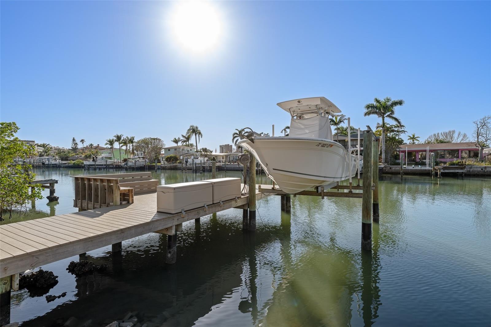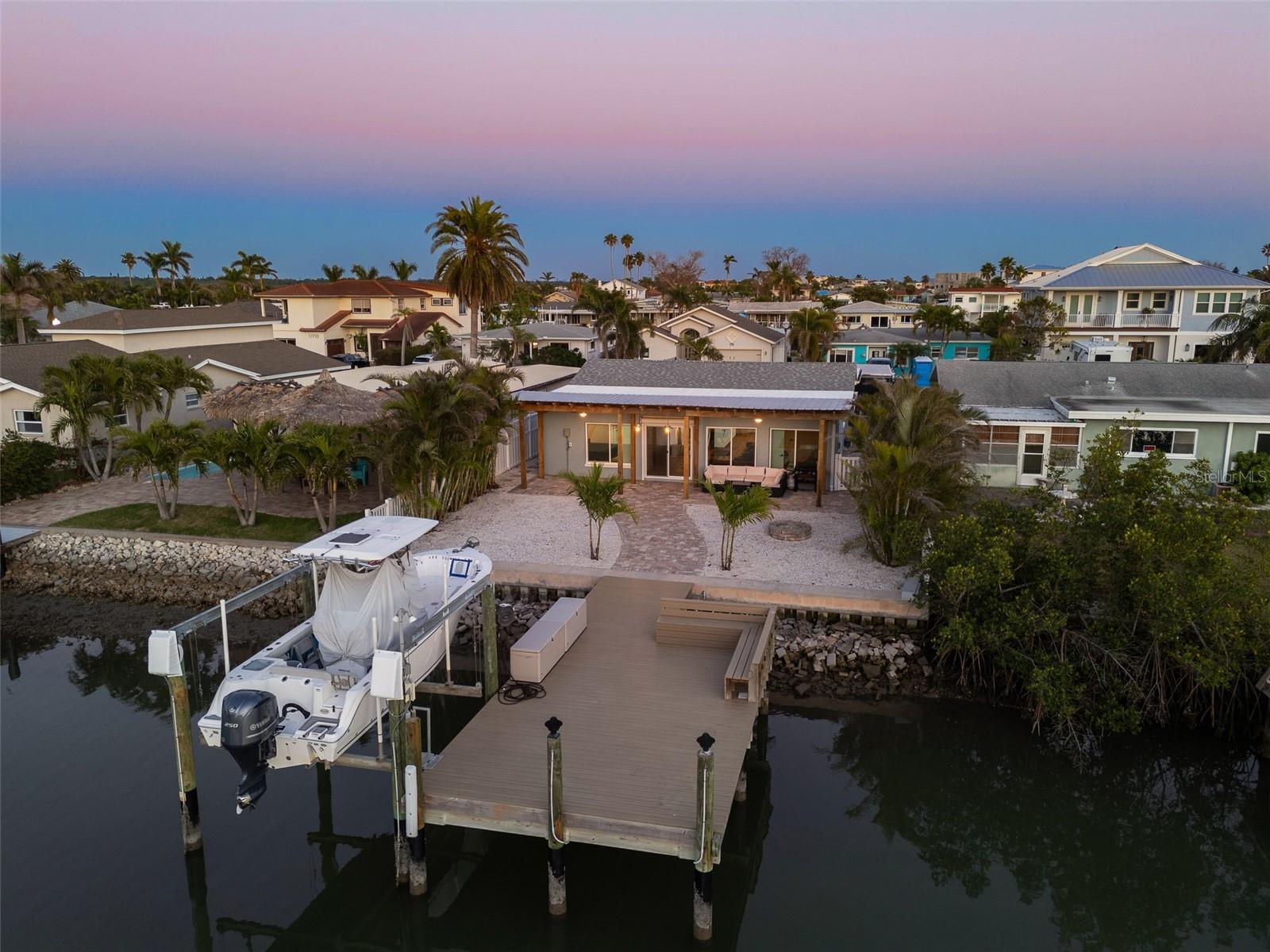 WELCOME HOME to this beautifully REMODELED and MOVE-IN READY coastal gem! Soak in breathtaking sunsets from your west-facing back patio or private boat dock on the Intracoastal Waterway. This stunning home offers sailboat-deep water access and a 12,000 lb boat lift. Gulf access via John’s Pass. The gourmet kitchen features custom cabinetry, quartzite countertops, and brand-new stainless steel LG appliances, including a cooktop, built-in oven, and microwave. Luxury wood-look vinyl flooring throughout. Hurricane-impact windows and sliding glass door (2020) with blackout honeycomb shades. The primary suite includes water views and a beautifully updated en-suite bath with a large walk-in shower. Tranquil water views from the living room and one guest bedroom as well. Backyard oasis with a fire pit, lush Areca Palm-lined for privacy, lighting, shell hardscape, new brick pavers, and low-maintenance artificial turf (2023). The high-ceiling patio is covered with an aluminum roof. 50 feet of waterfront, paired with a new seawall (2020), makes the backyard pool-ready. Brand new roof (2025), rewired electrical system (2025), freshly updated exterior paint & stucco, new rain gutters & underground drainage system, short walk, bike, or golf cart ride to the beach, restaurants, and shops in Redington Shores. Renovation permit CLOSED. Seller open to seller financing!! This is Florida waterfront living at its finest! All measurements are approximate and should be verified.