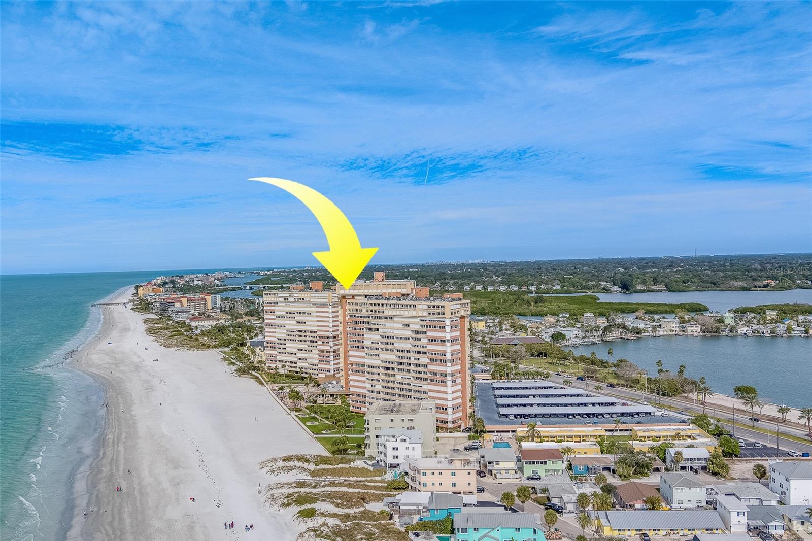 IMPRESSIVE, UNOBSTRUCTED, PANORAMIC VIEWS of the INTRACOASTAL WATERWAY from this 18th floor unit! You will enjoy realxing on the EXPANSIVE BALCONY and take in all the beauty of the skylines from Downtown St. Petersburg, to include Tropicana Field, to Tampa and Clearwater. If you want a change of scenery, you can take a quick elevator ride and you will be on the GOLDEN SANDS of Redington Shores in minutes. This is truly the BEST OF BOTH WORLDS. The GULF OF MEXICO in back and the INTRACOASTAL in front. Nothing better than this and you won’t want to leave! As you enter this very large 1 bedroom, 1-and-a-half-bathroom unit (almost 1000 square feet), you will first see the views and the open concept floor plan, everything feels so LIGHT AND BRIGHT. The kitchen has been updated with GRANITE countertops, including a breakfast bar, that has plenty of room for bar stools, soft close drawers and cabinets and lots of storage space. There is plenty of room for a dining table and the living room is of considerable size with lots of room for everyone! There are sliding glass doors that lead to the OVERSIZED BALCONY. This is such a great alternative to your living space to enjoy outdoor living. The main bedroom is enormous! So many possibilities for how you want to set up your main living suite. There is enough room for a sitting area or small office area. You will appreciate the walk-in closet and a separate vanity area. REDINGTON TOWERS is a SOUGHT AFTER, GATED COMMUNITY with 24-hour security guards, beautifully manicured grounds, a Clubhouse with a Fitness Room, Billiards, Table Tennis, Air Hockey, a Library and a banquet room. There is a LARGE, HEATED POOL located right on the BEACH. The pool was just remodeled this year. There is also an OUTDOOR BBQ area with both natural gas and charcoal grills for your grilling enjoyment! Not many communities have STORAGE FOR KAYAK AND PADDLE BOARDS. Truly a gem if that is on your list of wants. You can launch right from the beach or there is a park across the street if you prefer to kayak/paddle in the Intracoastal. This unit comes with an ASSIGNED, COVERED PARKING SPOT. If you have an electric vehicle, there are a few charging stations at the top of the parking garage. The Milestone Inspection has been completed and there are no issues with the buildings, all repairs have been made and paid for. The management company says there are no assessments pending. They have a FULLY FUNDED BUDGET WITH RESERVES, which will relieve any concerns about the stability of the community. You are close to many dining opportunities and shopping. If you want to venture out a little bit, you can take the Beach Trolley to Clearwater Beach all the way down to St Pete Beach. Johns Pass Village has a variety of unique retail shopping, restaurants, the local fishing fleet, dolphin watching and shelling tours, boat rentals, parasailing and jet skiing. This is the best opportunity for you to start living the dream in one of the best beaches around! REDINGTON SHORES IS SUCH A GREAT BEACH TOWN. It’s time for you to become a part of it……life is short!!