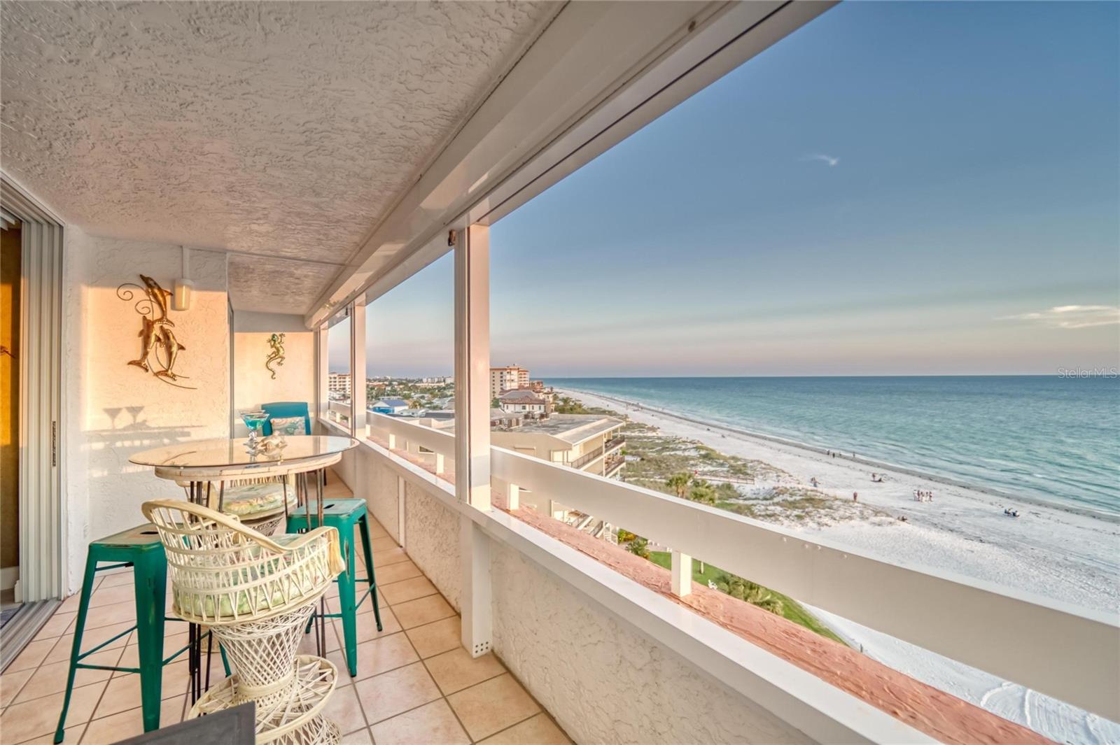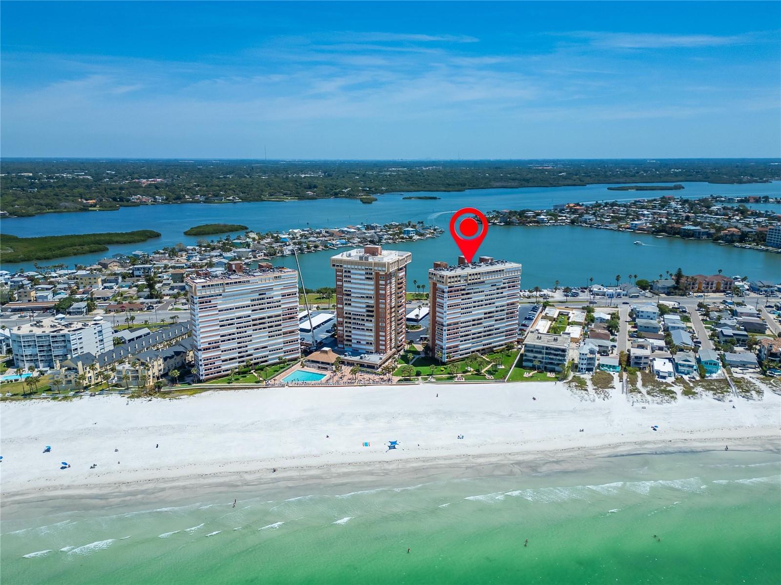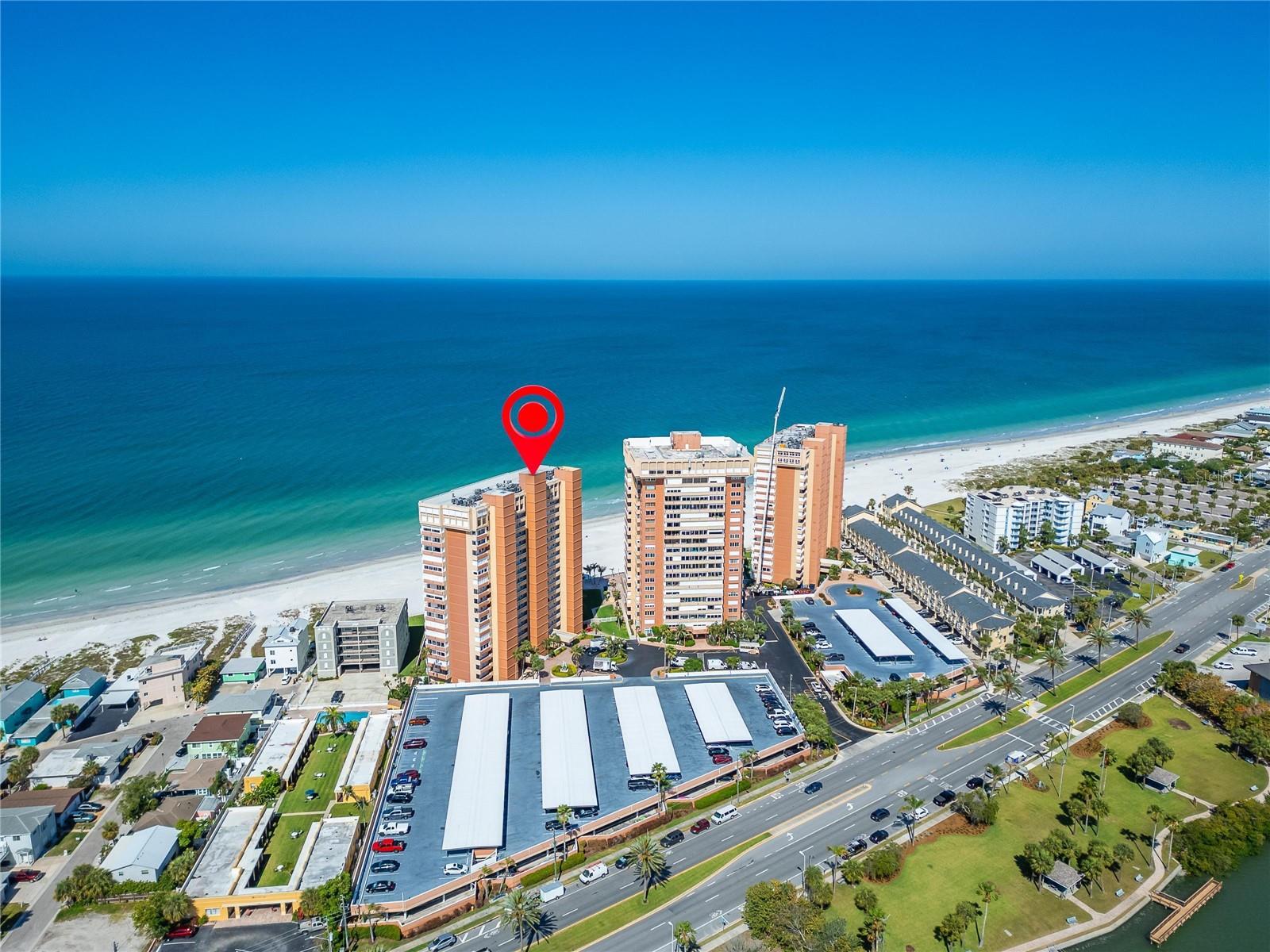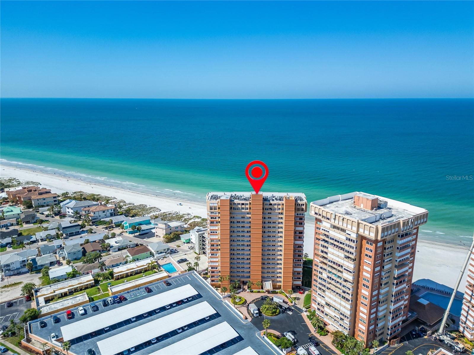 Discover luxurious, resort-style living in this stunning corner unit at Redington Towers. This two-bedroom, two-bathroom condo features 414 sq. ft. of outdoor living space, enjoy the sunrise from the private east-facing balcony and the sunset from the wrap-around balcony with unobstructed Gulf views. The home offers sunrise and sunset views year-round from the living room, dining room, kitchen, and primary bedroom. No detail has been spared in the updates and upgrades, including updated kitchen and bathrooms, plank ceramic tiles throughout, hurricane impact stacking sliding doors, and a 2021 AC and water heater. Relax by the beachfront pool, enjoying the gorgeous views of the Gulf of Mexico. Redington Towers is a friendly, social community with a fitness center, clubhouse, billiard room, ping pong, library, and activities like movie night, bingo, and BBQ night with your neighbors. The community also offers wireless internet throughout the common areas, bike, kayak and paddleboard storage, and electric vehicle charging stations. The gated community with 24/7 security ensures convenience with a premium dedicated underground parking spot and a temperature and humidity-controlled storage unit. Don’t Worry - Milestone Inspection is complete and assessments paid with plenty of reserves. This amazing property is also a money maker allowing 30 day rentals and bringing in up to $7,500 / month during the high season!