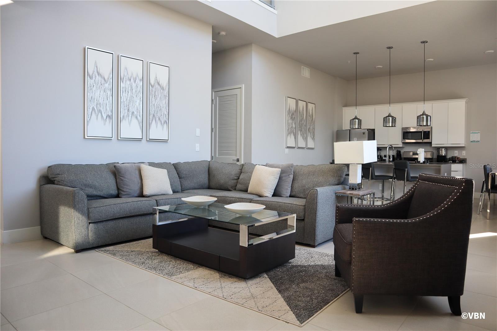 Luxury awaits in this professionally furnished Reunion condo! Enjoy premium water park views and a sky terrace in this luxurious 4-bedroom unit. With vaulted ceilings, 22-inch tiles, built-in surround sound, quartz waterfall countertops, and gas appliances, every detail exudes elegance. Perfect for primary residence, second home, or vacation rental investment. Plus, full access to Reunion's 3 private golf courses, 20-acre water park, and clay court tennis center. Indulge in on-site dining at 5 restaurants, with free shuttles to Magic Kingdom just 15 minutes away. Act now to enjoy the waived $7,500 initiation fee for resort membership!