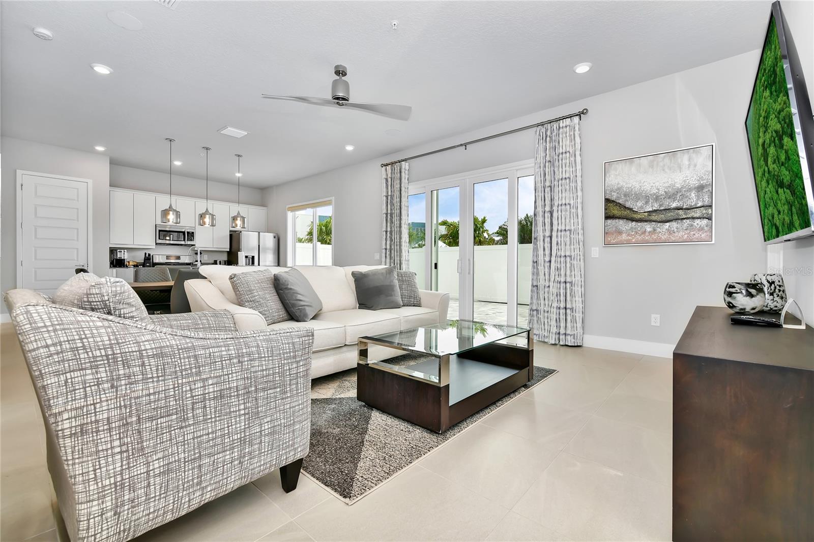 Experience luxury living at its finest in this stunning, modern condo at Spectrum at Reunion Resort! Perfectly appointed for immediate enjoyment, this fully furnished and equipped retreat is mere minutes from the magic of Walt Disney World. Ideal for primary residence, vacation home, or investment opportunity, this property offers the ultimate in convenience and flexibility, with on-site management and no rental restrictions. Showcasing 3 spacious bedrooms, 2.5 elegant baths, and an expansive open floor plan with sleek, modern finishes, this exceptional residence is a true showstopper. The gourmet kitchen boasts high-end stainless steel Samsung appliances, a gas range, and a beautiful island perfect for food preparation and presentation. Sliding doors lead to a spacious pavered patio, ideal for al fresco entertaining and mere steps from the resort-style pool. Residents of Reunion Resort enjoy a wealth of luxurious amenities, including a state-of-the-art gym, resort-style pools, an incredible water park with lazy river, three signature golf courses, pro-shops, community pools, tennis courts, conference facilities, and diverse dining options. This incredible opportunity includes a comprehensive package covering cable, internet, water, trash, and amenities, making it an unbeatable value in today's market. Don't miss out on living the Florida lifestyle in this exceptional home - schedule a showing today!