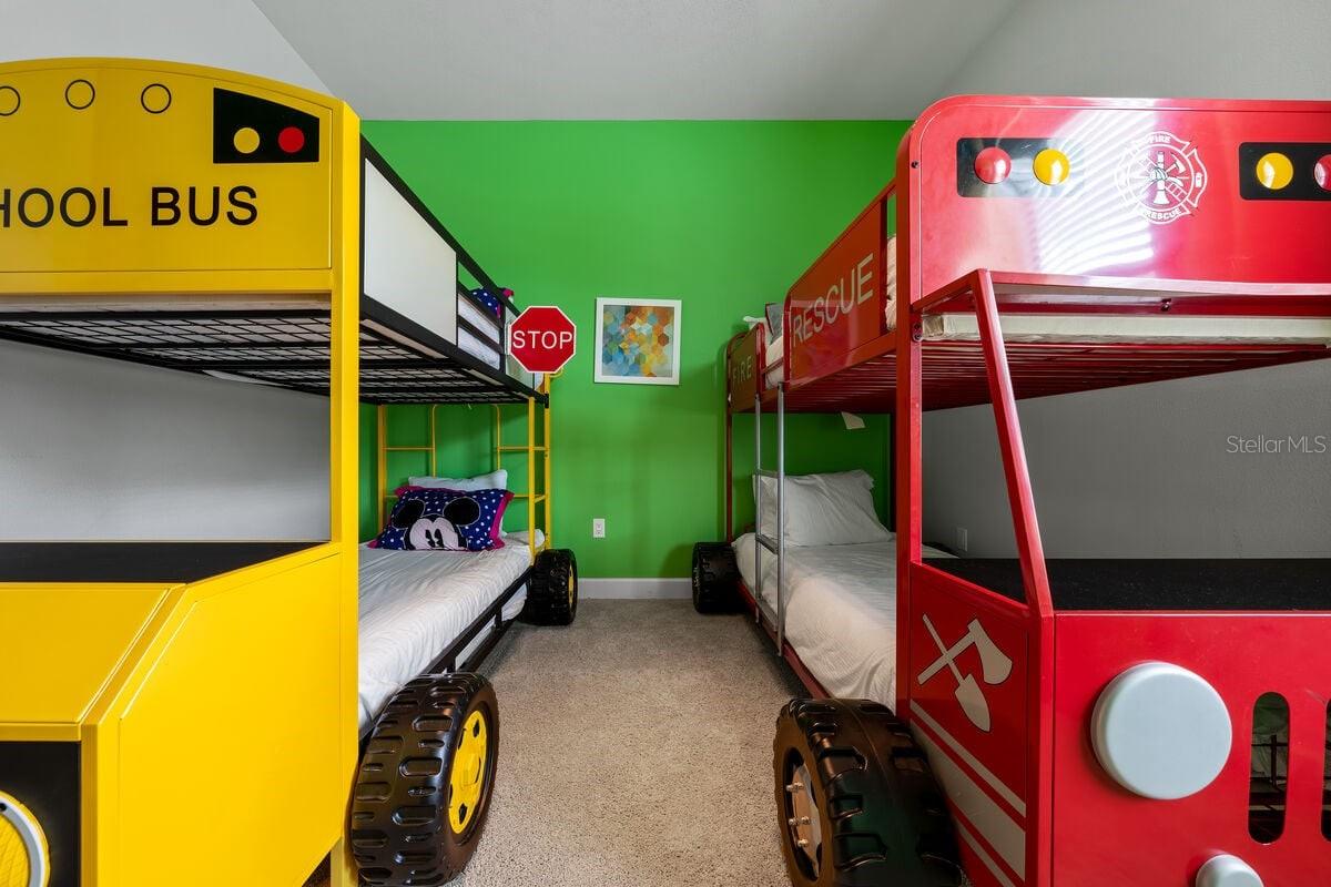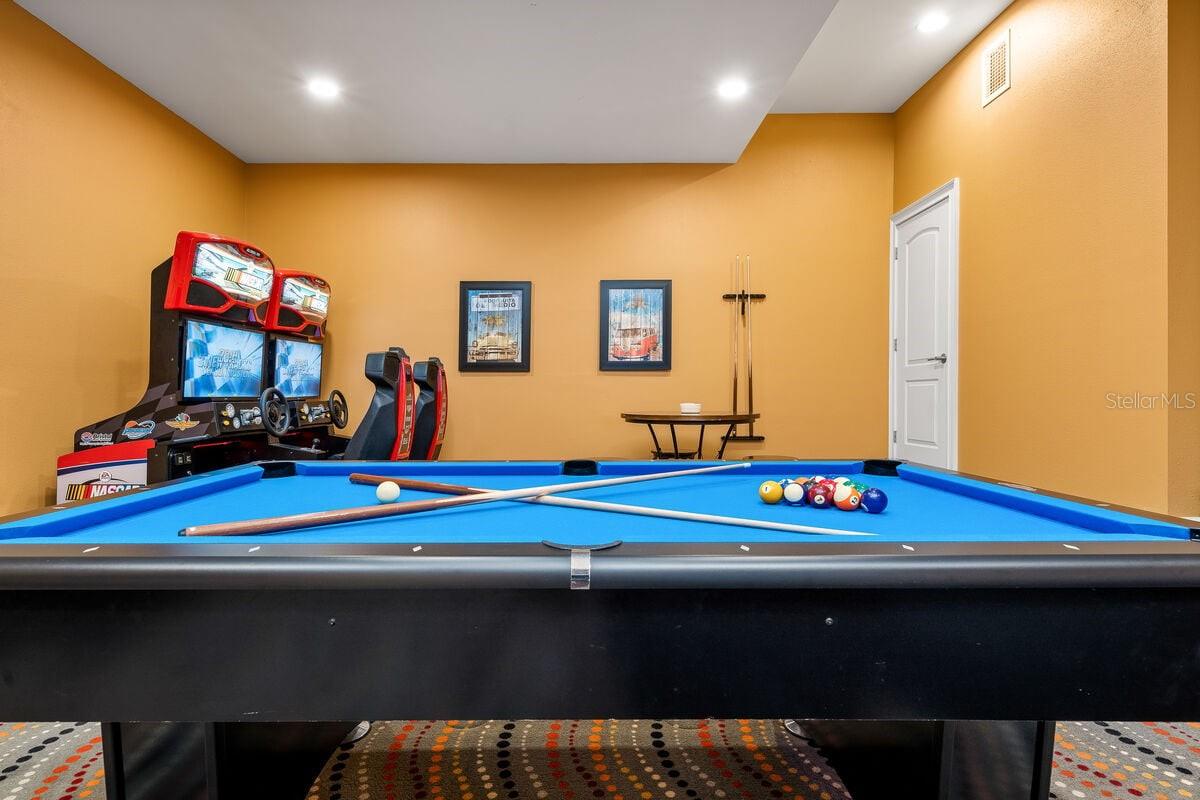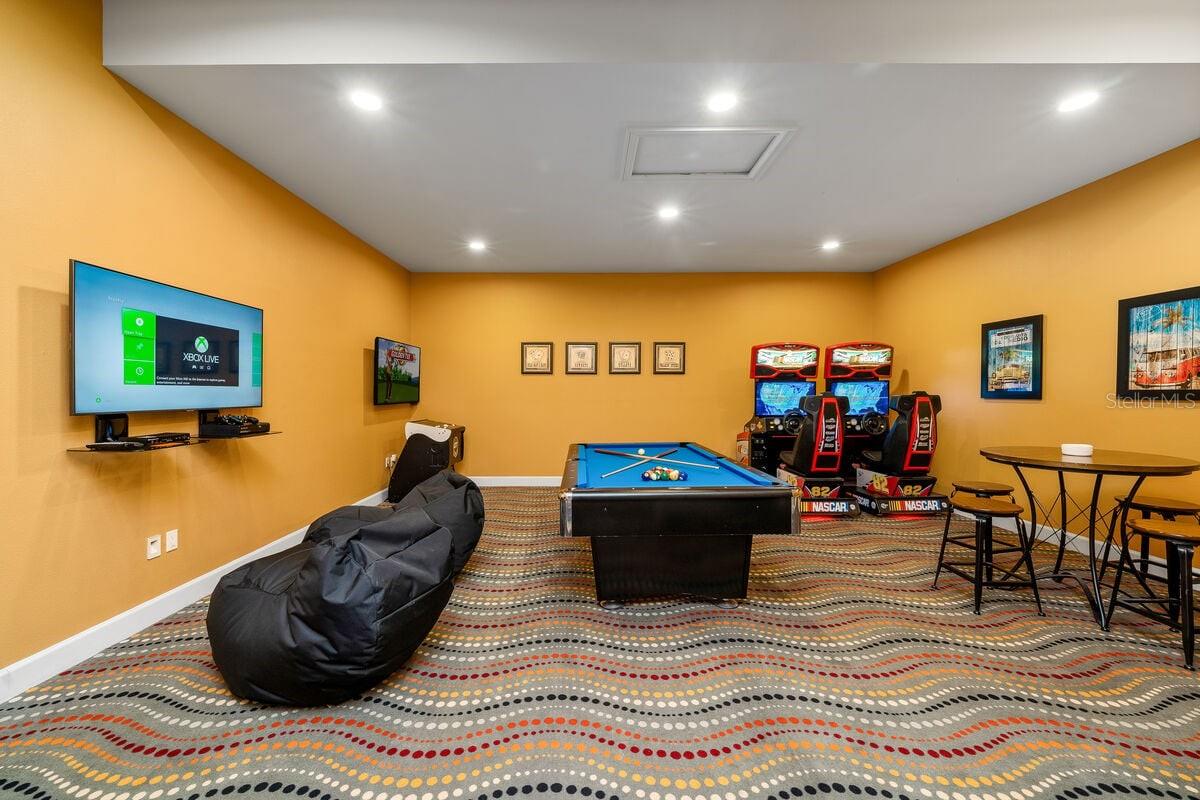 Active Reunion Resort Membership! Here’s your chance to own a beautifully custom-built, modern home designed with both luxury and comfort in mind. This 7-bedroom, 7.2-bathroom masterpiece offers nearly 5,000 square feet of sun-soaked, sophisticated living space, perfect for family gatherings or investment purposes. Step inside to discover a dream kitchen that will delight even the most discerning chef, featuring top-of-the-line appliances and sleek, contemporary finishes. The open-concept great room is adorned with elegant wood-look tile floors, creating a warm and inviting atmosphere. The space flows effortlessly into the fully equipped game room and movie theater, offering endless entertainment options for guests of all ages. The covered lanai is an entertainer’s dream, with a summer kitchen perfect for al fresco dining and poolside relaxation. Enjoy the large private pool and spa area, designed for unwinding and creating memories with loved ones. Inside, you’ll find the convenience of first- and second-floor laundry rooms, plus a spacious first-floor primary bedroom, offering luxury and practicality all in one. Upstairs, you’ll find 6 additional ensuite bedrooms, including a fun bunk room that's perfect for the little ones. With its spacious layout, this home comfortably accommodates large families or groups of guests. It is being sold fully furnished and is ideal as a short-term rental property or as a second home large enough for the entire family to enjoy. Situated in the heart of Reunion Resort, you’ll be just steps away from some of the community's best amenities, including the Reunion Grande, Palmer & Watson Clubhouse, and the Seven Eagles Pool Pavilion. This premier Orlando resort community offers easy access to all the major theme parks, making this home a top choice for vacationers and investors alike. Don’t wait—schedule a visit today and make this one-of-a-kind property yours!