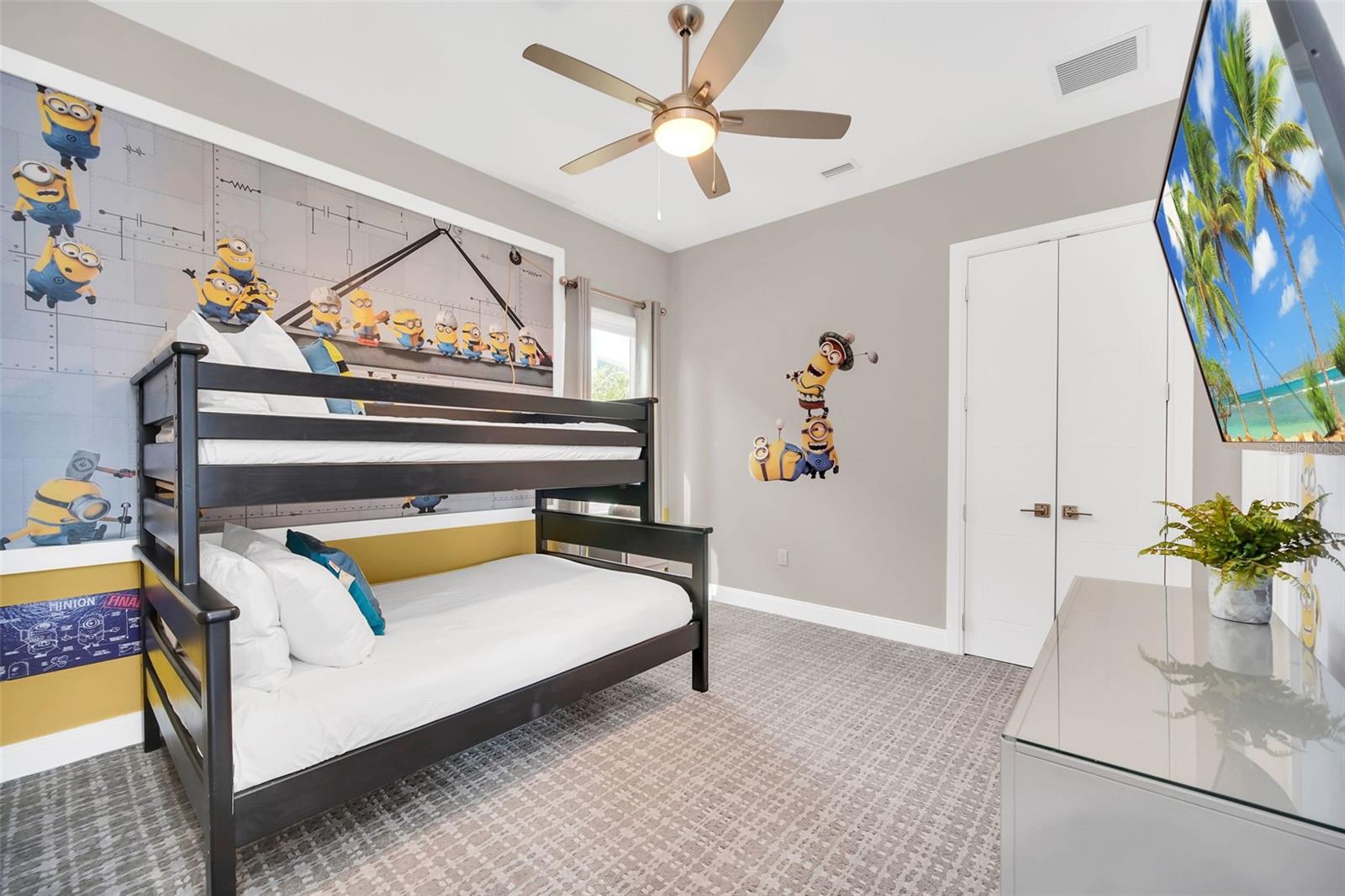 This is a stunning former MODEL HOME! This home serves equally as a beautiful PRIMARY VACATION HOME or as a TURNKEY RENTAL HOME. It Offers both Golf course views but is nestled on a conservation lot. The design is OPEN AND MODERN with lots of upgrades and offers a beautiful and spacious OUTDOOR LIViNG AREA. An OVERSIZED GARAGE is also a benefit when it comes to rental amenities and the homes comes FULLY FURNISHED with a TRANSFERRABLE MEMBERSHIP available upon closing. This lavish two-story retreat boasts modern gray and white accents, offering a seamless blend of sophistication and comfort. Whether you're planning a getaway with friends or family, Luxury at Reunion provides the ultimate setting for your next unforgettable vacation. When you step into the first floor, you'll instantly know you are on vacation when you are greeted by the sliding glass doors of the main open living space. Here, a spacious kitchen and dining area beckon, enhanced by the enchanting glow of a charming chandelier above the dining table, accommodating seating for up to 8 guests, and an island counter with three bar stools that offer additional seating and convenience. Step outside the main living space onto your very own private sundeck, where you'll find a refreshing private pool, grill, and outdoor dining and lounge area. Given the allure of the pool deck, why not savor your lunch outdoors and relish it al fresco? This is a must see and a one of kind home. Book your appointment today!
