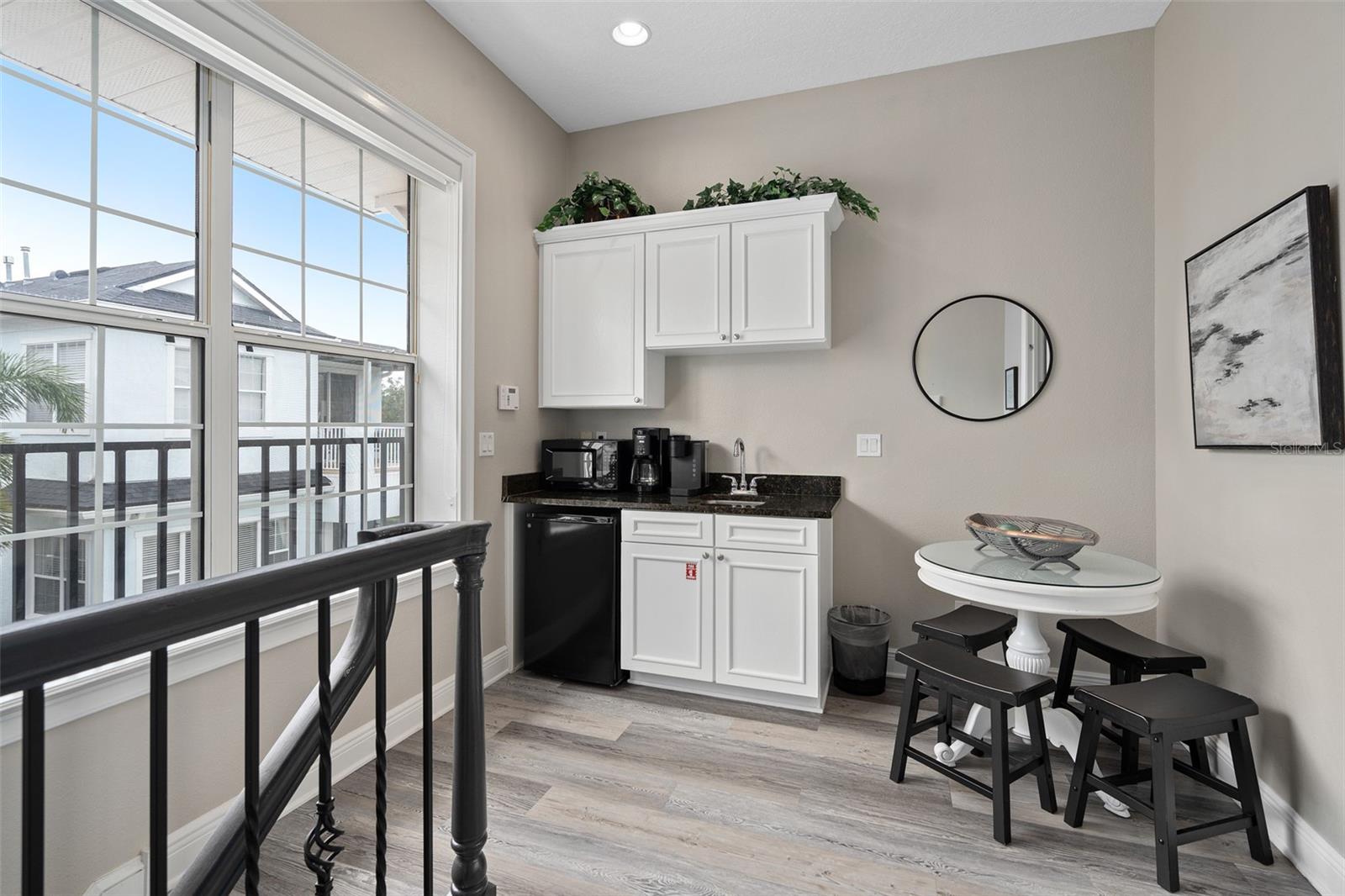 Active Club Membership! Offered fully furnished and turnkey! Positioned along the Arnold Palmer Legacy Golf Course, this 5-bedroom, 4.5-bathroom home offers panoramic water and golf views from multiple vantage points. Located near the center of Reunion Resort, the property provides quick access to the community’s restaurants and signature amenities. At the center of the home is a private courtyard featuring a heated pool, spa, summer kitchen, and outdoor shower. The main entry opens to a two-story foyer that leads to the kitchen, living and dining rooms, a powder room, and one bedroom suite with its own bathroom. Upstairs, the primary suite includes a cathedral ceiling, dual vanity, separate shower, soaking tub, and a private balcony overlooking the golf and water views. A third ensuite bedroom is also upstairs. The detached garage apartment, accessed from the courtyard, includes a kitchenette, two bedrooms, and a shared full bathroom, providing a private retreat. The 2-car garage has been converted into a media and game room, providing an additional 625 square feet of functional living space. Spanning 2,300 acres just 7 miles south of Walt Disney World, Reunion Resort is the only destination in the world featuring 3 signature golf courses designed by Jack Nicklaus, Arnold Palmer and Tom Watson. Reunion is also home to the Leadbetter Golf Academy. Onsite dining options include Eleven, 7593 Chophouse, Traditions, Grande Lobby Sushi Bar, the Clubhouse, the Cove, and Drifters at the waterpark. The water park features a lazy river, slides, outdoor games, and an aquatic playground. The gift shop in the Grande offers sundries and Starbucks coffee. Complimentary shuttles to the Disney transportation and ticket center leave from the Grande daily. Additional amenities include Camp Reunion, the tennis and pickle ball center, bocce ball, miniature golf, foot golf, fitness center, playgrounds, dog park, various community pools including a roof top pool on the 11th floor of the Grande, and more. Zoning for short term rentals allows homeowners to rent their property by the night providing a great opportunity for investors. Reunion also works great as a primary residence or a private vacation retreat. The resort offers three separate 24 hour guard gated entries and one owner/resident only entry.