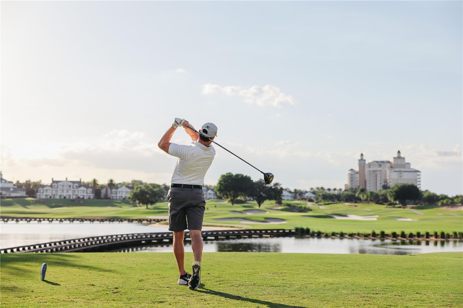 **Active Reunion Club Membership. Located in the Centre Court Ridge, one of the most sought after condo communities within Reunion, You will be perfectly positioned centrally within the resort allowing you quick access to all of the Reunion amenities within a short walking distance. Being sold fully furnished, this condo comes turnkey. Currently in a rental program with future bookings in place, this condo makest for a superior short term rental investment property, second home or primary residence if you want the best golf views in the resort.  You can explore mere footsteps and access the community pool, tennis/pickle ball courts, putt putt golf, and golf cart rentals and you are very close to the waterpark, the Reunion Grande, clubhouse, the cove bar and grill with a large pool and exercise facility. Your balcony will boast of an amazing West facing view of the 13th hole of the Watson course where you can catch the stunning Florida sunsets in the privacy of your own home. Reunion, the destination Resort is where luxury meets opportunity with its short term rental option other spots don't have.  Reunion has something for everyone and unites families for a variety of opportunities and is only 15 minutes from Disney. Reunion features 12 Pools, a multimillion dollar water park, Complete with a lazy river, splash park for the little ones, tiki bar, & Water Slides, 3 championship golf courses, 5 restaurants, tennis/pickleball courts, mini golf, and many more amenities, making Reunion truly a city within gates. This home is turnkey, and is ready for you, welcome home!