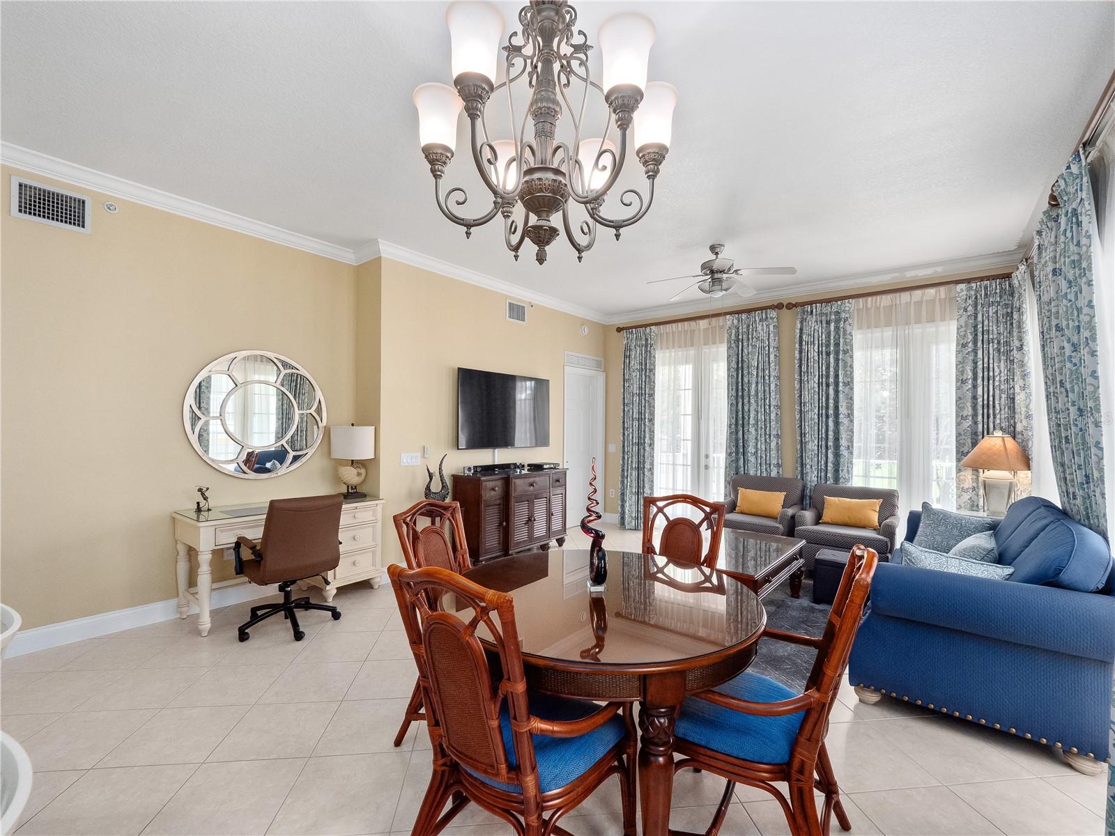 Vacant. Welcome to your dream getaway in the highly sought-after Reunion, Florida resort community! This beautifully maintained and fully furnished 3-bedroom, 2-bath condo offers the perfect blend of comfort, luxury, and convenience. Located on the second floor of a well-kept three-story building with elevator access, this home is ideal as a primary residence, vacation home, or income-producing rental. Step inside to find a spacious and inviting layout featuring a bright living room, a formal dining area, and an eat-in kitchen—perfect for entertaining family and guests. The condo also includes a dedicated laundry room for added convenience. Enjoy resort-style living in a guarded, gated community known for its world-class amenities. Residents and guests have access to multiple sparkling pools, a water park, tennis courts, mini golf, a clubhouse, and on-site restaurants—all surrounded by 3 beautifully maintained golf course views. As the day winds down, unwind and take in the breathtaking views of Disney’s nightly fireworks right from your community—an unforgettable experience just minutes from your doorstep. Whether you’re looking for relaxation, recreation, or investment opportunity, this condo truly has it all. Schedule your private showing today and experience resort living at its finest!