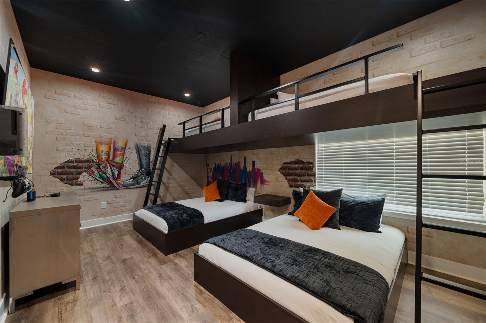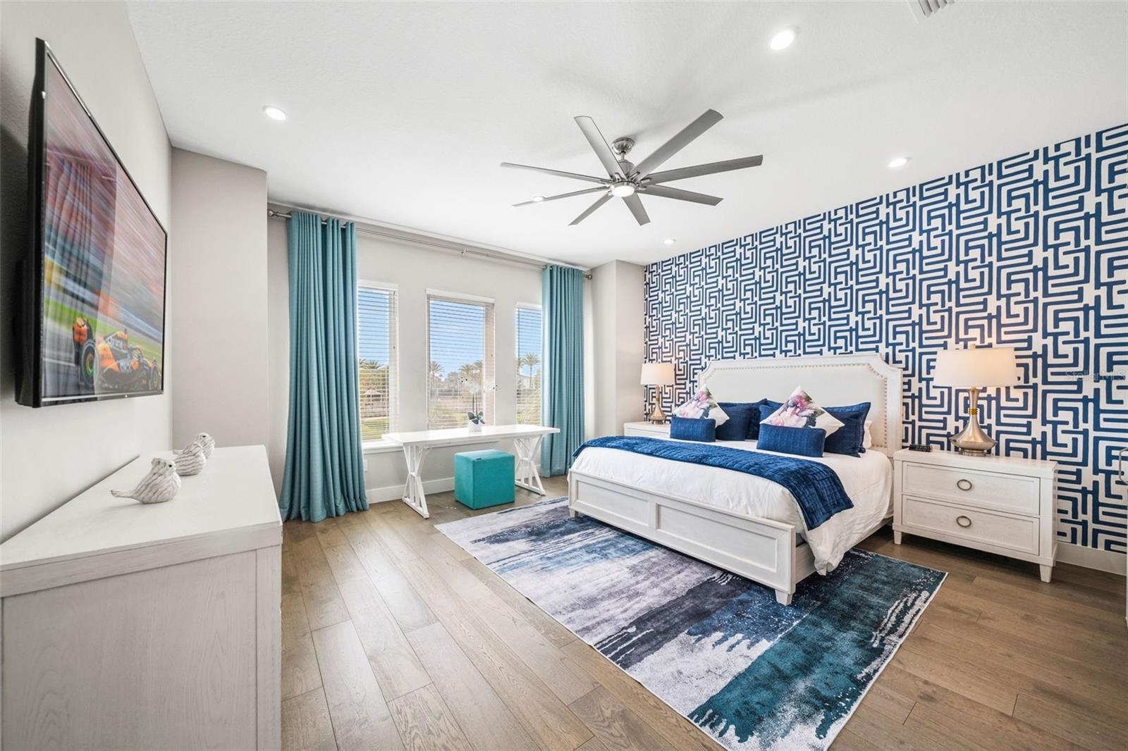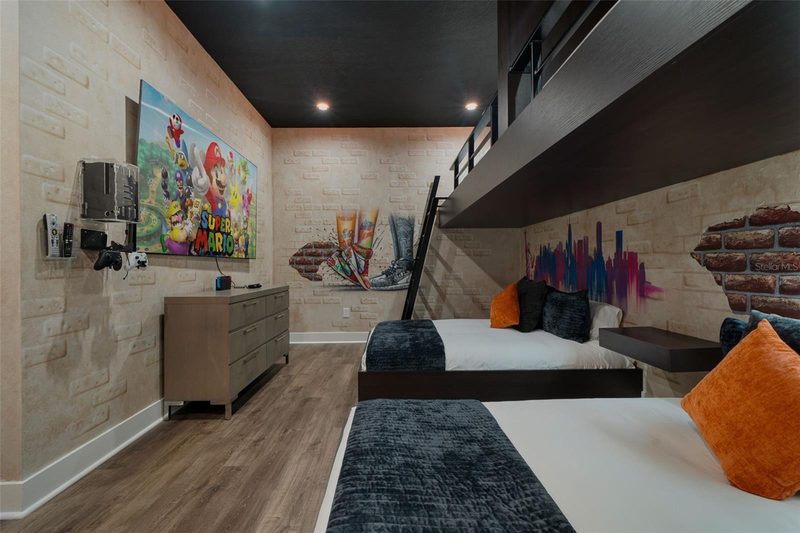 From the moment you step through the doors of this SPECTACULAR home you will realize you have found VACATION LUXURY at its finest. Welcome to Nicklaus Manor at Reunion located in the exclusive Bear's Den community at Reunion Resort. This well appointed and meticulously kept 6 Bedroom, 6 Full Bath En suite, and 3 half bath home, is being offered TURN KEY. The Santa Barbara Model boasts high end finishes throughout with an open floor plan that consists of a first floor primary bedroom that includes a HUGE custom walk-in owner's closet with the ability to lock off for privacy as well as additional closet for guests, dual sinks, a large walk-in shower and soaking tub. There is an 2nd en suite guest bedroom on the first floor. The spacious chef's kitchen includes a large island with seating for 4 ppl., an abundance of hardwood cabinets with crown moulding, quartz countertops, stainless JENN-AIR appliances that include a Gas Range, two refrigerators, two dishwashers, convection oven and more. Enjoy quiet meals in the formal dining area with seating for 10 ppl. Adjacent to the dining area is a spacious wet bar area with wine racks, two beverage coolers and additional cabinets for your convenience. Recent enhancements to the home include a converted garage to a state of the art Golf Simulator, two professionally themed children's rooms, decorative accent walls and decor were added throughout the home, and updated movie theater with gaming consoles. The expansive loft area has additional seating, air hockey, pool table, classic arcade game console and a beverage cooler, making this space ideal for both kids and adults to enjoy hours of entertainment. Step outside the loft area to a spacious covered lanai complete with new patio furniture, shuffleboard and an amazing views of the pool deck and the Bear's Den residents only park. The two remaining bedrooms one being an additional primary suite that offers private access to a covered lanai on the second floor. As you step outside to an island oasis enjoy countless hours of enjoyment on your amazing pool deck, featuring a covered lanai with ample seating for family & guests, a lagoon style pool, jacuzzi and beautiful water feature. There is a summer kitchen with a decorative tile backsplash, and a pool half bath just off the lanai. This amazing home is a great opportunity for a vacation rental, second home or primary residence and is walking distance to the Jack Nicklaus clubhouse where the Traditions restaurant and bar is located as well as the Jack Nicklaus Pro Shop. The Bear's Den community features gated security within the gates of Reunion, a fantastic dog park that you can access from your back gate on you pool deck, a sand volleyball court and putting green to practice your game. Reunion Resort is a one of a kind 2300 acre Resort and Golf community that has many amenities including a water park complete with water slides, lazy river, zero entry pools & food and beverage service, 3 award-winning golf courses designed by the legends of golf (Palmer, Watson & Nicklaus), 11 pools throughout the community, mini putt putt golf, world class tennis courts, pickleball courts, playgrounds, dog parks, golf cart & bike rentals and several on-site restaurants to include fine dining. Reunion Resort is located just 6 miles to Disney and the parks, and a short drive to the Orlando International Airport. ACTIVE TRANSFERABLE MEMBERSHIP for the next owner. Future rental income and bookings can convey.