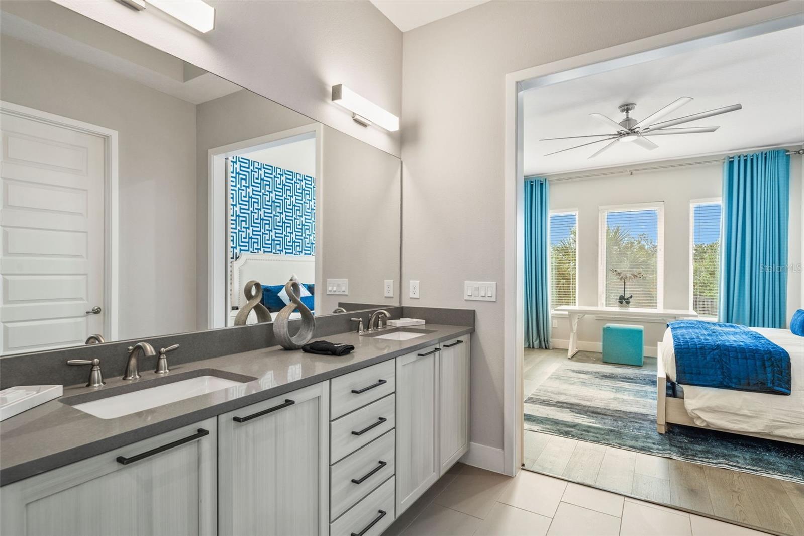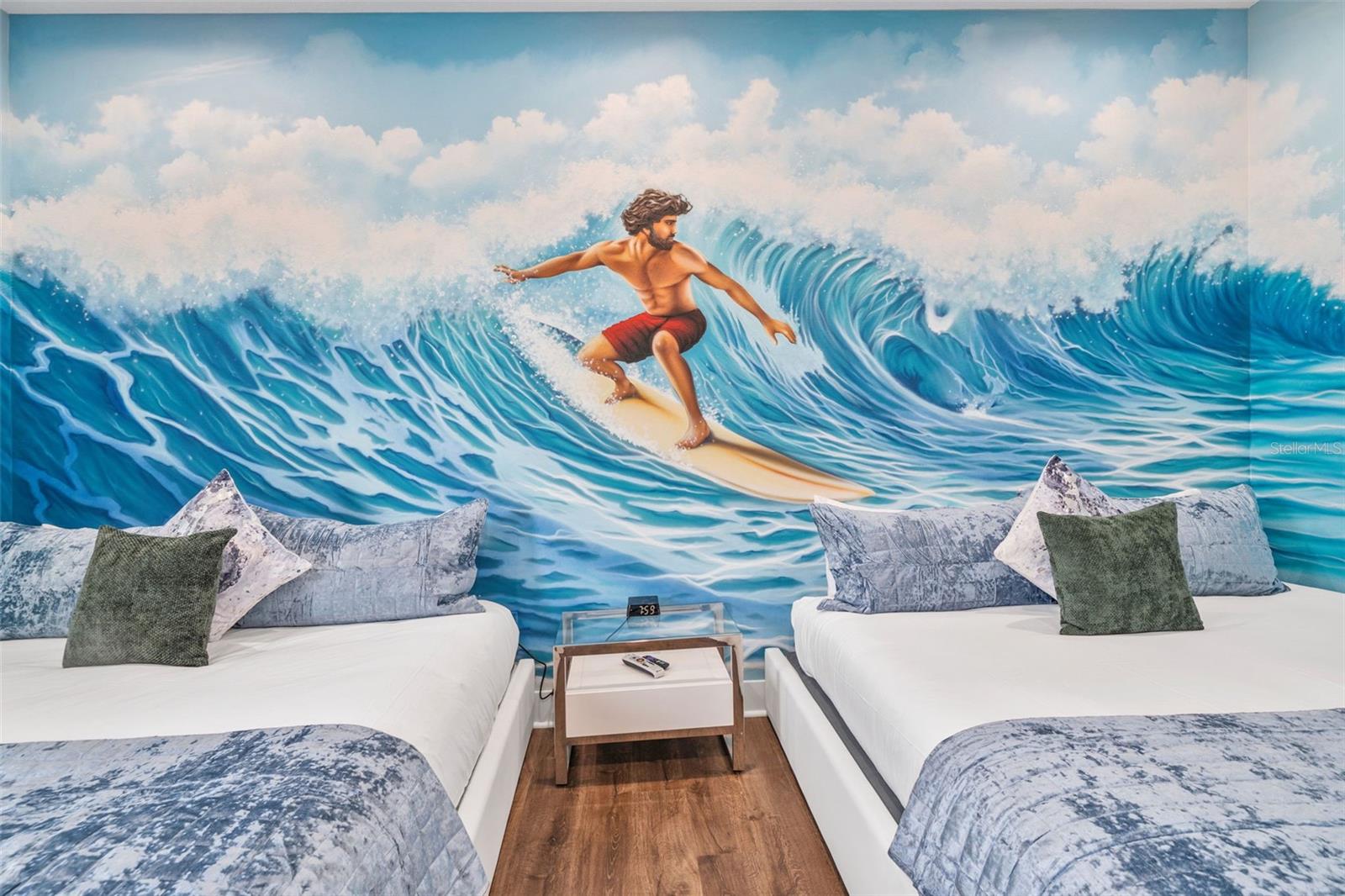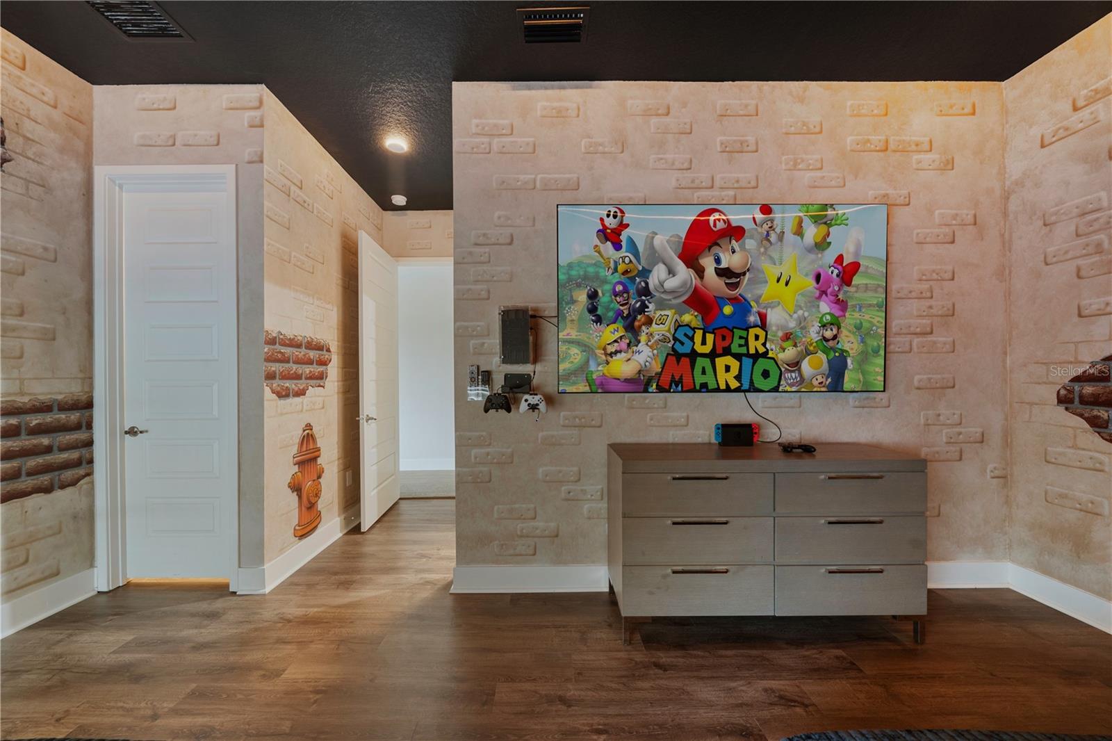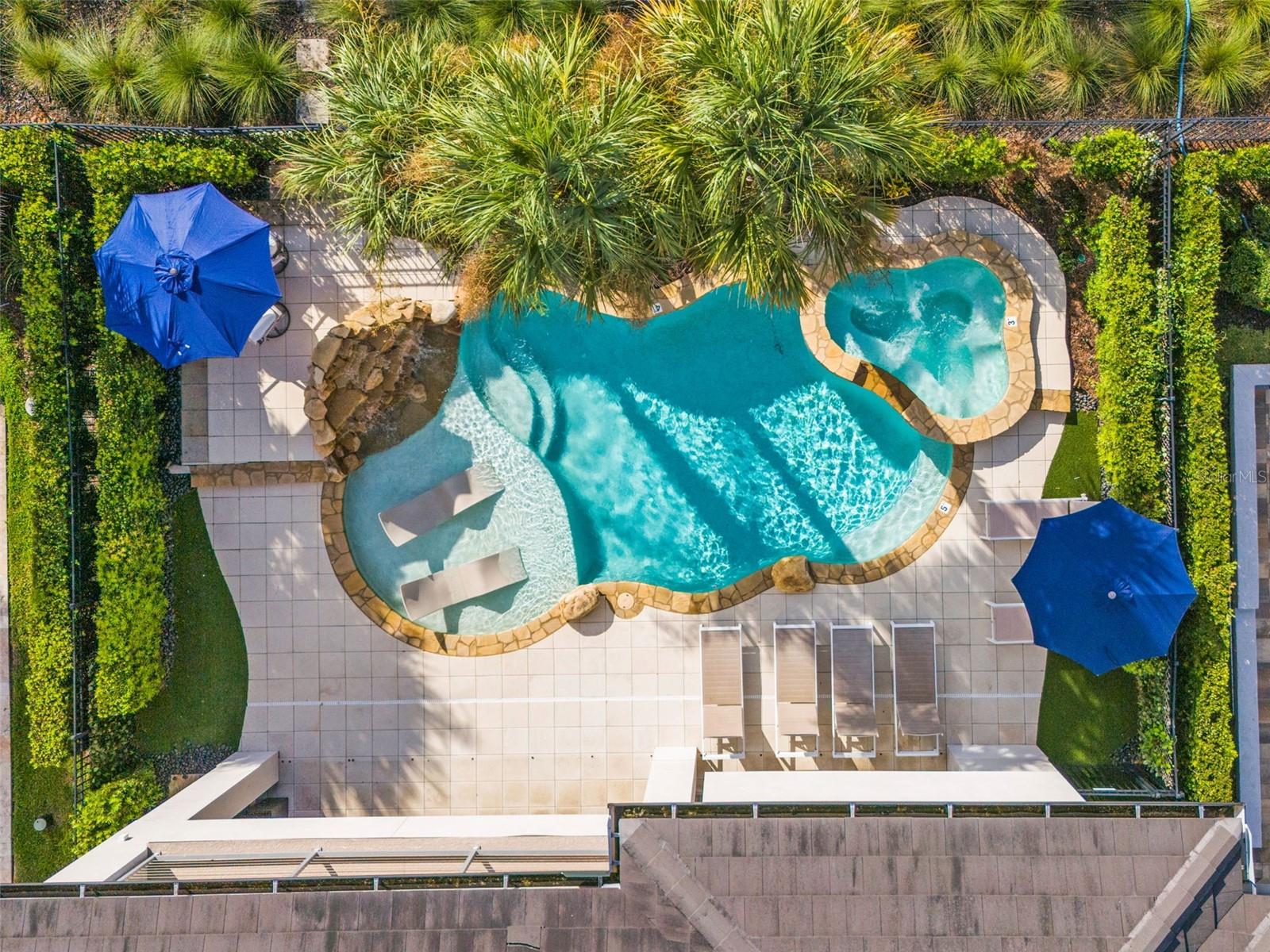 From the moment you step through the doors of this SPECTACULAR home you will realize you have found VACATION LUXURY at its finest. Welcome to Nicklaus Manor at Reunion located in the exclusive Bear's Den community at Reunion Resort. This well appointed and meticulously kept 6 Bedroom, 6 Full Bath En suite, and 3 half bath home, is being offered TURN KEY. The Santa Barbara Model boasts high end finishes throughout with an open floor plan that consists of a first floor primary bedroom that includes a HUGE custom walk-in owner's closet with the ability to lock off for privacy as well as additional closet for guests, dual sinks, a large walk-in shower and soaking tub. There is an 2nd en suite guest bedroom on the first floor. The spacious chef's kitchen includes a large island with seating for 4 ppl., an abundance of hardwood cabinets with crown moulding, quartz countertops, stainless JENN-AIR appliances that include a Gas Range, two refrigerators, two dishwashers, convection oven and more. Enjoy quiet meals in the formal dining area with seating for 10 ppl. Adjacent to the dining area is a spacious wet bar area with wine racks, two beverage coolers and additional cabinets for your convenience. Recent enhancements to the home include a converted garage to a state of the art Golf Simulator, two professionally themed children's rooms, decorative accent walls and decor were added throughout the home, and updated movie theater with gaming consoles. The expansive loft area has additional seating, air hockey, pool table, classic arcade game console and a beverage cooler, making this space ideal for both kids and adults to enjoy hours of entertainment. Step outside the loft area to a spacious covered lanai complete with new patio furniture, shuffleboard and an amazing views of the pool deck and the Bear's Den residents only park. The two remaining bedrooms one being an additional primary suite that offers private access to a covered lanai on the second floor. As you step outside to an island oasis enjoy countless hours of enjoyment on your amazing pool deck, featuring a covered lanai with ample seating for family & guests, a lagoon style pool, jacuzzi and beautiful water feature. There is a summer kitchen with a decorative tile backsplash, and a pool half bath just off the lanai. This amazing home is a great opportunity for a vacation rental, second home or primary residence and is walking distance to the Jack Nicklaus clubhouse where the Traditions restaurant and bar is located as well as the Jack Nicklaus Pro Shop. The Bear's Den community features gated security within the gates of Reunion, a fantastic dog park that you can access from your back gate on you pool deck, a sand volleyball court and putting green to practice your game. Reunion Resort is a one of a kind 2300 acre Resort and Golf community that has many amenities including a water park complete with water slides, lazy river, zero entry pools & food and beverage service, 3 award-winning golf courses designed by the legends of golf (Palmer, Watson & Nicklaus), 11 pools throughout the community, mini putt putt golf, world class tennis courts, pickleball courts, playgrounds, dog parks, golf cart & bike rentals and several on-site restaurants to include fine dining. Reunion Resort is located just 6 miles to Disney and the parks, and a short drive to the Orlando International Airport. ACTIVE TRANSFERABLE MEMBERSHIP for the next owner. Future rental income and bookings can convey.