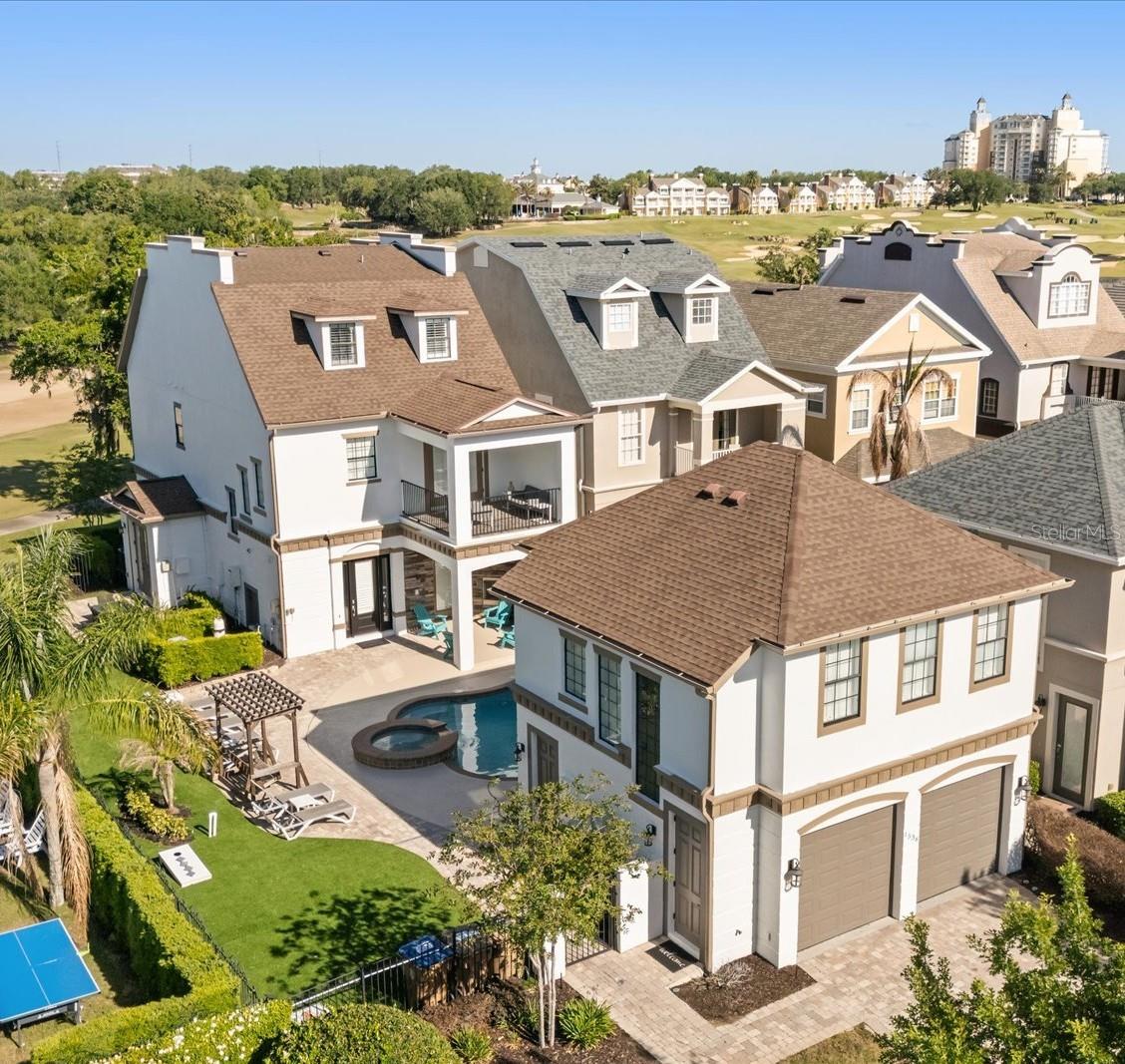 Luxury, Lifestyle and Legacy- The best parts of owning, living and vacationing in Reunion are on display at this Sunset Stunner! Welcome to 1536 Corolla Court in the heart of Reunion’s Liberty Bluff Community. This is A RARE 3 STORY HOME that showcases the “POSTCARD VIEW” from multiple balconies and allows you to overlook 7 HOLES of GOLF! The property is also WEST facing which means you will never miss another Reunion Sunset again! Take note that the lot is larger than normal which allows for more entertaining and outdoor area. High-end artificial turf has been installed to maximize the space. Along with an outdoor cooking area, a freshly painted pool deck and a multiple lounging chairs-this home is a sun worshipers dream! This type of construction and layout will make you feel like you are getting 2 properties for the price of one. Inside the first property you will find a fully equipped fun zone on the first floor filled with high-end gaming systems. There is a private entrance just for the first floor and it is walls are lined with 2 sets of French doors that let you overlook the pool area. A custom feature in this home. The second floor also has a private entrance. There you will find a well-appointed space with 2 bedrooms along with a kitchenette and a separate bathroom area. Once inside the main house you will be drawn into how much natural light is inside. The paint tones and colors have been chosen to create a calm and relaxed feeling. The open floor plan includes an indoor and outdoor dining space, a spacious kitchen and a comfortable living room all on the first floor. You will also find a FIRST FLOOR BEDROOM with a private bath. There is also a separate ½ bath that doubles for a pool bath. You can access the second floor via the wood tread staircase or take your own PRIVATE ELEVATOR. There you will find additional bedrooms, with large private balconies along with a STAR WARS themed bedroom with bunkbeds. The THIRD FLOOR is reserved for the primary bedroom and includes its own special oversized covered outdoor balcony designated for a cup of morning coffee or an evening glass of wine. You can also see the Reunion Grande Hotel in the distance. THIS PROPERTY HAS IT ALL! This home does come with an ACTIVE REUNION RESORT MEMBERSHIP and is in a very active and SUCCESSFUL rental program. HUGE RENTAL AND MEMORY MAKING POTENTIAL. Reunion Resort has everything you want in a community including 3 signature golf courses, world class dining, waterparks, lazy river, water slides, firework viewing areas, tree lined streets, dog park, playground, driving range, golf simulator, member events, in-resort shuttle service, and event space. Live the resort lifestyle like a VIP. NO OTHER RESORT IN THE AREA HAS THIS!!!! Minutes to Disney and close to Beaches, Universal, Legoland and Sea World. Schedule a tour today. 80 million visitors are estimated to visit Orlando in 2026. Welcome your family and friends in this home for years to come or take advantage of the demand for a rental home like this! BOOKINGS ALREADY IN PLACE FOR 2026!