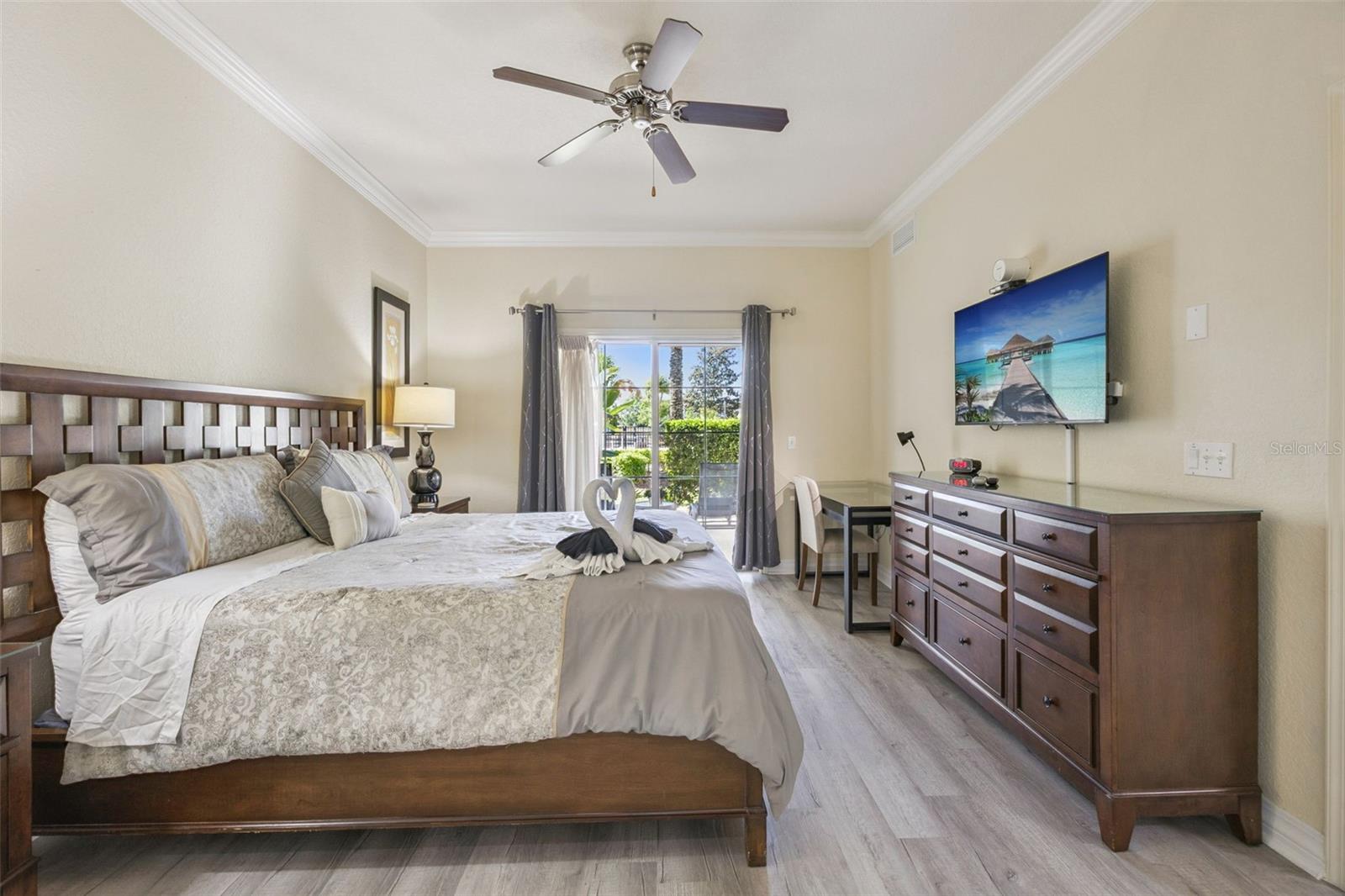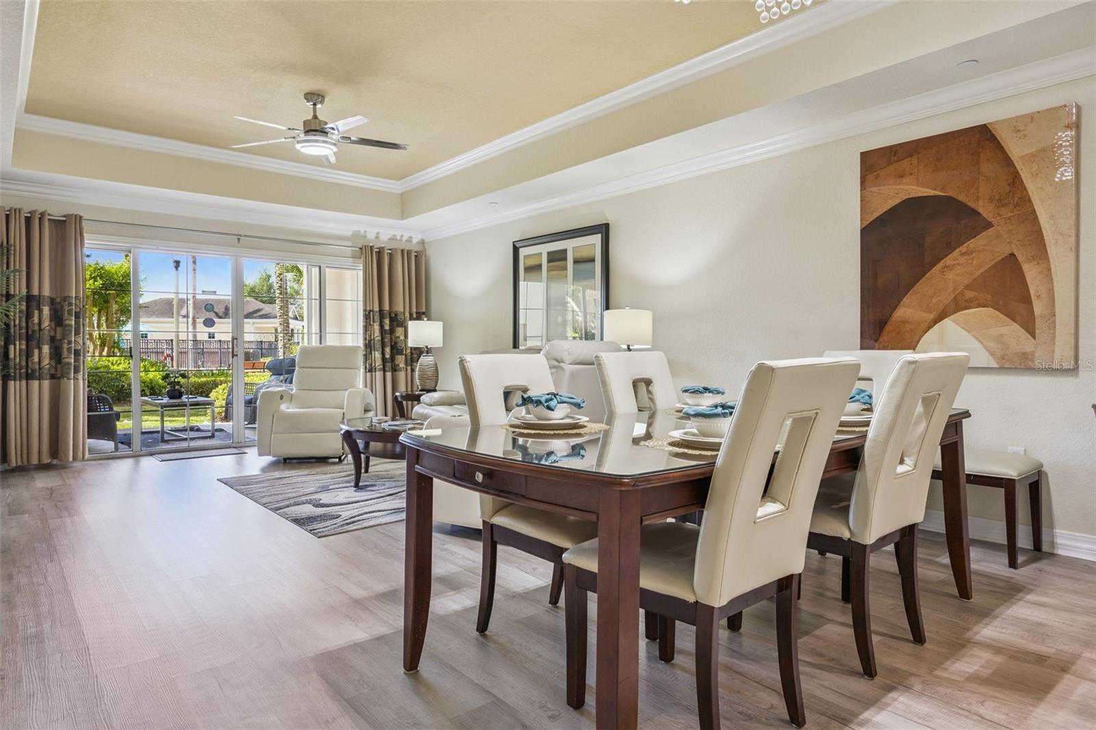 LOCATION, LOCATION, LOCATION! This beautifully updated, fully furnished 3-bedroom, 3-bath condo in Reunion Resort offers the perfect blend of convenience, comfort, and investment potential. Ideally situated just steps from one of the community’s outstanding pools, you can walk right out from your private patio and enjoy resort-style living—while still having enough distance to relax in peace and privacy. This first-floor, turnkey unit is designed for effortless living, with no stairs—perfect for easy grocery trips, guests, or pet owners. Whether you're looking for a short-term rental investment or a personal vacation retreat, this property is ready to go from day one. Inside, you’ll find: A fully equipped kitchen with stainless steel appliances and granite countertops Brand-new luxury vinyl plank (LVP) flooring throughout—no carpet A smart, spacious layout with each bedroom featuring its own private bathroom A generous primary suite complete with two walk-in closets, dual sinks, a soaking tub, and a separate shower Step outside and take in the amazing view, all while being just moments from the pool behind the unit. Reunion Resort’s unbeatable location—just two exits from Disney World—makes it a top destination for visitors year-round. Owners and guests enjoy access to 12 community pools and five on-site dining options, ranging from casual bites at The Cove to upscale dining at Eleven. This is your opportunity to own a true piece of paradise—perfect as a vacation home, income-producing property, or both.