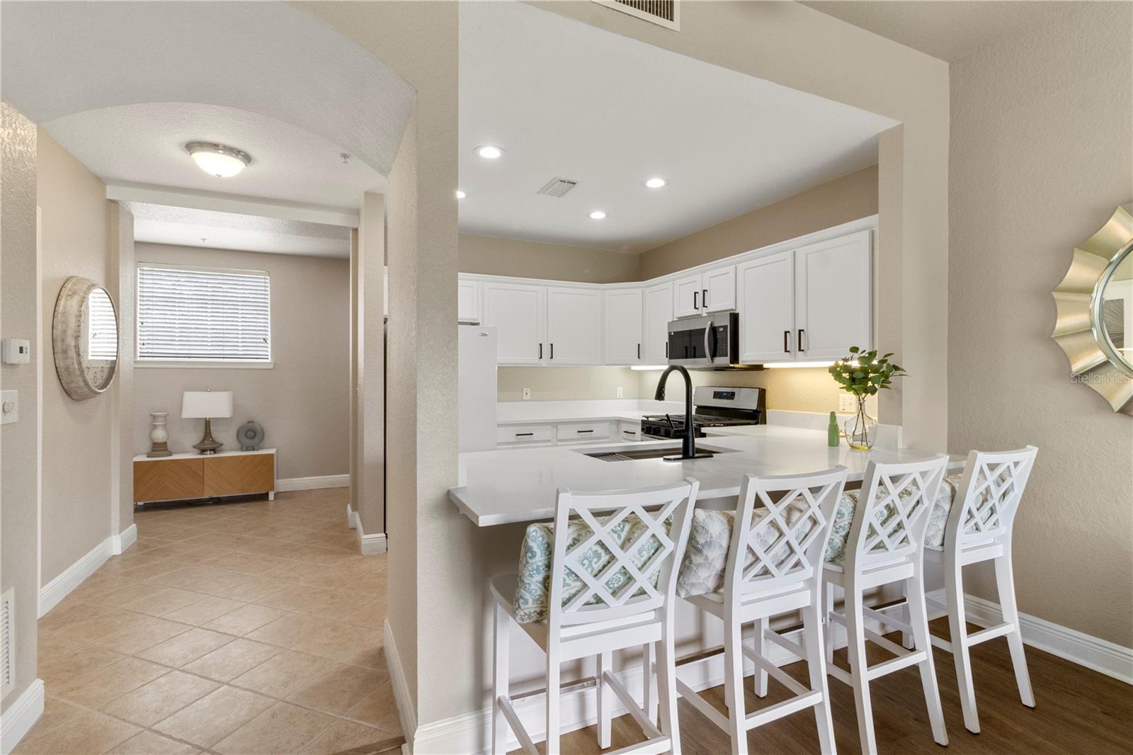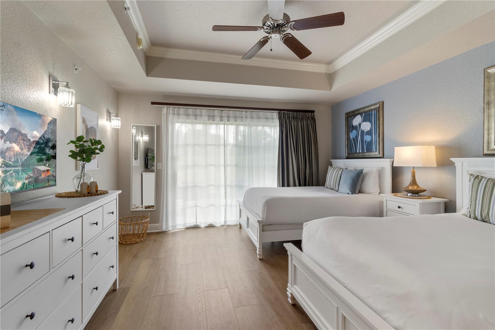 ***Active Transferable Membership*** This 3 bedroom 3 bathroom condo is located in Seven Eagles within Reunion Resort. Upon entering the property you will find upgrades galore including NEW updated cabinetry, quartz countertops, luxury vinyl plank flooring and more. Featuring 3 bedrooms all with en suite bathrooms, 2 balconies, Natural Gas range, water heater and dryer, tray ceilings, 2 HVAC units, ceiling fans in every room and the list goes on. Completely turnkey will all new furniture, electronics and kitchenware included. The exterior boasts newer roof (2022), new paint (2024) and balconies (2024) and new landscaping being installed in 2024. This end unit has an amazing view overlooking the 10th hole of the Arnold Palmer Signature golf course. With the rear patio and balconies facing west it provides for some beautiful sunset views in the evening. Located steps away from the Seven Eagles Clubhouse which conveniently features the Fitness Center, Bar & Grill, and a Zero Entry Pool. Just a short walk across the street to the Reunion Grande which features 3 Restaurants and a Roof Top Pool. This unit is sure to fulfill every renters checklist because of its convenient location. The condo also has a TRANSFERRABLE MEMBERSHIP to Reunion Club which provides access to all Reunion Resort amenities including golf courses. Reunion Resort offers 3 Championship Golf Courses, WaterPark, Tennis Courts, Multiple Restaurants and Pools as well as Conference Facilities. Call to schedule your private showing today.