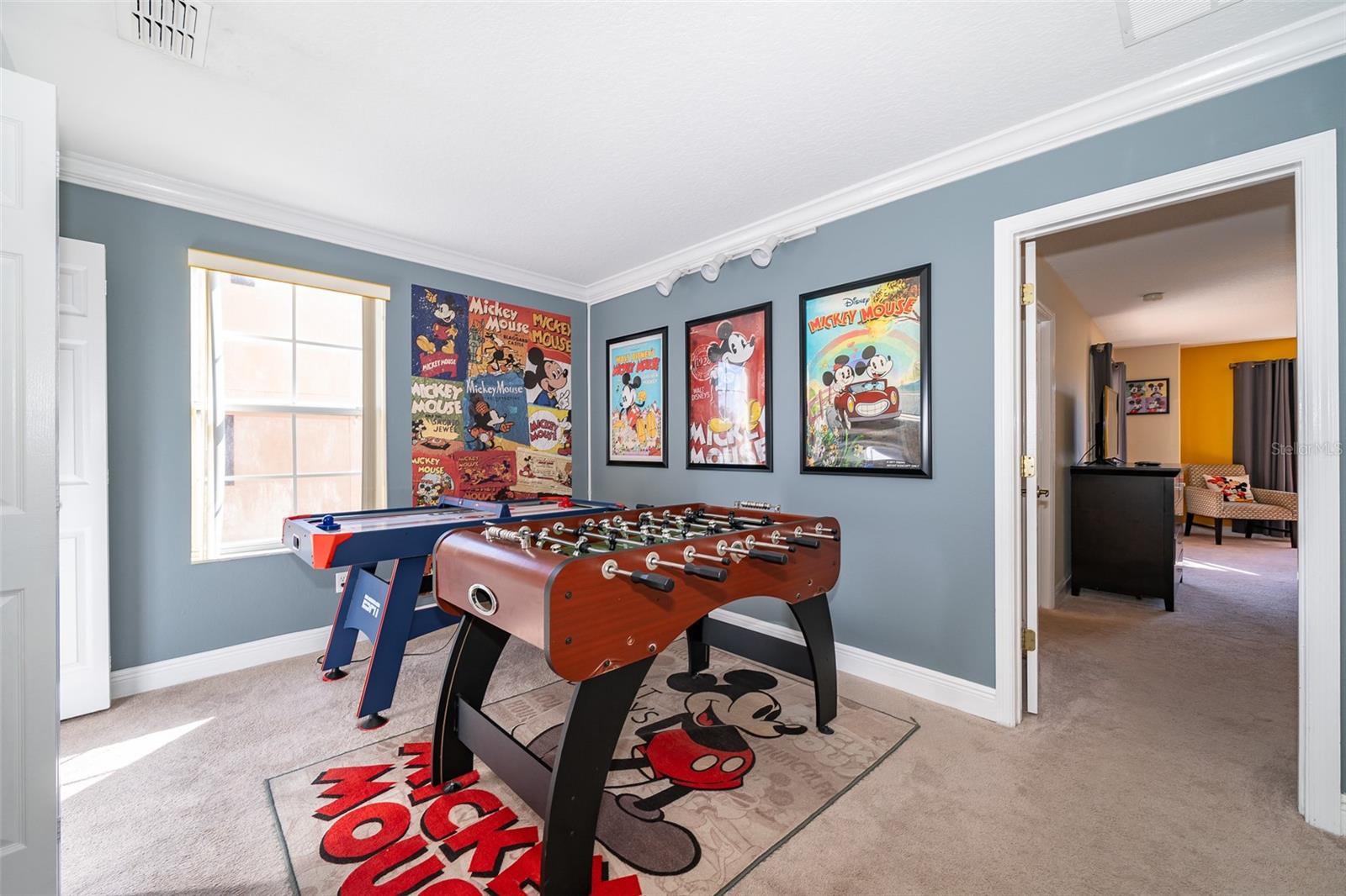 The best price for this 4b2.5b Disney furnished Townhome. Golf View, Resort Style Amenities, in the GATED community of Carriage Pointe in Reunion Resort, Golf Club community. This versatile property can be used, short-term rentals, or long-term investment opportunities. Investor's Dream. The open floor plan welcomes guests with classic touches of crown molding throughout the first floor and Disney decor through out the home. To the right of the entry way you will find a first floor Bedroom, perfect for anyone and specially Grandma. The kitchen is equipped with granite countertops and stainless steel appliances. The living room, kitchen and breakfast nook views of the Jack Nicklaus Championship golf course, the private porch provides a calm outdoor space. UPSTAIRS, the game room/bonus room ready for the joy of family vacation or possibly a 5th open bedroom. To the right you will find the in-suite bedroom with a private balcony overlooking the golf course. Two additional bedrooms provides space for guests or family, laundry closet conveniently located for easy access. In addition to the Carriage Point community pool, guests and residents of Reunion Resort enjoy an assortment of resort-style amenities. At Seven Eagles, enjoy pools, spas, a fitness center, a bocce court, and a linear park. The Terraces have a pool, spa, gazebo, and pavilion. Liberty Bluff offers a dog park and playground, and Grand Traverse Parkway features a playground and outdoor fitness centers. The Homestead offers a pool, wading pool, and spa, while Carriage Pointe features a spa and pool Heritage Crossings includes a community center, wading pool, and spa. Several on-site restaurants, nature trail offering a great outdoor experience. Theme park transportation is available for convenience. Located near Walt Disney World, with easy access to I-4 and numerous themed attractions, shopping destinations, public golf courses, and many restaurants. Primary residence, or for a vacation retreat, or both, this Disney decorated fully furnished Townhome is ideal for enjoying the best of Central Florida, not to count the Theme Parks and amenities. High demand among vacationers and long-term tenant alike. LOCATION, LOCATION, LOCATION. SCHEDULE A SHOWING TODAY!