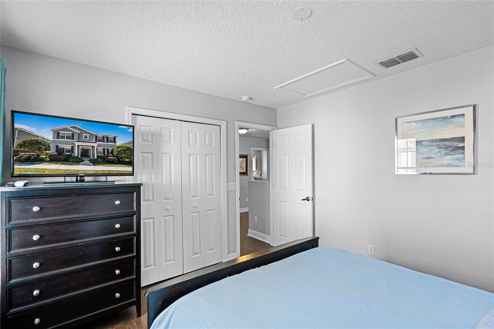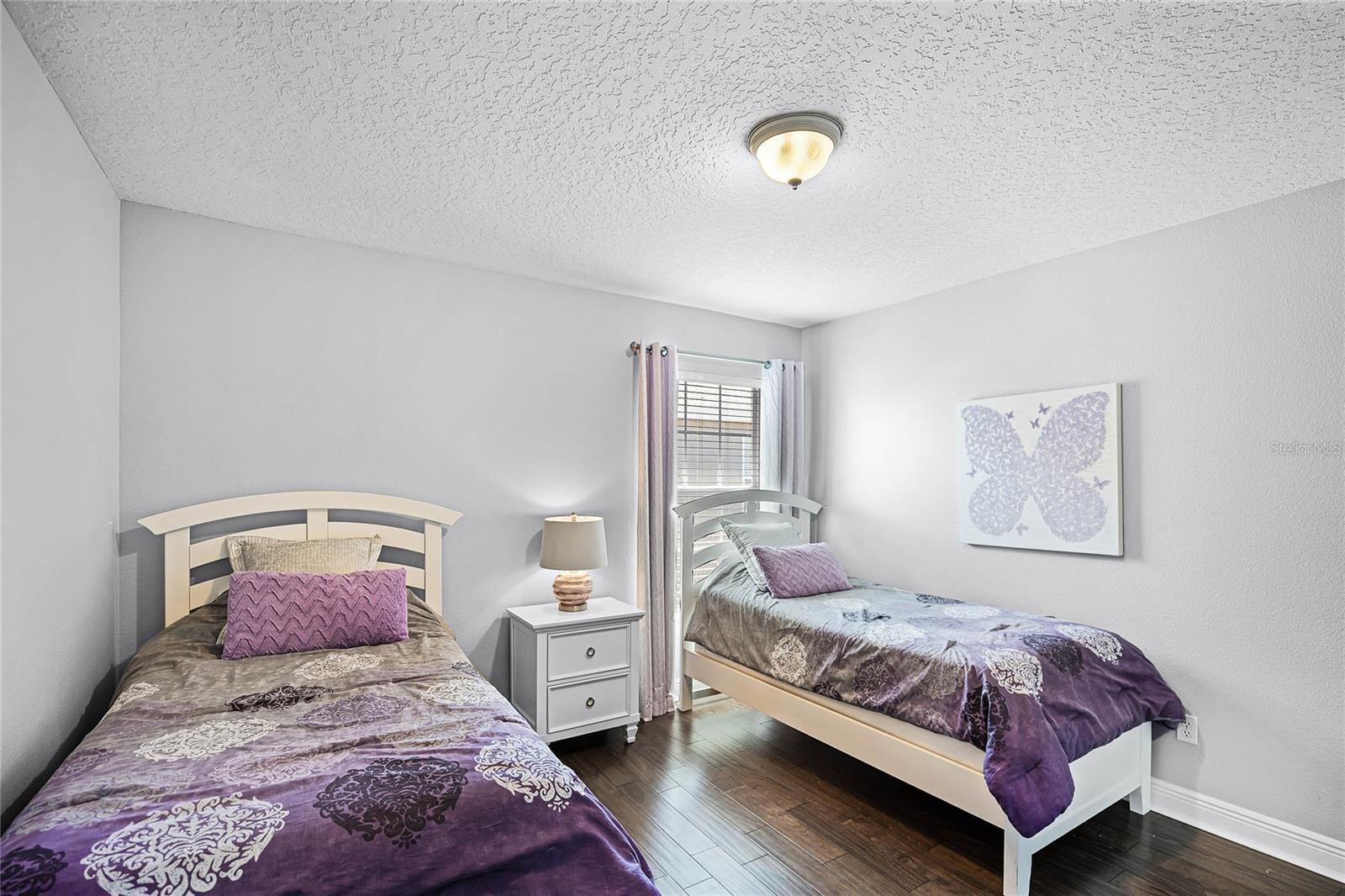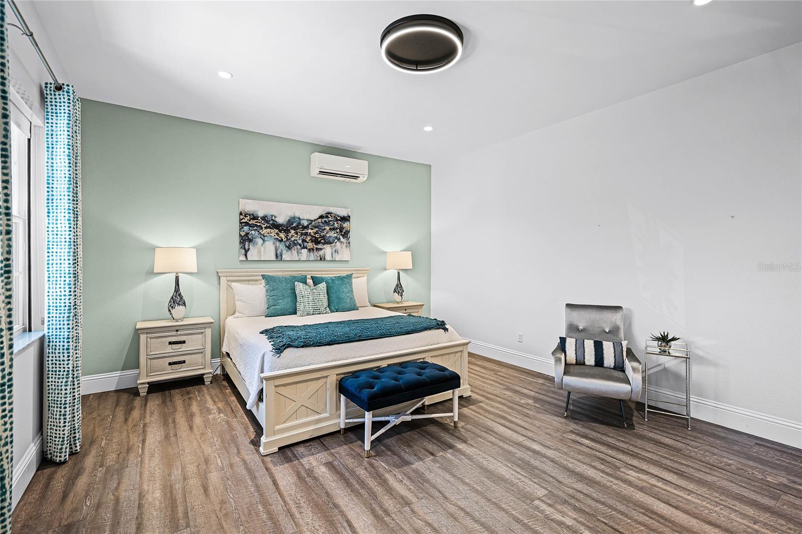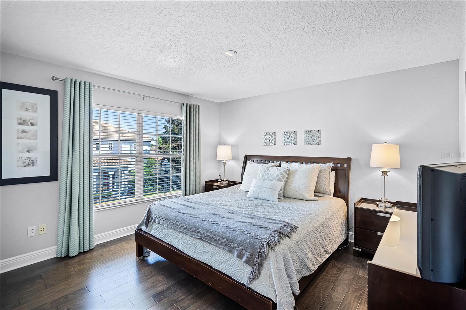 This exceptional, fully furnished, contemporary 5-bedroom, 3.5-bathroom single-family home, located within the desirable, guard-gated Reunion Resort golf community, offers the perfect blend of luxury and leisure. Step into a modernized space boasting pride of ownership, where double French doors lead to a versatile den, ideal as an office or entertainment area. Adjacent, a breathtaking open-concept dining and kitchen area features state-of-the-art 2022 Thermador appliances, including a refrigerator, range, and dishwasher, overlooking the spacious living room. The oversized primary suite, conveniently located on the first floor, includes an ensuite bathroom with double vanity, a large walk-in shower, and a walk-in closet. Four additional bedrooms with two bathrooms are located on the second floor. Enjoy preferred privacy in the courtyard-style lanai, screened-in pool, and spa with included heating. Recent upgrades include a complete pool equipment replacement in 2022, a 2018 AC central unit, a brand new roof and water heater in 2024, and a freshly repaired driveway in 2025. Further enhancements include a complete R1's floor renovation in 2020, and a Pac-Man arcade game. This property grants full membership access to Reunion Resort's renowned amenities, including a water park with a lazy river, three championship golf courses, a tennis complex, multiple community pools, and fitness centers. Enjoy walking distance to the Seven Eagles clubhouse with its resort pool, gym, and dining, as well as the Reunion Grande Hotel for rooftop dining and Disney fireworks views. A dedicated office/6th bedroom, gourmet Thermador kitchen, designer finishes throughout, and resort amenities like a kids club, make this 2,442 sq ft home an exceptional vacation retreat, short-term rental, or permanent residence, located close to Orlando theme parks, restaurants, and shopping.