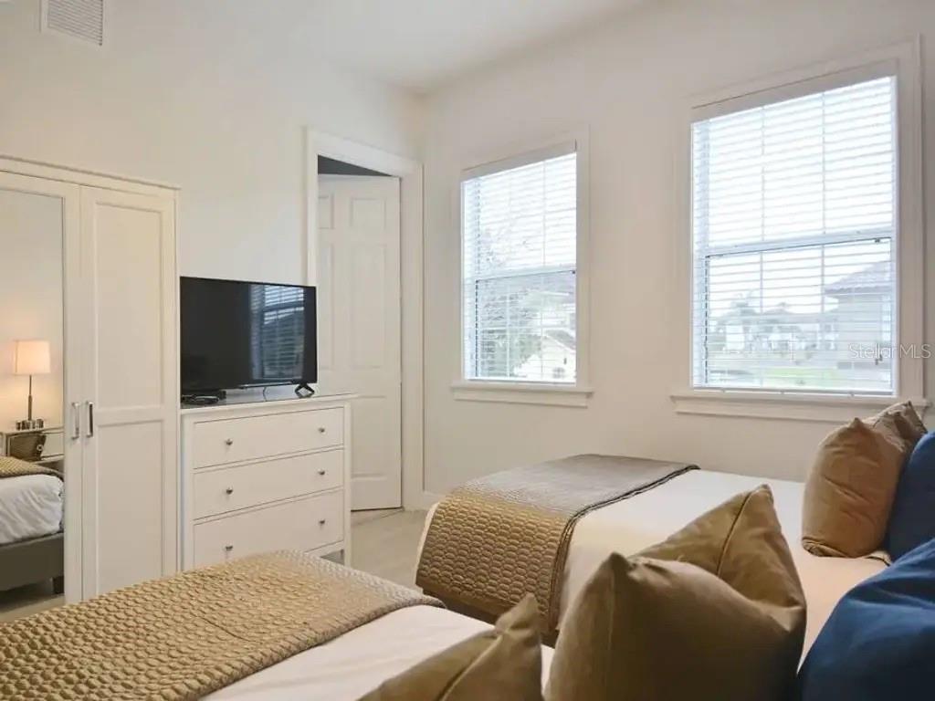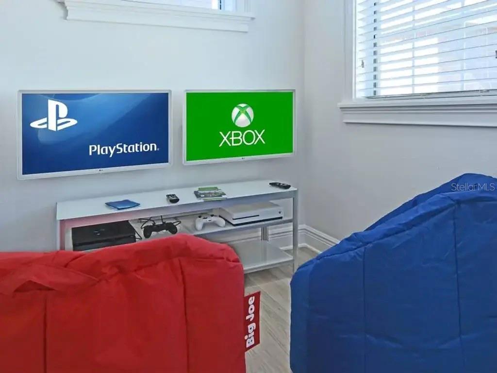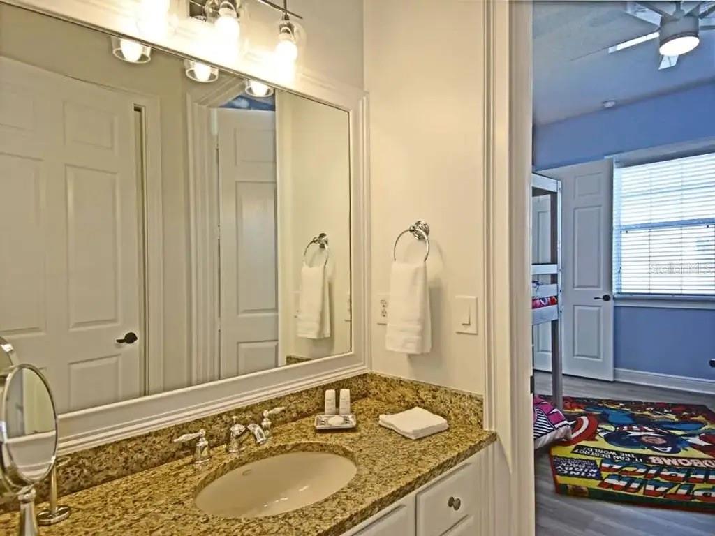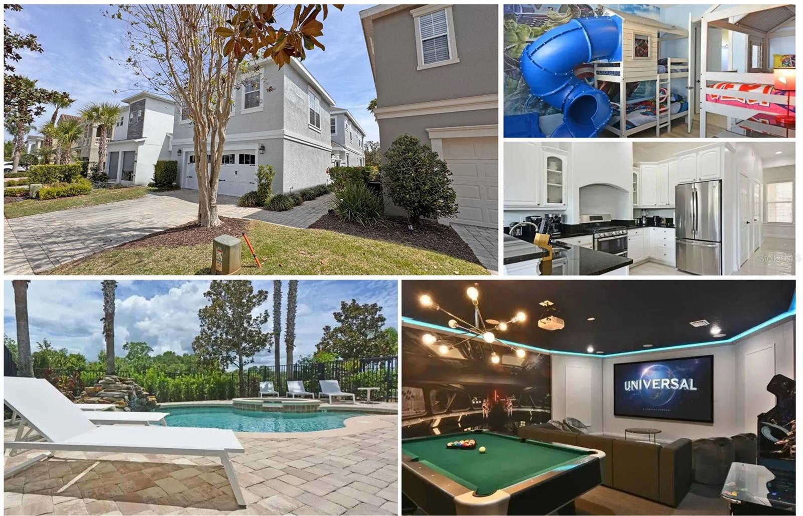 Investors do not miss out on this ultra-high-income-producing property that has generated over $174,000 just from Airbnb alone in 2024, not including other booking sites. The seller has done this without the need for the resort membership, saving the additional carrying cost to the new owner. Truly a prime location overlooking the Jack Nicklaus Signature Golf Course. This unique courtyard-style home has the perfect setting with the rear-facing swimming pool, a spillover spa with an exotic waterfall feature. The rear covered patio area with an outdoor alfresco dining area with extended pavers and plenty of seating. There is a completely immersed Star Wars games room featuring a 135-inch HD projection screen, surround sound system, pool table, and exciting console games to play. Once inside the home, you will experience a modern and bright Miami-chic style featuring elegant 4ft porcelain white tiles throughout, white cabinets, and furniture. There is a king suite on the main floor with a private bathroom. Upstairs, you will find a Marvel-themed bedroom with 4 twin beds and a full en-suite. The master bedroom upstairs looks like it is out of a magazine cover, featuring a wall-to-wall walkout balcony with double French doors, a separate seating area, and tray ceilings. The balcony underwent comprehensive repairs in 2025. Additionally, three air conditioners were replaced, two in 2020 and one in 2025. Furthermore, a new 2025 pool gas heater was installed. Falling in love will be easy, but the only difficult part will be viewing the home in person as it is constantly booked with repeat guests staying in the home. Reunion Resort is 2300 acres of lush green space, only 10 minutes from Walt Disney World, with plenty of restaurants, shopping, and Orlando Airport 25 min away. The resort is zoned for short-term rentals and has plenty to do to keep the family entertained, which includes 6 resort swimming pools and spas, a fitness room, parks, playgrounds, and even a dog park.
