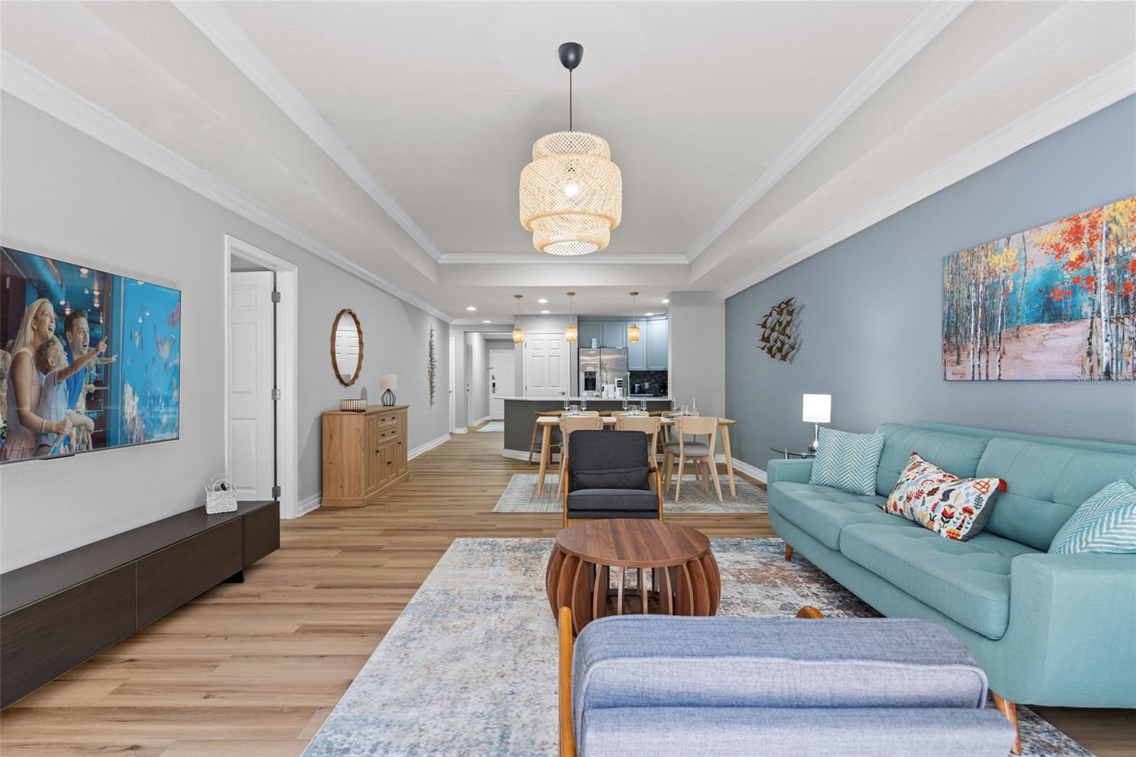 Already generating bookings before you even close. Fully furnished. Fully renovated. Income-ready. Welcome to 7658 Whisper Way, Unit 202 — a fully renovated, designer-furnished condo in the prestigious guard-gated golf community of Reunion Resort. Updated in 2024 and professionally furnished in a clean, modern minimalist style, this 3-bedroom, 3-bathroom residence offers over 1,630 sq ft of comfort and functionality — ideal as a primary home, second home, or vacation rental. The open-concept kitchen features white cabinetry, stone countertops, tile backsplash, and stainless steel built-in appliances. Luxury vinyl plank flooring runs throughout, complemented by fresh interior paint, updated 2024 bathroom vanities, and modern lighting. Enjoy a private balcony with peaceful conservation views and a brand-new AC system (2024) for year-round efficiency. Reunion Resort offers resort-style pools, tennis, three signature golf courses, on-site dining, playgrounds, and more — all just minutes from Walt Disney World. Investment Opportunity: Professionally managed with ~70% occupancy secured between March and December 2026, offering immediate income potential. Future reservations and current property management are not a condition of the sale. The continuation of existing bookings and/or the use of the current management company are solely at the buyer’s discretion.