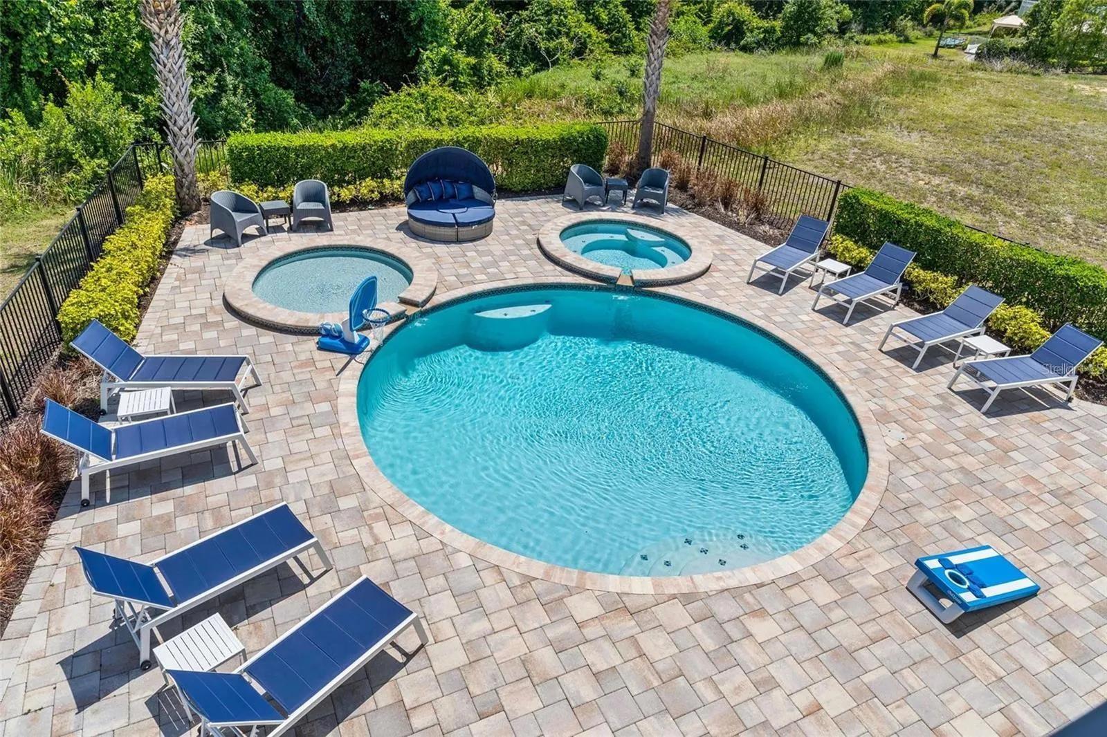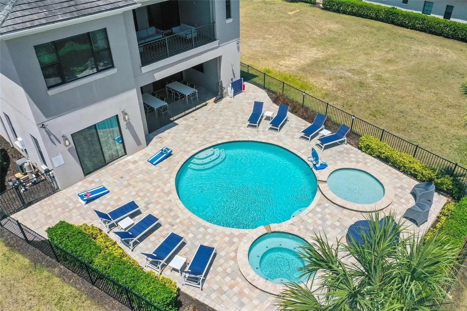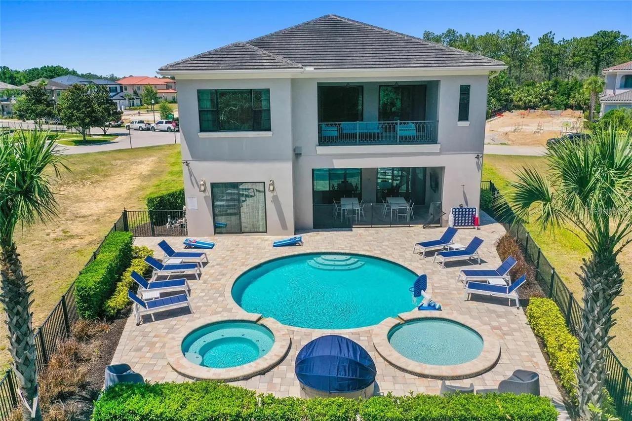 Financing available for this Florida lifestyle home priced at 5.5% interest rate. Located in Reunion Resort and Club, this home is within close proximity to endless amenities. Home features start with an open layout where you can convene in the living room, kitchen and dining room. There are three king suites on the first floor along with an indoor basketball court. On the second level you'll find a state of the art movie theater, arcade game room, bunk bed rooms and the remaining king suites. Within the property, a large outdoor living space includes a Mickey shaped pool and spa and an outdoor kitchen. Reunion Resort offers an endless array of features to explore including three signature golf courses, a 5-acre water park, tennis center, and a variety of dining options.