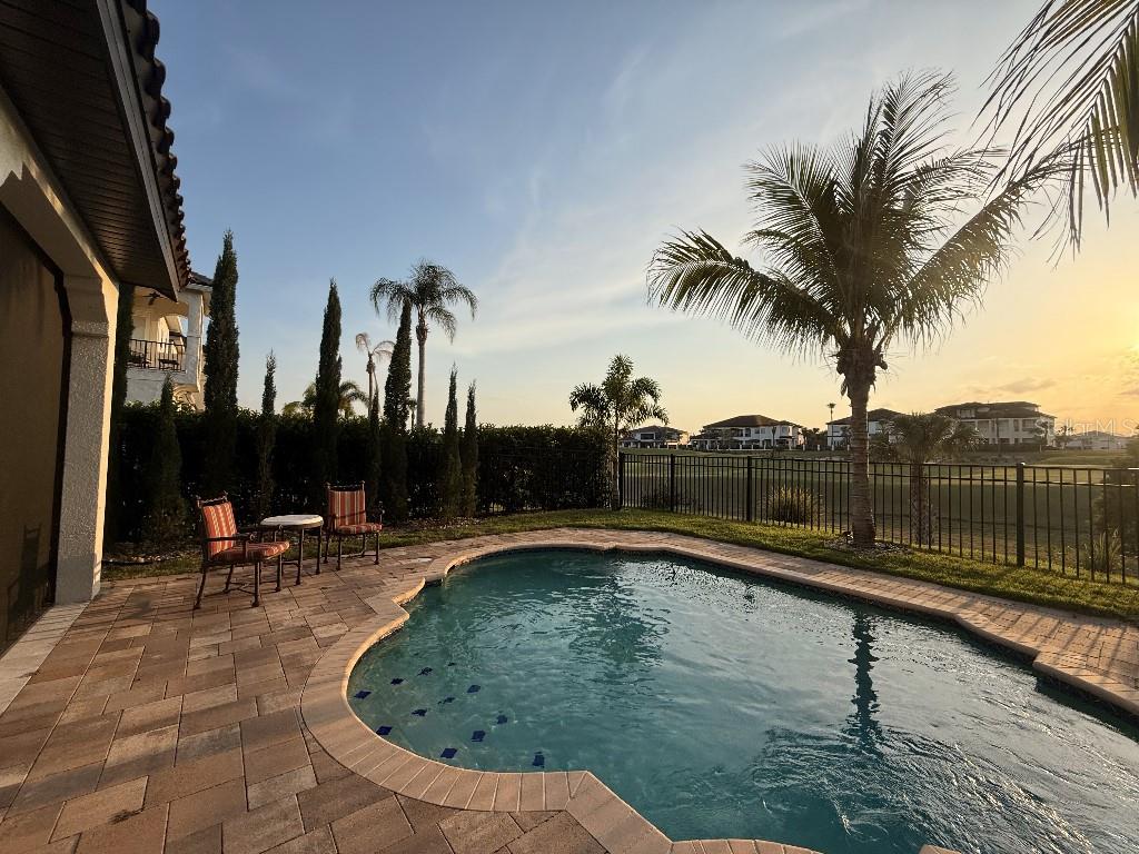 This remarkable listing presents a unique opportunity for those seeking a luxurious residence in a coveted location! Nestled atop the hill overlooking Jack Nicklaus's iconic hole #6, this home offers stunning million-dollar golf course views. One of the standout features is the inclusion of a golf club membership, which enhances the allure for golf enthusiasts. Additionally, it is one of the rare homes in Reunion that boasts vacant lots on both sides, ensuring a serene environment for ultimate privacy. Imagine unwinding in your west-facing pool while basking in the beauty of breathtaking sunsets and the sight of hot air balloons drifting above. This secluded haven is located within the gated community of Reunion’s Golf Club, merely minutes away from the magical Walt Disney World and other renowned theme parks. The property is thoughtfully designed for pet owners, featuring a fully fenced rear and side yard, perfect for your furry friends to roam freely. The meticulously redone landscaping showcases a vibrant array of new grass, majestic palm trees, including large coconut and graceful papaya trees, along with banana trees and various other plants, such as bamboo, which provide both privacy and shade. The pool is equipped with a gas heater, ensuring year-round enjoyment, while the house features an upgraded water filtration and softener system for enhanced comfort and convenience. Inside, a washer and dryer are conveniently located in the main house, with an additional set available in the garage for the separate guest suite. The outdoor space is perfect for entertaining, complete with a private patio adorned with lush bleeding heart vines that create a picturesque shaded area. The outdoor grill, connected to natural gas, makes for effortless grilling and adds an extra layer of enjoyment to your outdoor gatherings. This home is truly one-of-a-kind within the Reunion community! With its exceptional features and desirable location, it’s an opportunity you won’t want to miss. The Reunion Resort also boasts extraordinary amenities, including three world-class championship golf courses designed by legends like Arnold Palmer, Tom Watson, and Jack Nicklaus. Additionally, residents can enjoy access to twelve community pools, including a multimillion-dollar water park featuring a lazy river and thrilling water slide. Don't hesitate to schedule your appointment today to experience this extraordinary property firsthand! Schedule your appointment today! *Home has golf club membership *Owner is a licensed agent