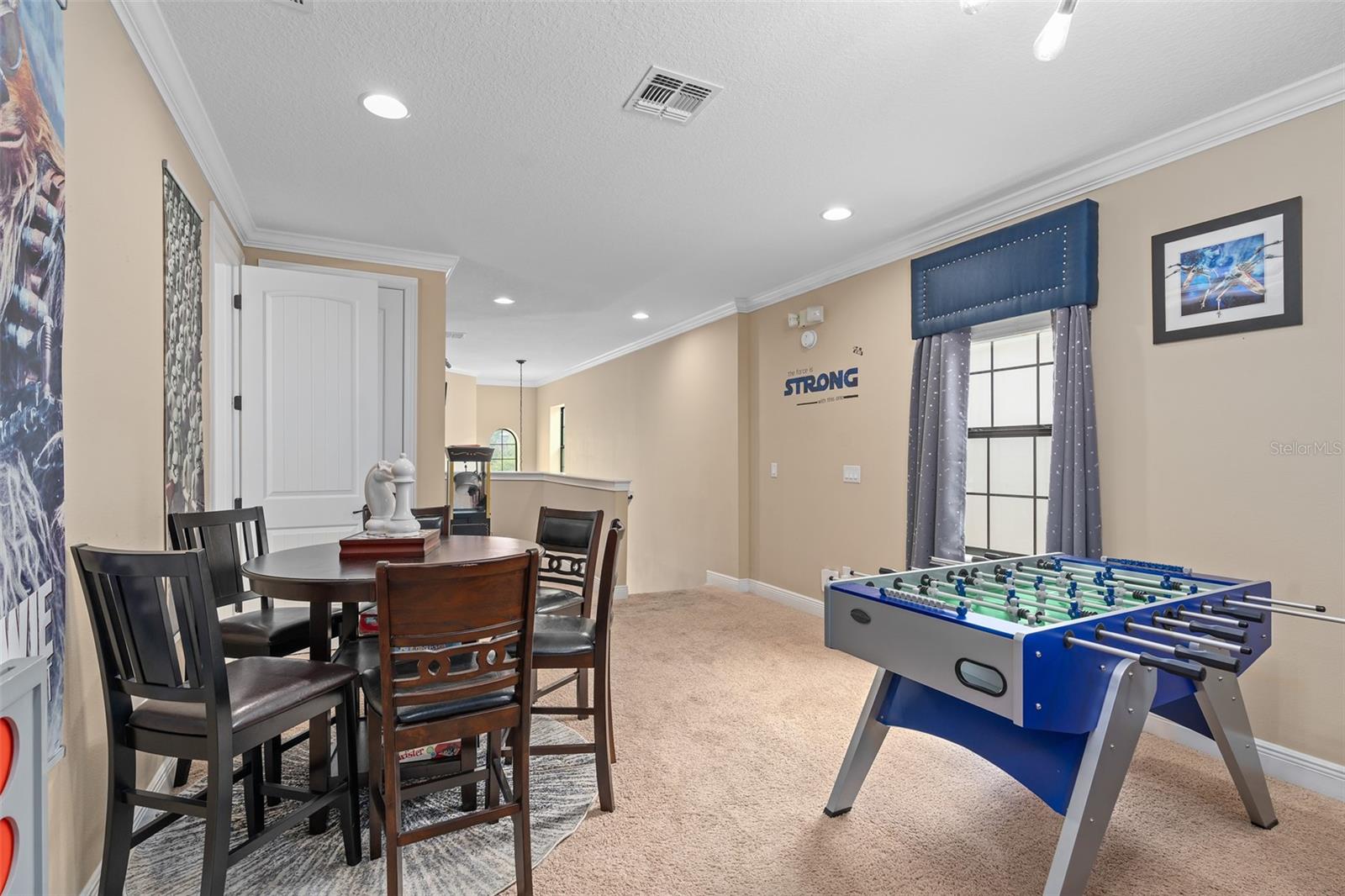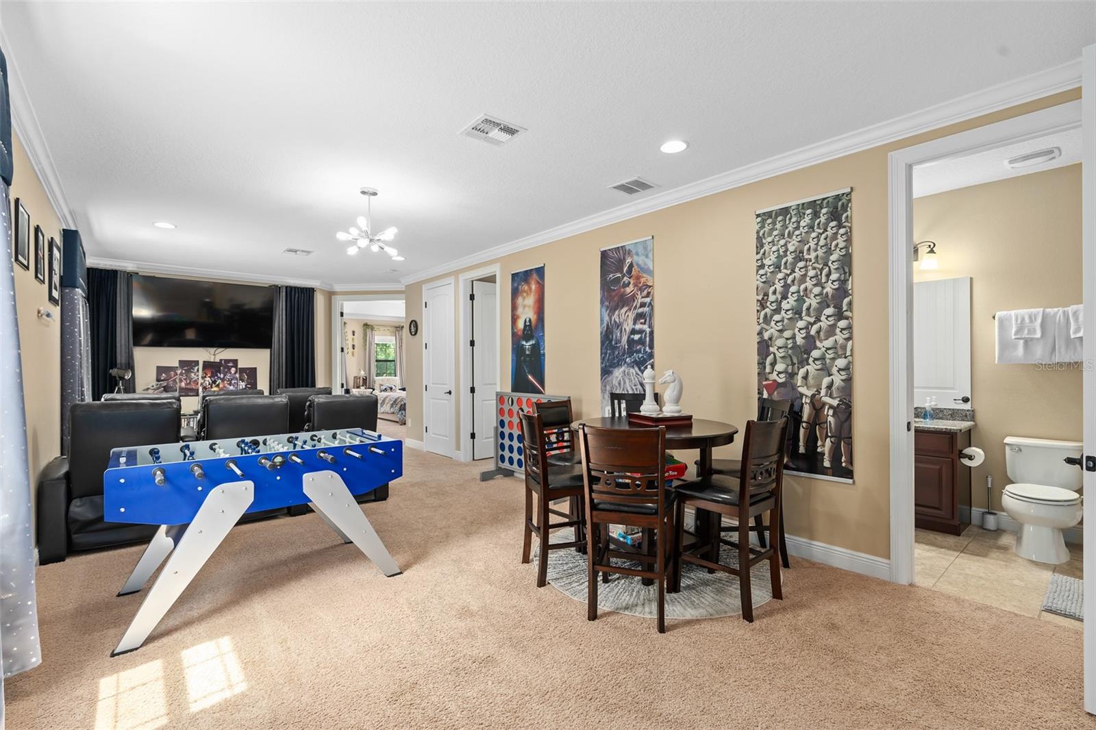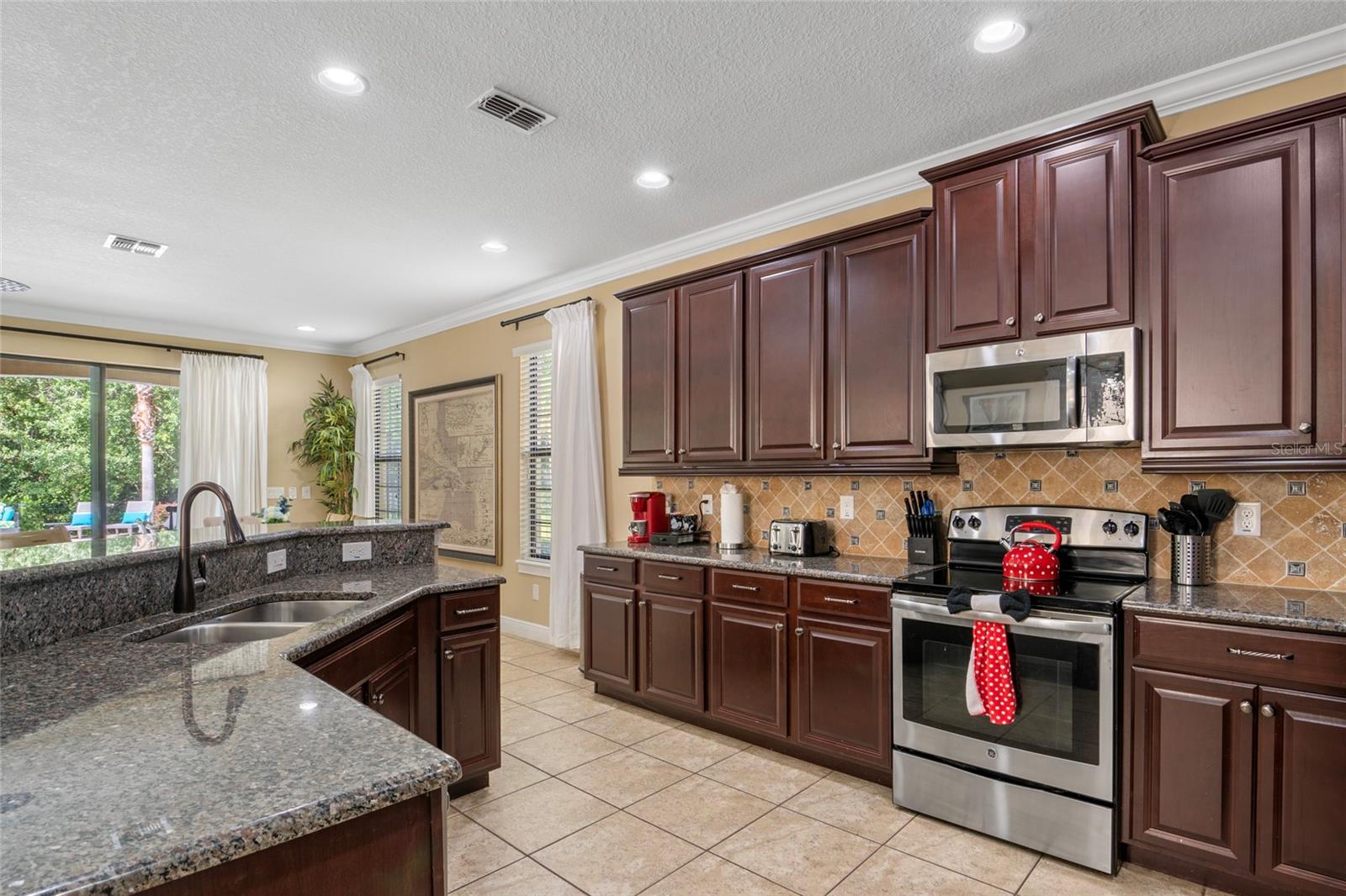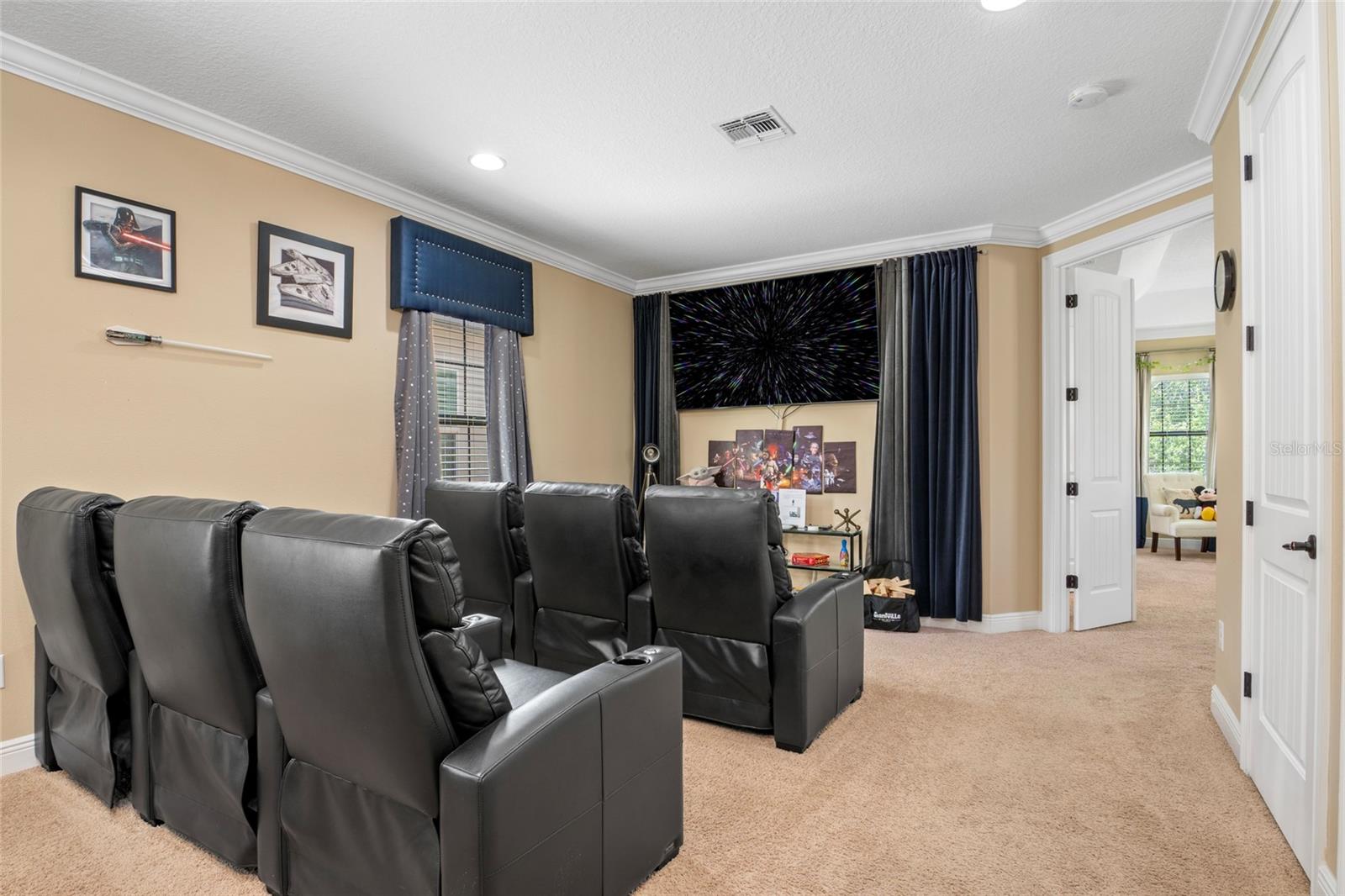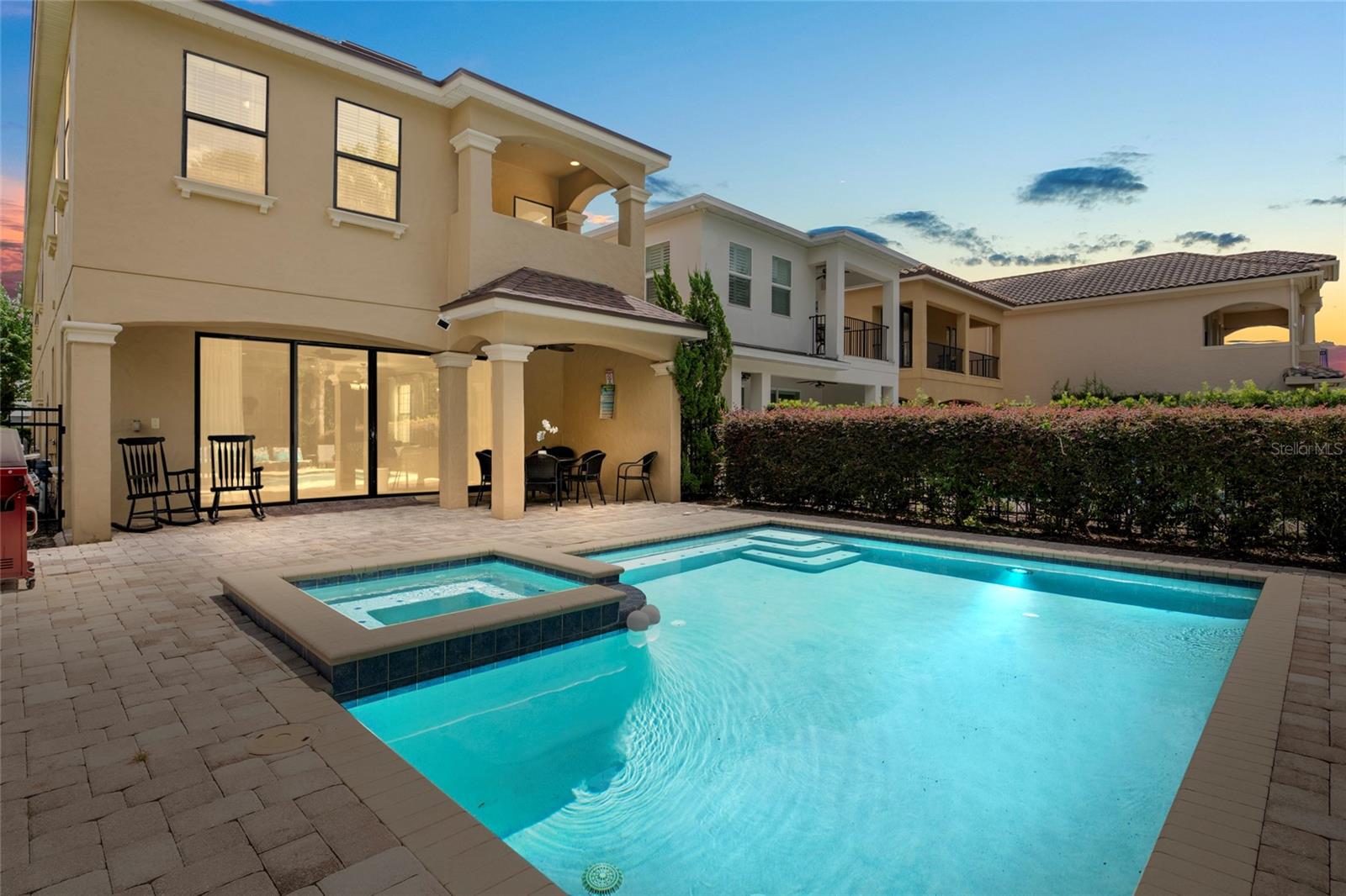 Welcome to an extraordinary investment opportunity in the heart of Central Florida’s premier vacation destination—Reunion Resort. This fully furnished 5-bedroom, 5.5-bath luxury home is a turn-key income-producing powerhouse already booked well into 2026, offering immediate returns for the savvy investor. Each bedroom features its own en-suite bath, and the spacious primary suite on the first level boasts dual sinks, a soaking tub, and a separate shower for true resort-style living. Designed for maximum guest appeal, this home features soaring 10-foot ceilings, a dramatic vaulted entry, and an open-concept layout that flows seamlessly from the living space to the kitchen, where granite countertops, stainless steel appliances, 42-inch cabinets, and a large island with a high bar area create a central hub for entertaining. The open space offers lots of windows and a four-panel sliding glass door that floods the home with natural light and opens up to a private pool oasis overlooking a peaceful wooded preserve—ideal for relaxing after a day at the parks. The backyard retreat showcases a heated pool with an attached hot tub spa, surrounded by ample lounge seating for sunbathing, along with a covered patio featuring an outdoor dining table and chairs, and a built-in grill—perfect for entertaining, relaxing, or enjoying Florida’s sunshine year-round. Recent upgrades include a new roof in 2020, a new pool pump and heater in 2023, an AC pipe cleaning system installed in 2024, and a brand-new washer and dryer in 2025, ensuring the property is not only beautiful but also meticulously maintained. The home comes fully furnished and includes a Ring doorbell and exterior security cameras for added peace of mind. With a two-car garage and additional driveway parking, this home is ready to host multiple guests or extended family comfortably. A key highlight of this property is the collection of professionally designed themed bedrooms that elevate the guest experience and enhance rental appeal. Guests can set sail in the vibrant Captain Mickey suite, drift into tranquility in the breezy nautical-inspired room, unwind in the lush jungle retreat, feel like royalty in the elegant princess escape, or dream of adventures in the globally inspired travel-themed room with double beds—each one crafted to delight guests of all ages. Centrally located on the second floor is a dedicated theatre and game area featuring nine plush theatre chairs, blackout curtains, and ample space for relaxation or movie nights, making it a true entertainment hub. Reunion Resort delivers a five-star experience with championship golf courses, on-site dining, multiple resort-style pools, a water park with a lazy river, miniature golf, tennis courts, a fitness center, and miles of walking trails. Just minutes from Disney and with quick access to I-4, 429, and 192, this home checks every box for an investor seeking consistent rental income in a high-demand location. Whether you're looking to expand your short-term rental portfolio or secure a magical family retreat with exceptional earning potential, this is the opportunity you've been waiting for!