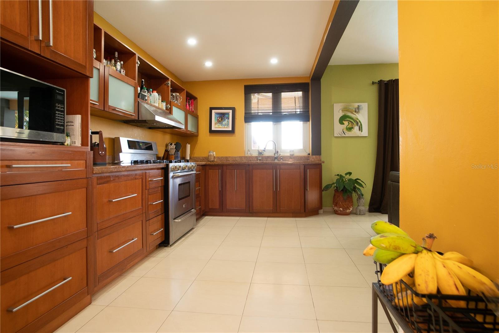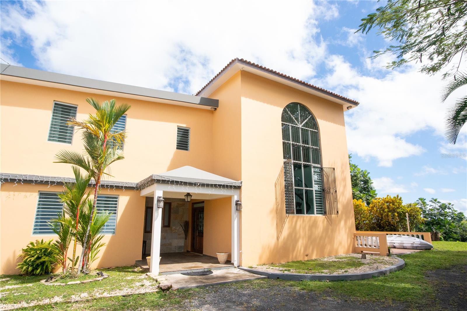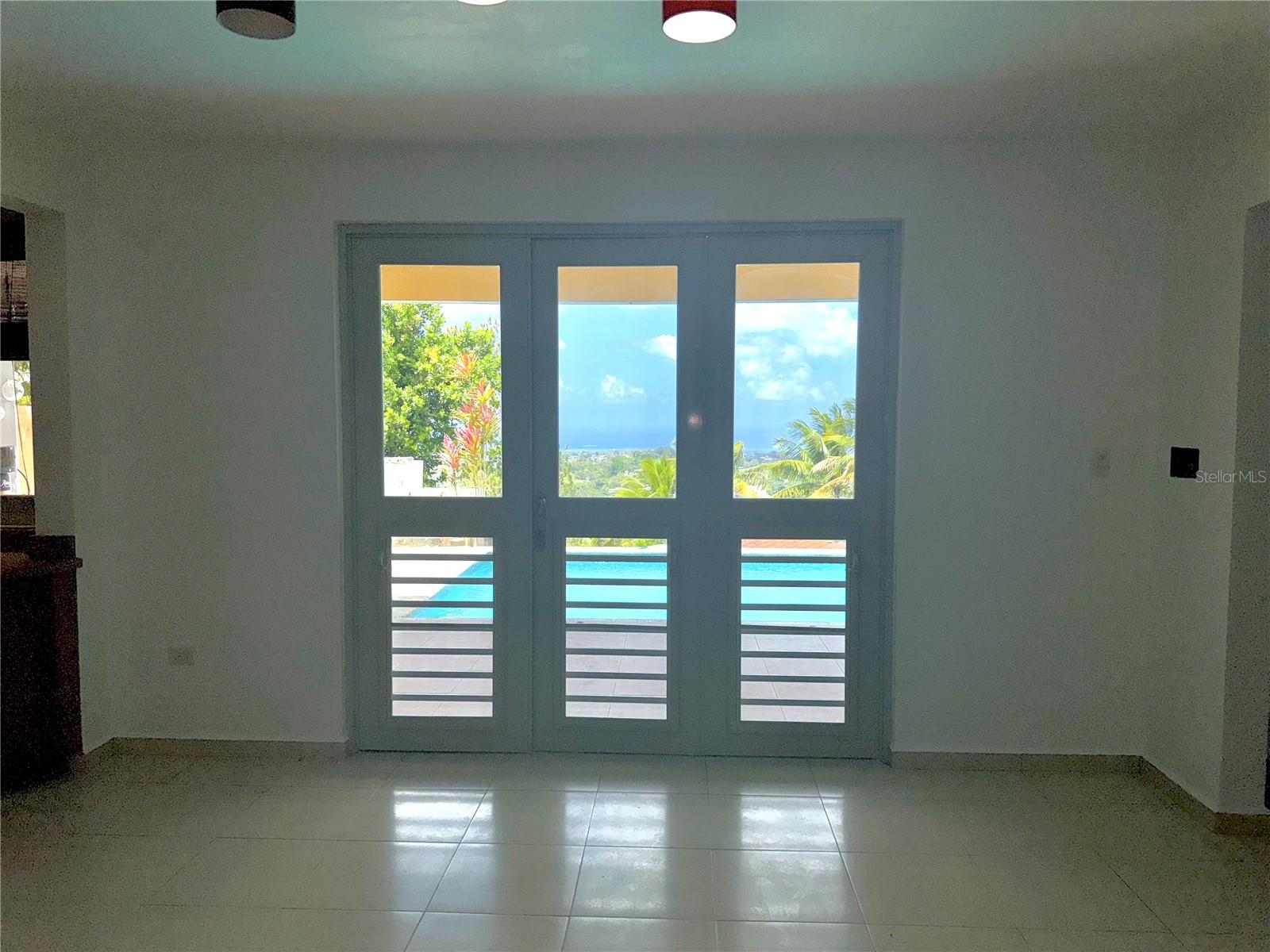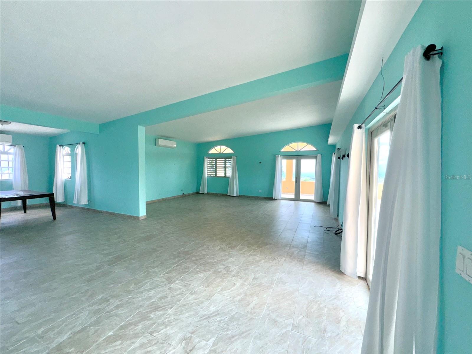 Secluded Villa in the mountains located at the borderline of Rincon and Aguada in Atalaya ward. Ocean views from many areas of the property. Property consists of: First level has 3 bedrooms, 2 full bathrooms, open kitchen-living room-dining room, huge foyer with majestic staircase and high ceiling that leads to second level, 2 car garage, laundry, pool, terrace, outdoor shower. Second level has 2 bedrooms, 1 bathroom, spacious open living room that access to big balcony and a huge open terrace. Property is aprox 1.8 acres with variety of trees including palm trees, plenty of lovely sitting areas. There is a separate studio with an additional pool. Additional building formerly used as a work shop. House is currently without furniture.