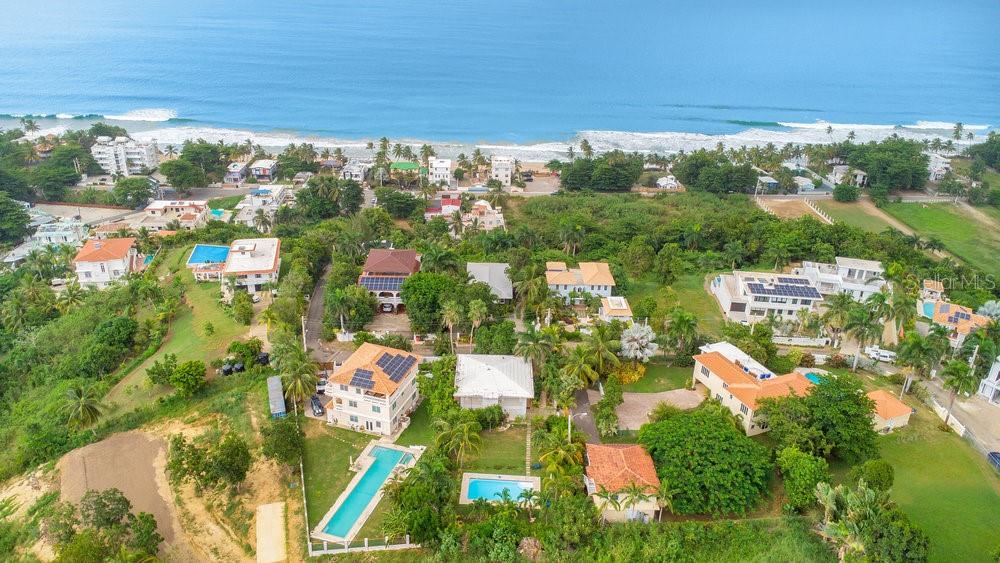 Located on one of the most sought after streets in the Puntas neighborhood of Rincon, this 2 unit property is just a short walk to world class surfing, beautiful beaches and the Sandy Beach area restaurants and activities. The main home is on the second floor, with a large covered balcony, 2 bedrooms (one a primary suite) and 2 bathrooms plus open concept kitchen to living area with accordion style doors that open to the balcony with ocean views and breezes. The first floor is a 2 unit, 2 bath rental unit with full kitchen, large balcony and private access as well as garage access. The landscaped yard is oversized for the neighborhood and features a large in ground swimming pool and fencing on the perimeter. This is a fantastic live-in and rent the 2nd unit or rent both, there are no restrictions. This is one of the most reasonably priced homes on this street where ALL the homes are valued over $1 million.