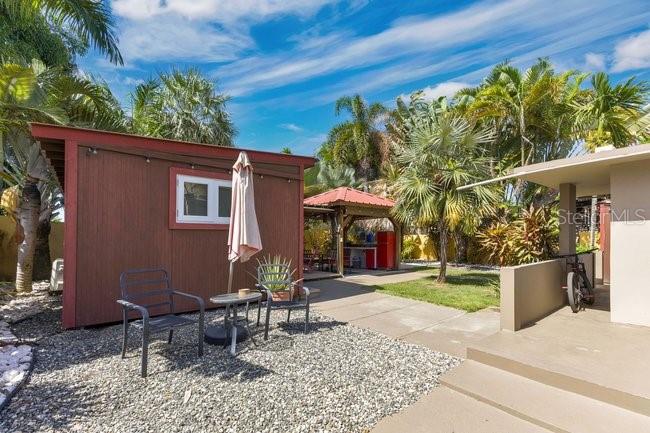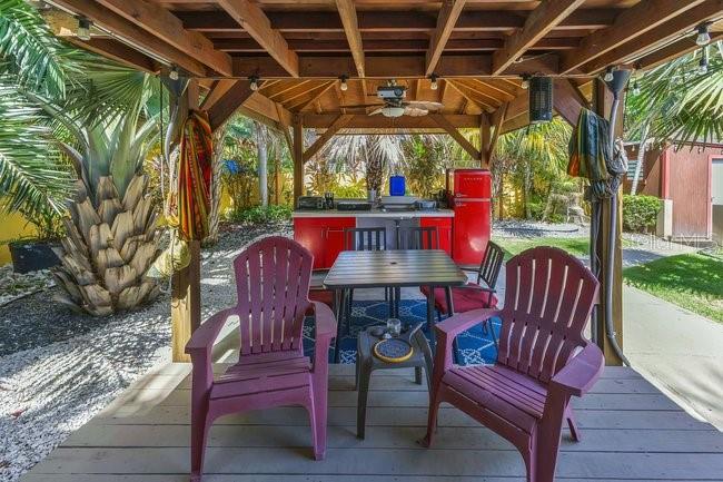 Charming Beach Town Retreat Welcome to your tropical dream coastal escape! Nestled in the heart of the iconic beach town of Rincon, this stunning property is just 375 meters to the sandy shores of the Caribbean and surrounded by vibrant restaurants and shopping areas. The main house has approximately 900 s/f of living space. It features a bright galley kitchen and an open floor plan that seamlessly blends the living room, casual dining area, and a more formal dining space. The spacious primary bedroom has its own en suite half bathroom. The shared full bathroom with tub is centrally located in the hallway. The second bedroom is located at the opposite end of the hallway and both bedrooms feature plenty of closet space with modern A/C units. The open concept living/dining area has its own A/C unit to adequately cool the entire house. The formal dining room can be easily converted to a third bedroom if desired. This property also includes a spacious wooden bungalow (approximately 240 s/f), bringing the total square footage including detached full bath to approximately 1,200 s/f of versatile living space with a total of 3BR and 2.5BA. The bungalow was constructed 3 years ago and will not be sold furnished but the main house is being sold furnished minus select pieces and personal items. The bungalow enjoys the convenience of a detached full bathroom nearby. The lot size is 526.928 s/m with a lush backyard that is truly a tropical oasis, complete with a cozy gathering area, outdoor kitchen/dining area to enjoy with friends and family. The combination of main house and bungalow along with outdoor kitchen/lounging areas are perfect for short-term rentals or living in the main house while generating income from the bungalow. You could also use one or both as a professional office since there is ample parking out front. The house is equipped with 14 solar panels and its 4 IQ batteries are included with the purchase, making it both energy-efficient and budget-friendly. There is a driveway leading to a covered carport with a garage door to provide privacy that also houses the laundry area, and an additional shed for storage. There are two other storage areas and storm shutters for the windows are also included. In addition to the parking spaces inside the property there is ample parking out front. This rare find offers a unique opportunity to embrace coastal living or capitalize on its rental potential. Don’t miss your chance to own a slice of paradise! Proof of funds or pre-qualification letter from a bank in Puerto Rico is required for a showing. Reduced to $499K.