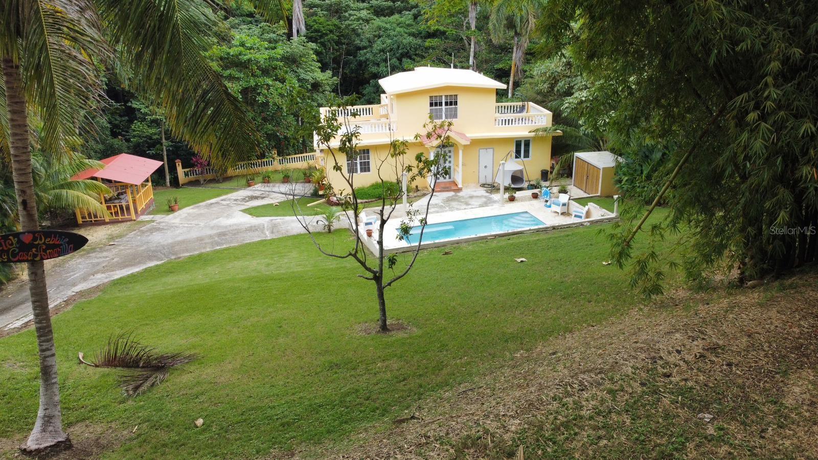 Private Tropical Estate in Rincón – Just 5 Minutes from the Beach & Plaza! Discover this rare, income-generating gem in the heart of Rincón. Nestled in a lush, private setting, this property features a main home with 3 bedrooms and 2 bathrooms (~1,200 sqft) and a casita studio with 1 bedroom and 1 bathroom (~500 sqft). Perfect for a private retreat, Airbnb rental, or both! Prime Location & Lifestyle Only 5 minutes to the beach and downtown plaza. Close to top surf spots, restaurants, and boutique shopping. Tucked away in a quiet, tropical oasis with mountain retreat vibes. Fully Furnished & Move-In Ready. Includes all furniture: beds, stoves, refrigerators, A/C units, sofas, patio set. 500-gallon cistern, shared laundry, and 2 outdoor showers. Large covered porch for relaxing or entertaining. Outdoor Features: 16x24 ft saltwater pool – your private oasis. Gazebo, charming chicken coop, and a serene stream in the backyard. Surrounded by lush greenery and the soothing sounds of nature. Investment Potential! Live in one unit and rent the other, or use both as a profitable short-term rental. Zoned and ready for those looking to own in one of Puerto Rico’s hottest coastal markets.