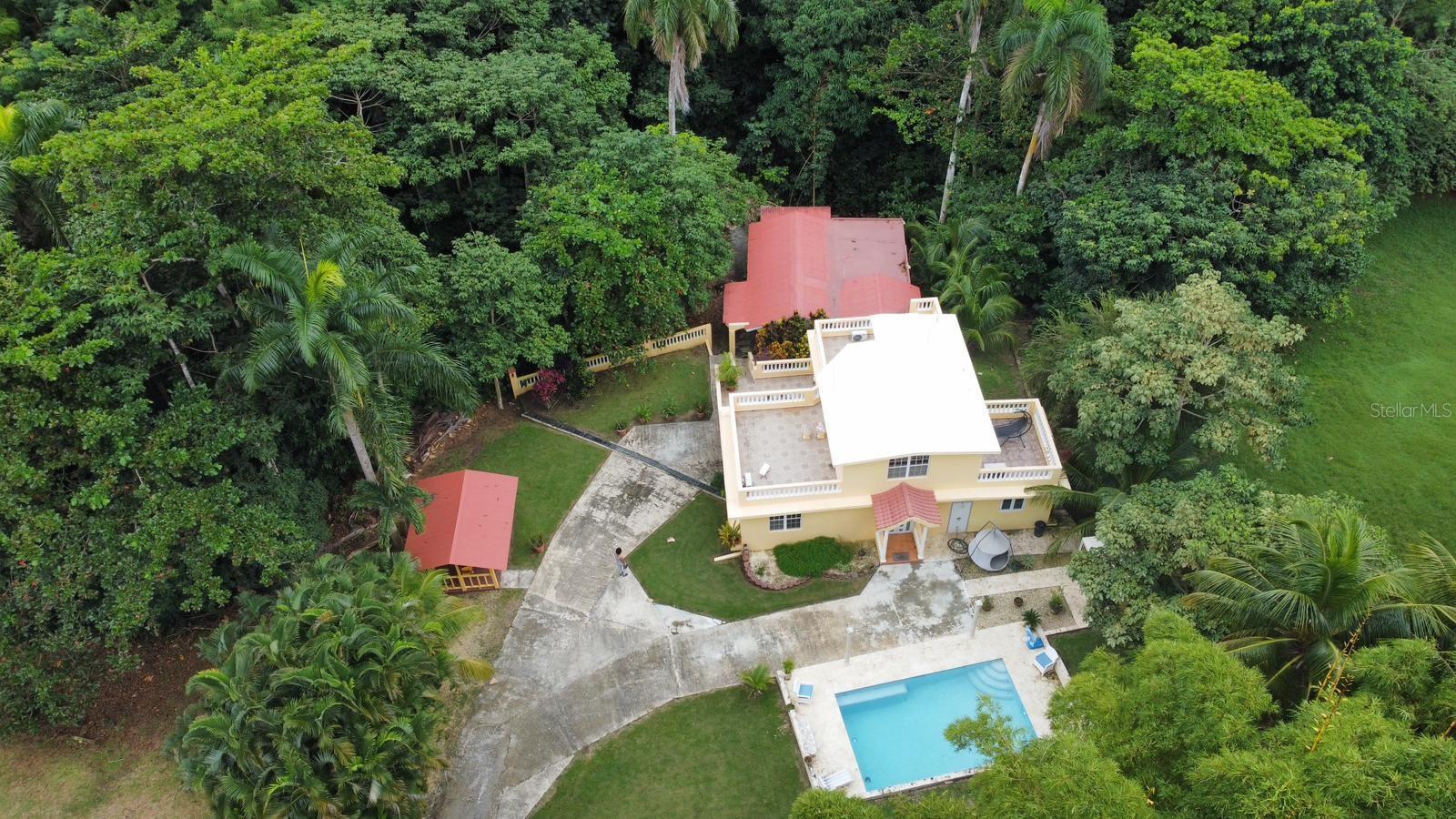 Escape to this enchanting retreat in Rincon! This exquisite property has a main house with 3 bedrooms and 2 bathrooms, spanning approximately 2,200 sqft, and a charming "casita" studio featuring 1 bedroom and 1 bathroom, occupying around 500 sqft. A golden investment opportunity awaits, particularly for those seeking to invest in one of Puerto Rico's most coveted towns. This property comes fully furnished, includes stoves, fridges, beds, air conditioners in every room, sofas, a patio set, a cistern, and more. Practicality meets luxury with shared outdoor laundry facilities for both the main house and the casita, along with two refreshing outdoor showers. The property's centerpiece is a stunning 16x24 ft saltwater pool, creating an oasis for you and your guests to enjoy. Additional features include a gazebo and a charming chicken coop, adding character and functionality to this unique property. Surrounded by nature, giving you a mountainous retreat feeling this offers unparalleled privacy and tranquility. As you explore the rear of the property, a babbling water stream awaits, providing a serene backdrop. Picture yourself on the back porch, listening to the soothing sounds of water flowing over the rocks and the enchanting symphony of coquis during the night.