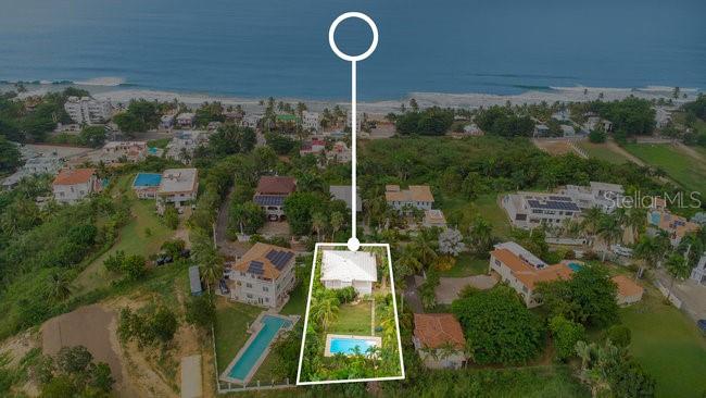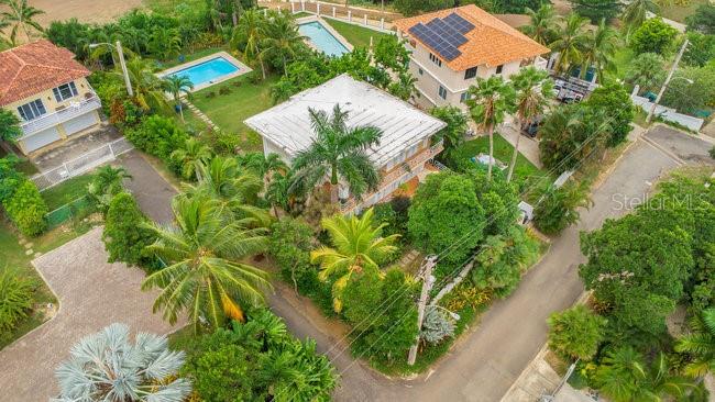 Located on one of the most sought after streets in the Puntas neighborhood of Rincon, this 2 unit property is less than 300 meters to world class surfing, beautiful beaches and the Sandy Beach area restaurants and activities. The main home is on the second floor, with a large covered balcony, 2 bedrooms (Primary suite has an en-suite bathroom) and a shared bathroom in the hallway plus open concept kitchen to living area with accordion style doors that open to the balcony with ocean views and breezes. The first floor is a 2 unit, 2 bath rental unit with full kitchen, large balcony and private access as well as garage access. The landscaped yard is just over 1,000 Square meters with room for another structure and features a large in ground swimming pool and fencing on the perimeter. This is a fantastic live-in and rent the 2nd unit or rent both, there are no restrictions. This is one of the most reasonably priced properties on this street where many the homes are valued over 2 million dollars