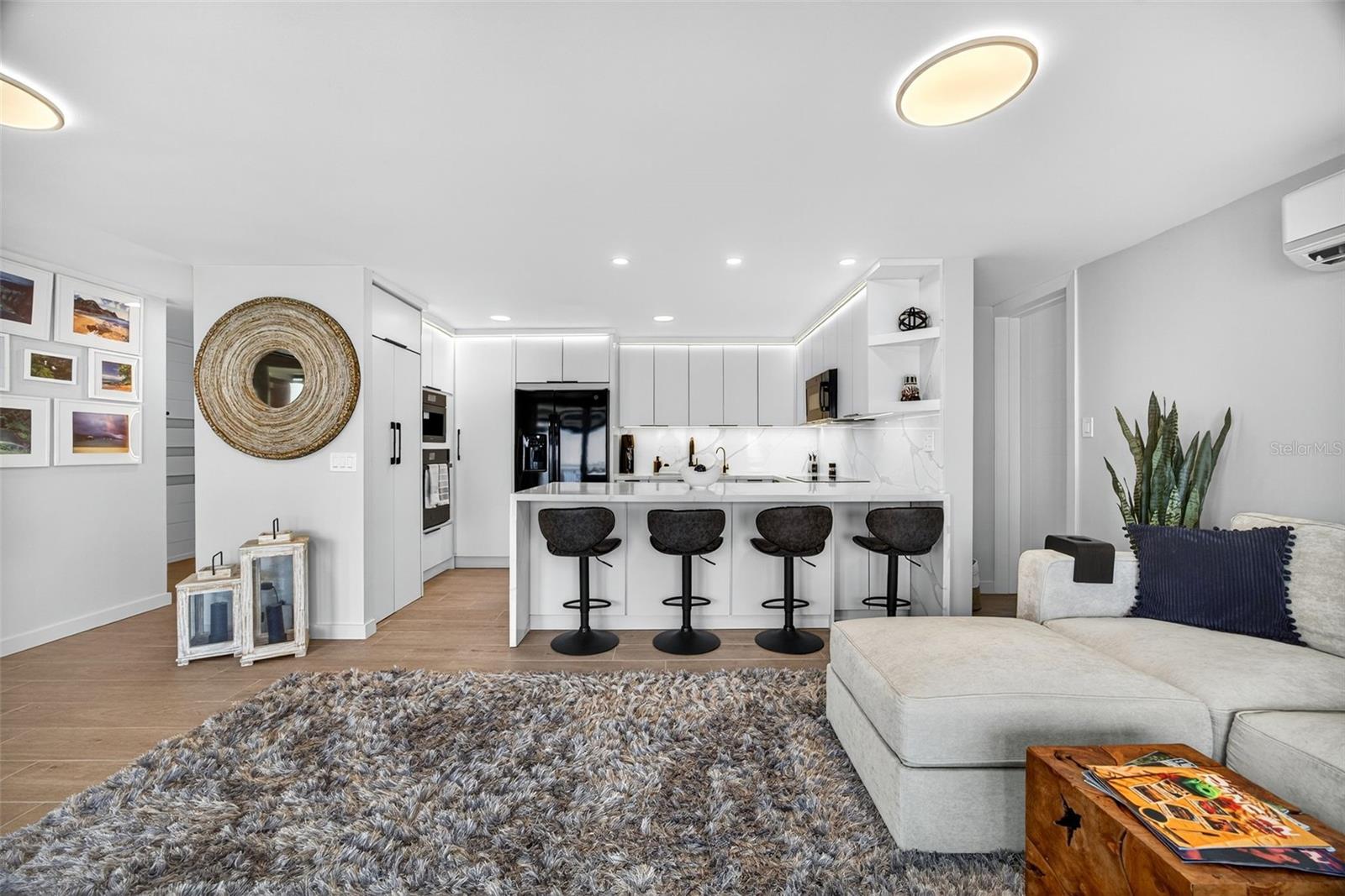 Experience elevated coastal living in this fully remodeled penthouse in Macor By The Sea community of Rincón. This 2-bedroom, 2-bath residence has been transformed with custom craftsmanship and high-end integrated finishes, offering a seamless turn-key luxury home.The open-concept kitchen showcases custom cabinetry, built-in oven, built-in stovetop, built-in microwave, built-in dishwasher, and custom quartz countertops. Enjoy premium conveniences such as a built-in Miele coffee maker, whole-house water purification system, and reverse osmosis drinking station. A built-in washer/dryer adds functionality while maintaining a sleek design. Refined upgrades continue with custom lighting, remote-controlled blinds, remote-controlled balcony awnings, all-new windows and doors, and a custom LED ambient fireplace that elevates the living space. From the privacy of your balcony, take in breathtaking Desecheo Island views and dreamlike sunsets, creating an unparalleled coastal backdrop. The guest bedroom includes a custom built-in Murphy bed, allowing the room to double as an office. Three Samsung energy-efficient mini splits ensure comfort throughout, while the in-unit sauna adds a spa-like touch to everyday living.The property includes two parking spaces—one covered, plus the convenience and peace of mind of back-up generator power and a water reserve system. Macor By The Sea offers direct beach access, pristine landscaping, and top-tier amenities including a pool, gym, game room, gathering room, and a communal grill and entertainment area, ideal for hosting and enjoying the coastal lifestyle.This penthouse is move-in ready, masterfully upgraded, and designed for those who value luxury, function, and the prestige of one of Rincón’s most desirable communities. Schedule your private showing today.