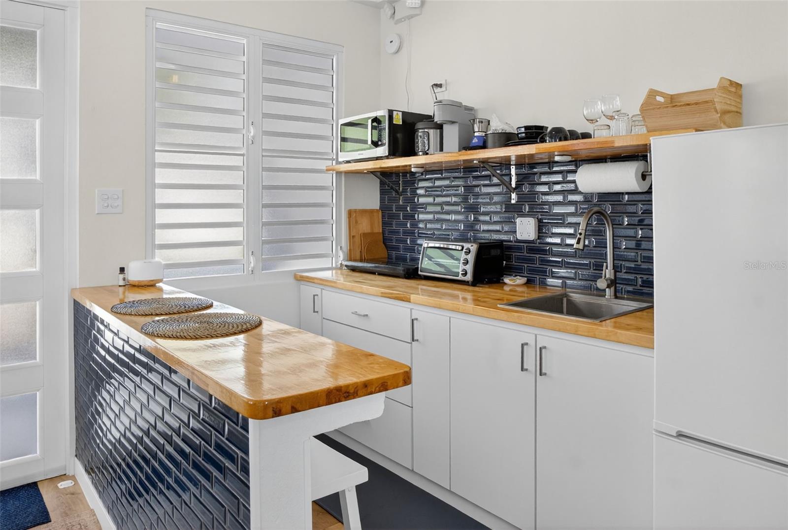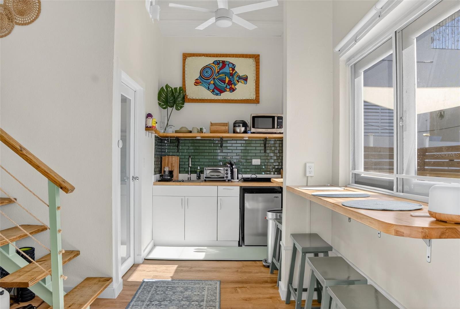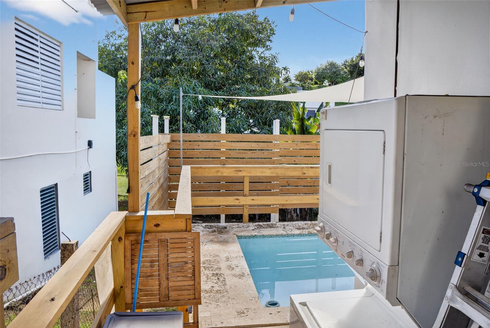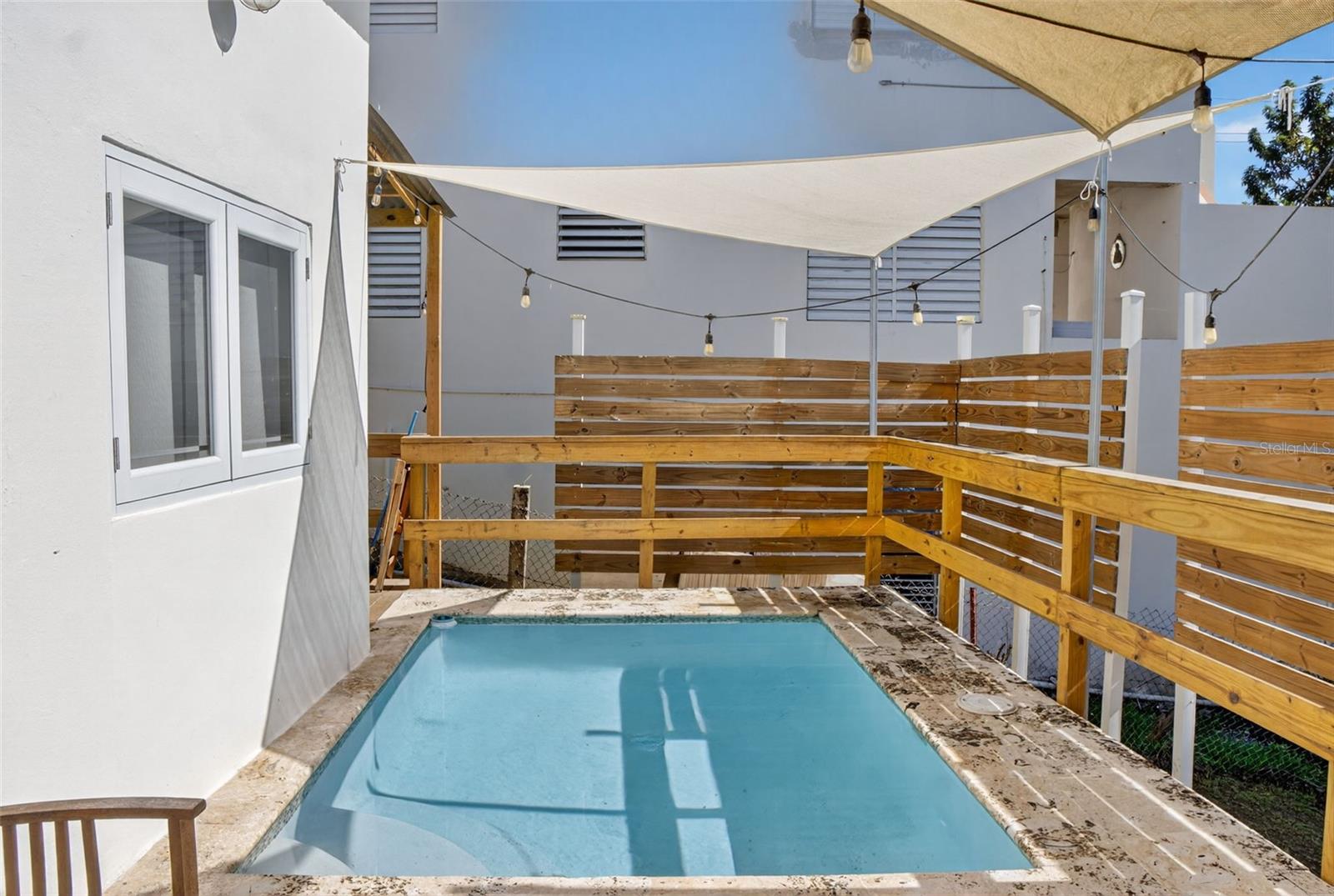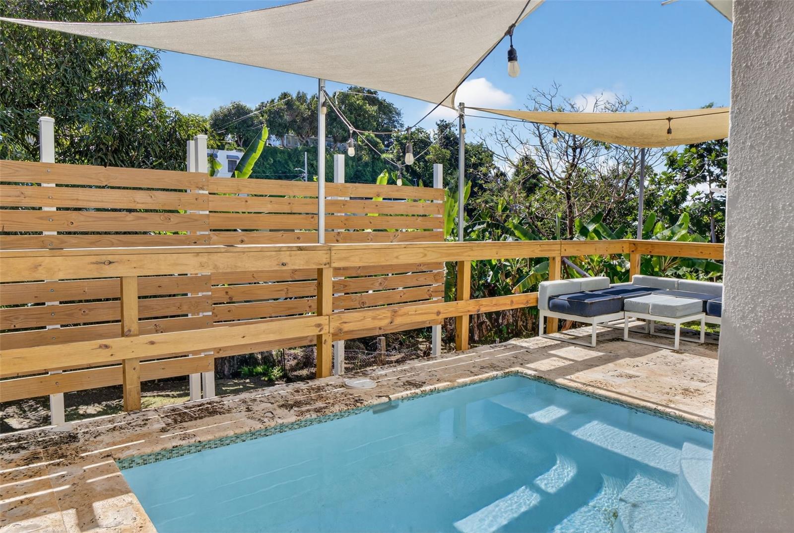 Imagine a charming two-story vacation getaway located just 200 meters from the vibrant town center of Rincon and 700 meters to the beach. The property features a cozy front porch, perfect for relaxing on sunny afternoons. Upstairs you have an open layout with the living room and kitchen combined plus 1 bathroom and 1 bedroom. Head outside and take the exterior stairs down to a beautiful oasis complete with an in ground pool. Just off the pool is the larger of the two units. As you walk in you are greeted with the breakfast nook over looking the pool and built in desk on your left. Straight ahead you'll find the compact, fully functional kitchen and the bathroom to the left. If you head up the half stairs you'll find the loft style living room and private bedroom to the right. This turnkey property includes a solar hot water heater, a cistern for back up water and parking for 2 cars. This is the perfect investment property for any beach lover that is looking for rental income and a place that is close to everything!