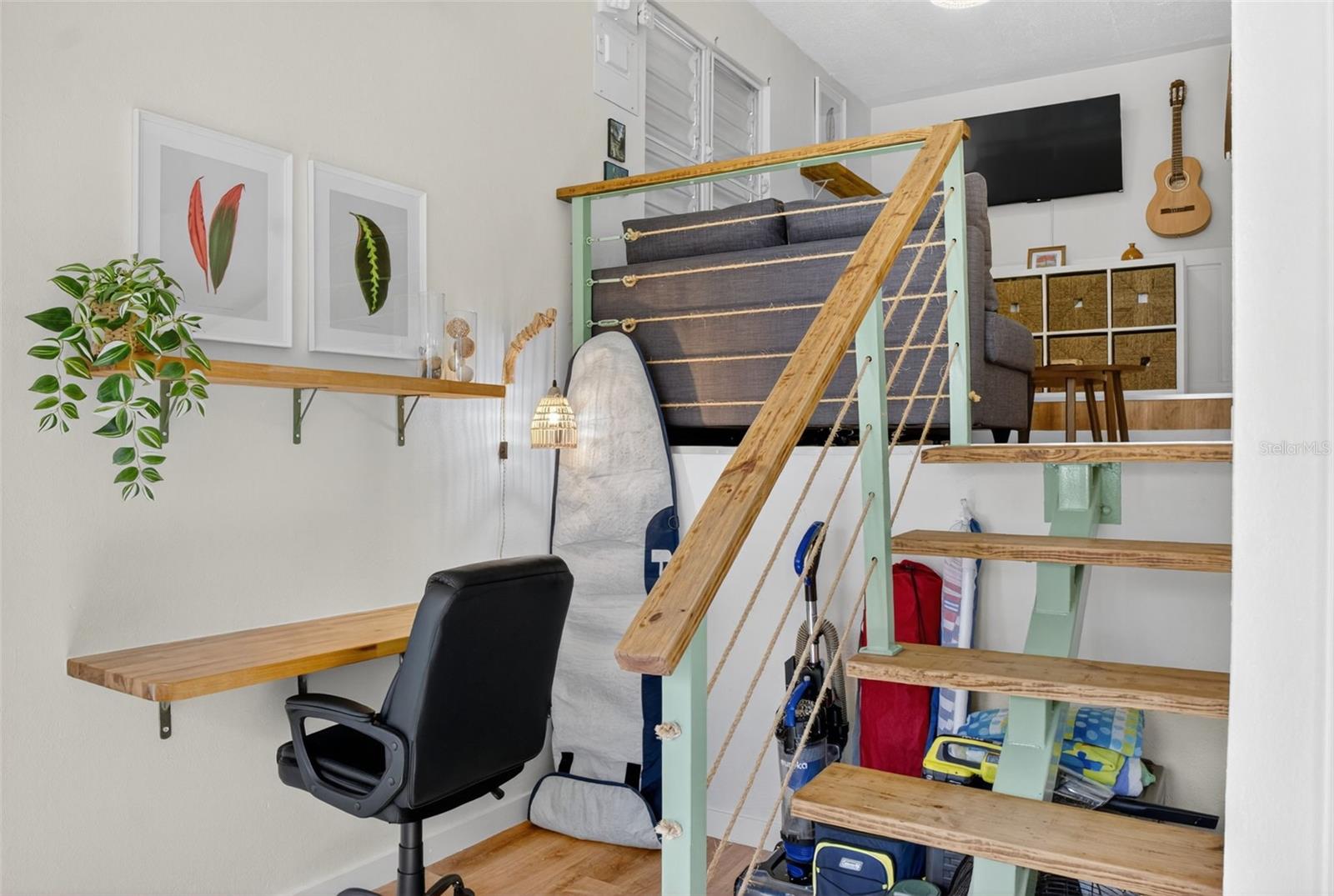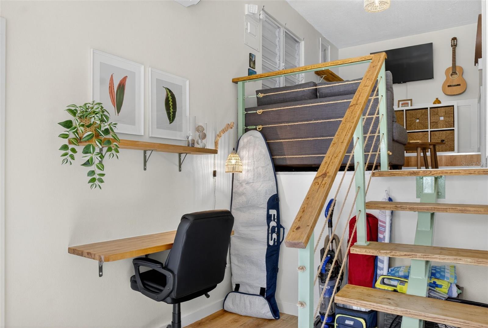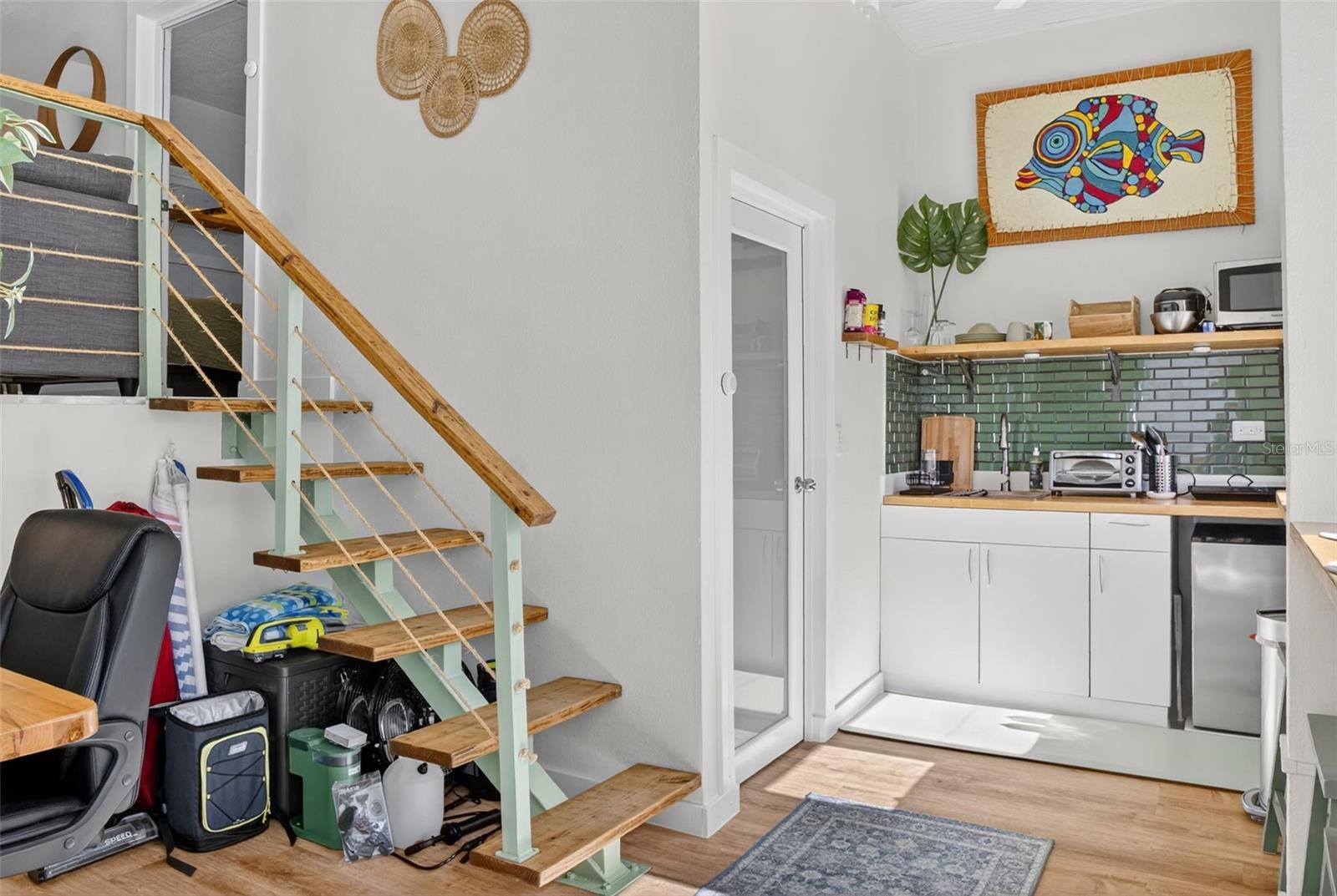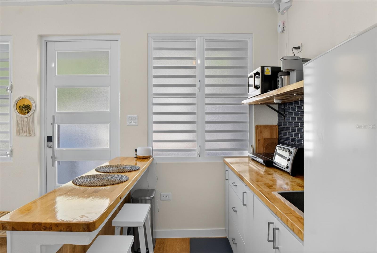 Imagine a charming two-story vacation getaway located just 200 meters from the vibrant town center of Rincon and 700 meters to the beach. The property features a cozy front porch, perfect for relaxing on sunny afternoons. Upstairs you have an open layout with the living room and kitchen combined plus 1 bathroom and 1 bedroom. Head outside and take the exterior stairs down to a beautiful oasis complete with an in ground pool. Just off the pool is the larger of the two units. As you walk in you are greeted with the breakfast nook over looking the pool and built in desk on your left. Straight ahead you'll find the compact, fully functional kitchen and the bathroom to the left. If you head up the half stairs you'll find the loft style living room and private bedroom to the right. This turnkey property includes a solar hot water heater, a cistern for back up water and parking for 2 cars. This is the perfect investment property for any beach lover that is looking for rental income and a place that is close to everything!