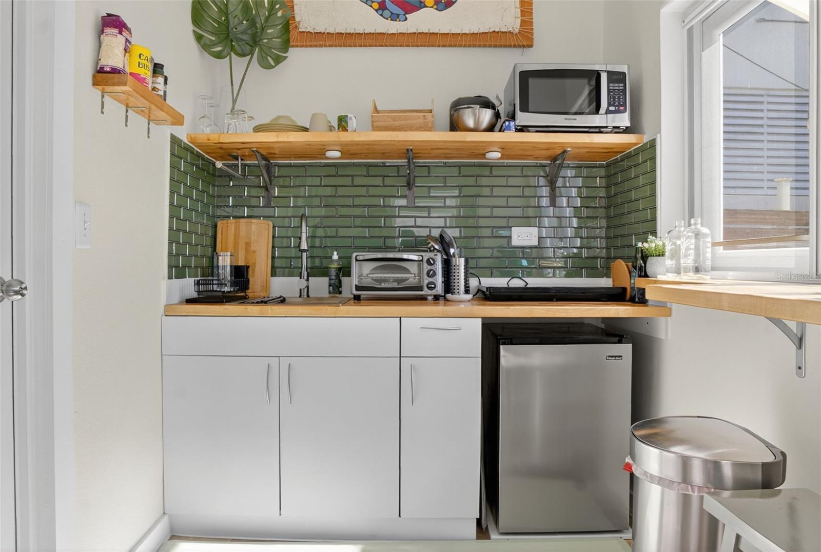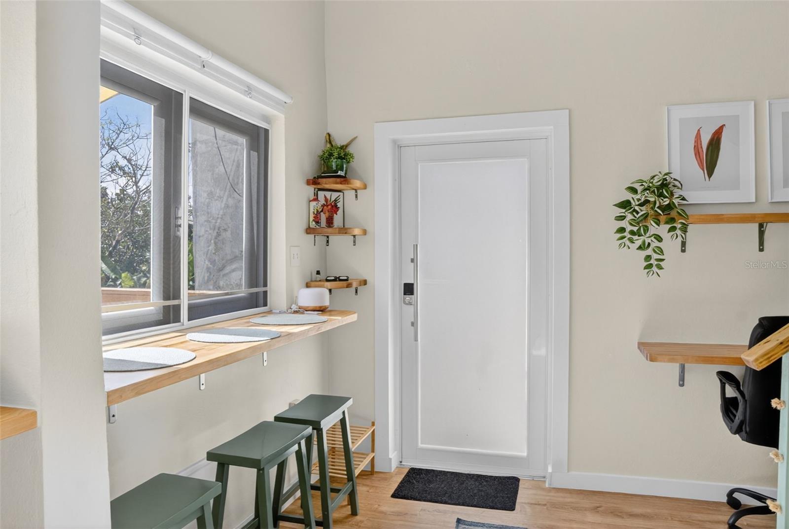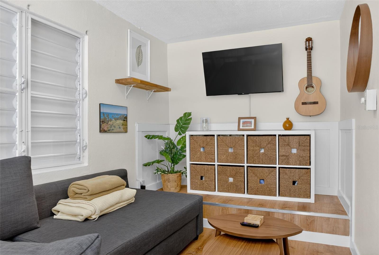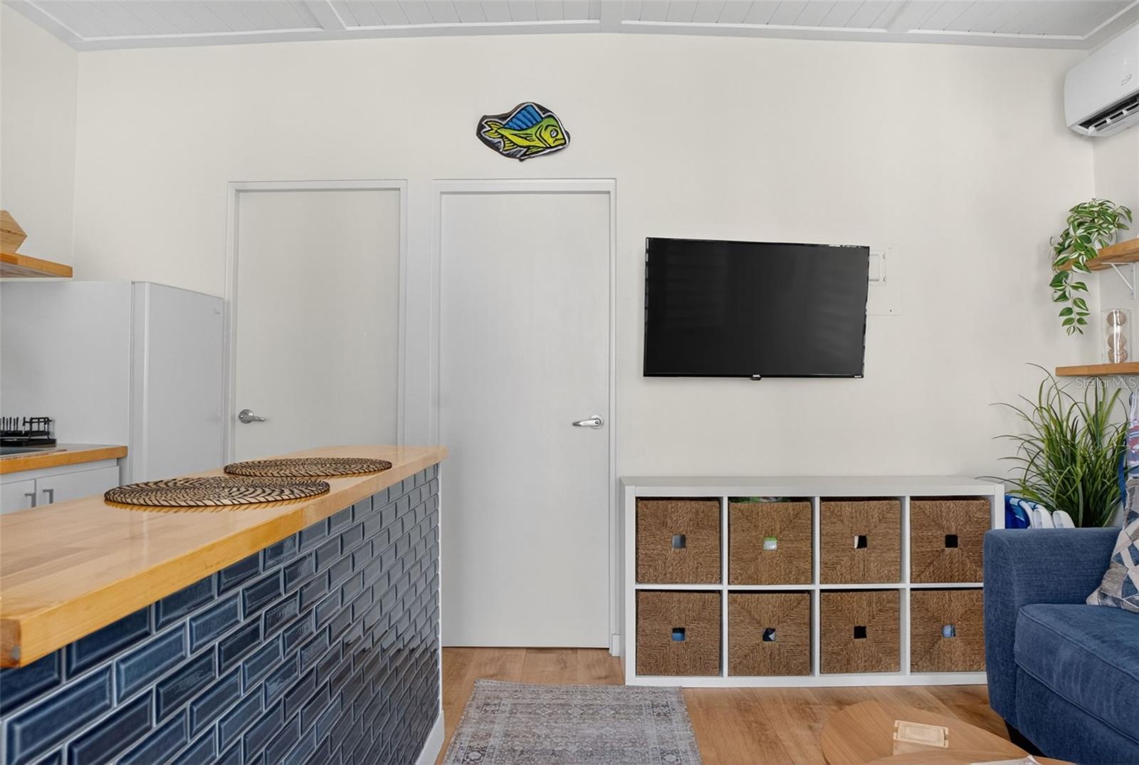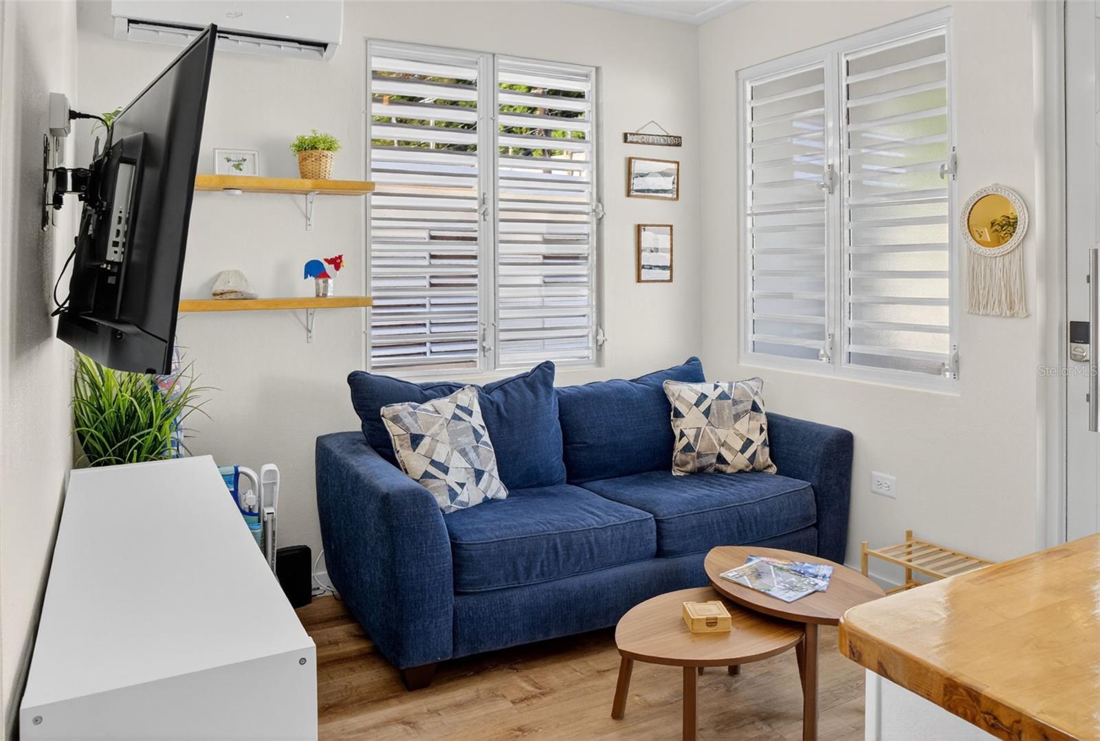 Imagine a charming two-story vacation getaway located just 200 meters from the vibrant town center of Rincon and 700 meters to the beach. The property features a cozy front porch, perfect for relaxing on sunny afternoons. Upstairs you have an open layout with the living room and kitchen combined plus 1 bathroom and 1 bedroom. Head outside and take the exterior stairs down to a beautiful oasis complete with an in ground pool. Just off the pool is the larger of the two units. As you walk in you are greeted with the breakfast nook over looking the pool and built in desk on your left. Straight ahead you'll find the compact, fully functional kitchen and the bathroom to the left. If you head up the half stairs you'll find the loft style living room and private bedroom to the right. This turnkey property includes a solar hot water heater, a cistern for back up water and parking for 2 cars. This is the perfect investment property for any beach lover that is looking for rental income and a place that is close to everything!