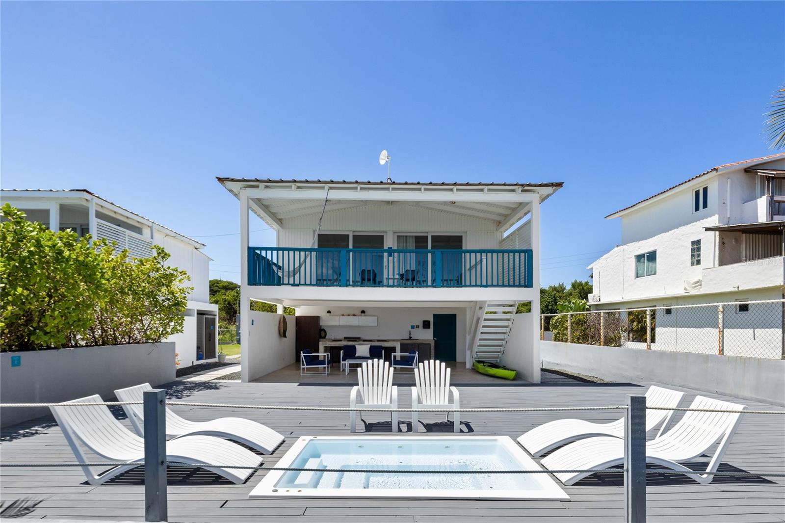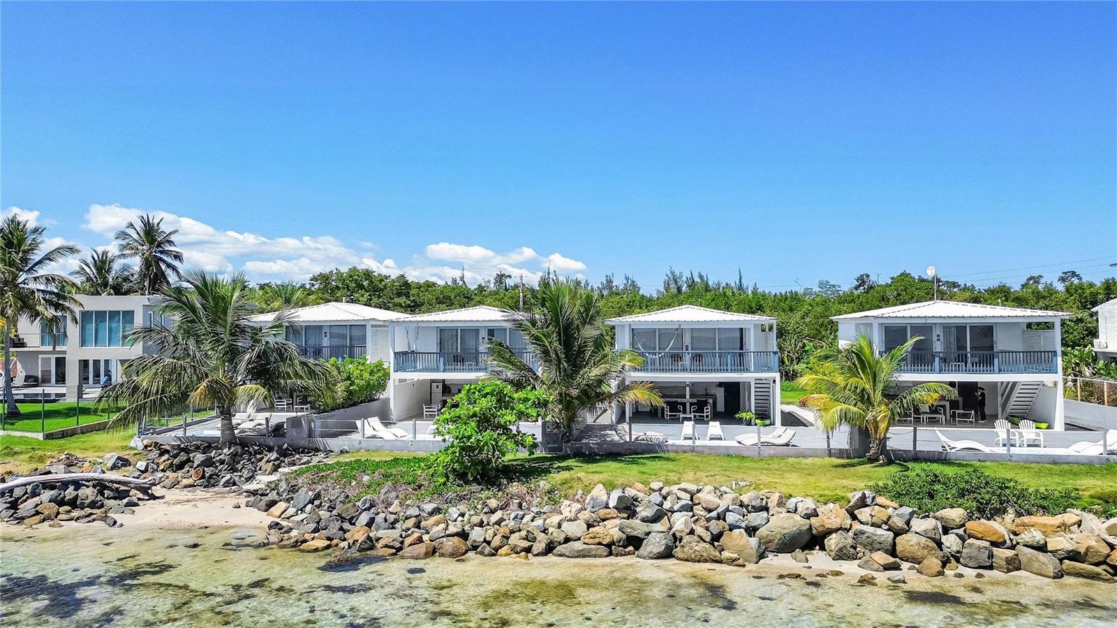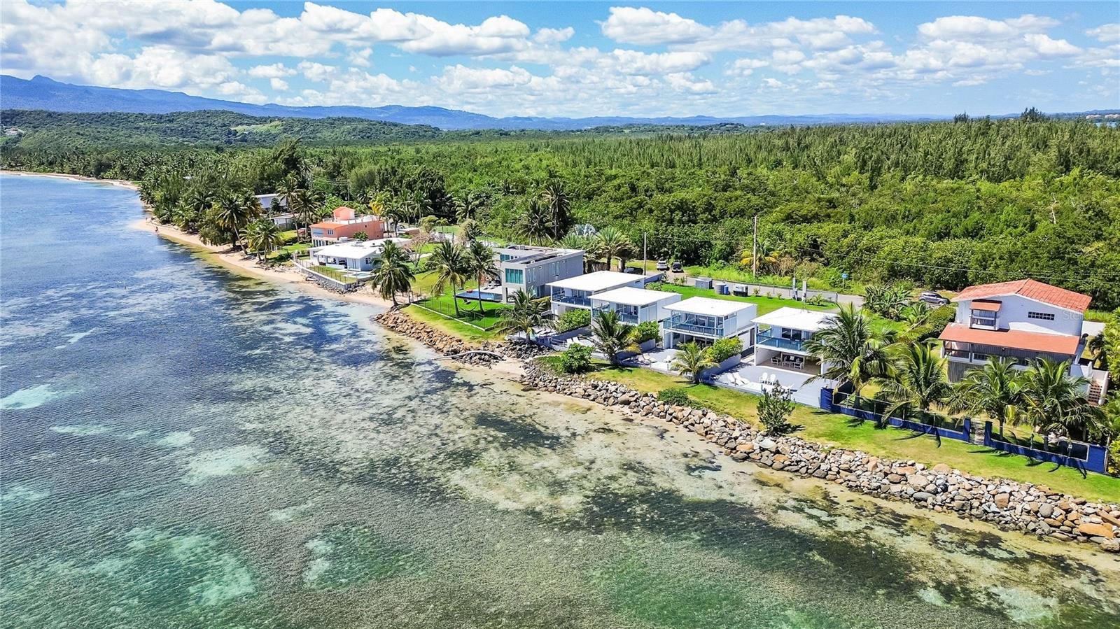 Located in Las Picúas, Río Grande, this stunning beachfront estate is a true tropical paradise, offering four separate villas within a gated complex, each with direct beach access. Spanning 6,300 sq. ft. approximately and 2,066 sq meters, the property features a total of 9 bedrooms, 6 full bathrooms, and 6 half bathrooms. The largest, Villa Marcela, boasts 1,800 sq ft aprox., three bedrooms and three and a half bathrooms, with a first floor featuring one bedroom with a full bathroom, a half bath, a fully equipped kitchen, a terrace with a jacuzzi, and a BBQ, while the second floor includes two additional bedrooms, each with its own full bathroom, and a private deck with breathtaking ocean views. Villa Lorena, Villa Manuela, and Villa Renata each boast 1,500 sq ft aprox. and have two bedrooms and three bathrooms (one full, two half), with a first floor featuring a full bathroom, kitchen, terrace with a jacuzzi and BBQ, and a second floor with two bedrooms, each with a half bathroom, plus a deck overlooking the beach. Additional amenities include a generator, private parking, washer and dryer for housekeeping, and all villas come fully furnished with modern décor. Currently generating income. Whether as a luxury residence, vacation rental, or boutique hospitality investment, this exclusive beachfront retreat offers the perfect blend of comfort, style, and income potential in one of Puerto Rico’s most desirable coastal locations.