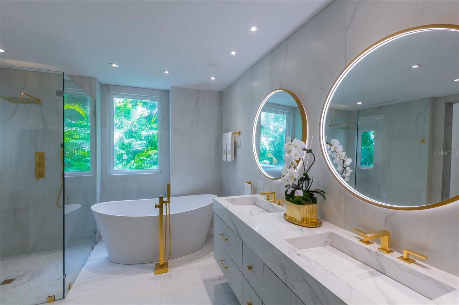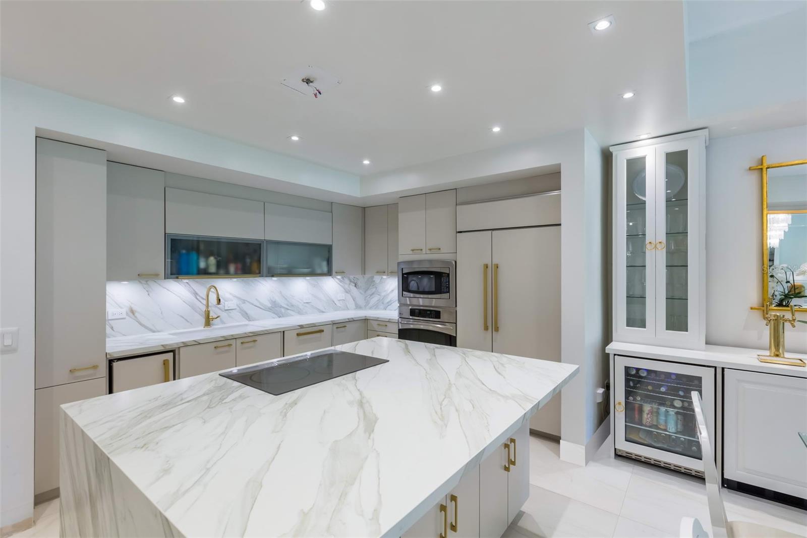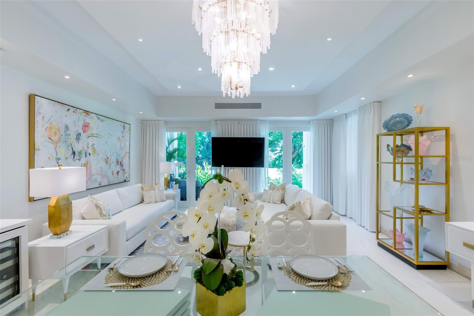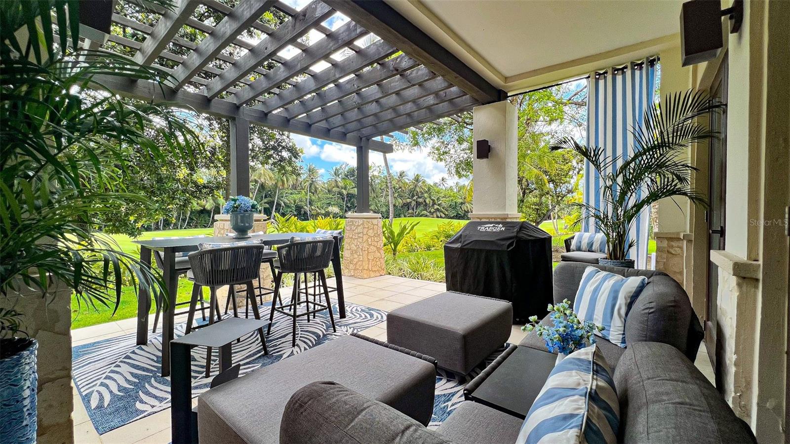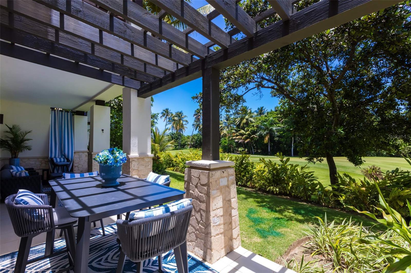 Make yourself at home in this charming garden-style condominium while enjoying stunning views of golf and forestland from the privacy of your home. This one-of-a-kind, first floor corner unit features three bedrooms & three baths. The unit has been renovated in its entirety with upgrades spanning every square inch of the dwelling. Each room features new, updated lighting, a bright interior of white furnishings, and elegant window treatments. Key among the improvements is brand new flooring throughout, featuring large, 36''x36'' porcelain tiles. The kitchen showcases custom made cabinetry, and brand new appliances include a refined refrigerator, ice maker, and dishwasher. Beautiful, new Calacatta Gold countertops with matching backsplash, and an extended waterfall island exhibit a new induction cooktop, remote controlled vent hood, and extra storage cabinetry. This unit is a dream come true for anyone that appreciates entertaining, with a specialized beverage center exhibiting 2 bespoke kegerators with golden beer taps, 2 new wine coolers, and custom cabinetry to display glassware. Each bathroom has been completely redone with spa-inspired sinks made from italian porcelain, and refined tiling stretching from floor to ceiling. Phylrich and Newport Brass fixtures in shining gold provide a continuity of luxury showcased in every bathroom, including a beautiful freestanding tub in the master bath. The layout has been especially designed and reworked to accommodate the feeling of two master bedrooms, with a new, attached en-suite private bathroom separate from the third guest bedroom. A feeling of relaxing privacy even pervades to the outdoor patio, with stunning views of El Yunque rainforest, a new overhead pergola, and beach club inspired lounge furniture.