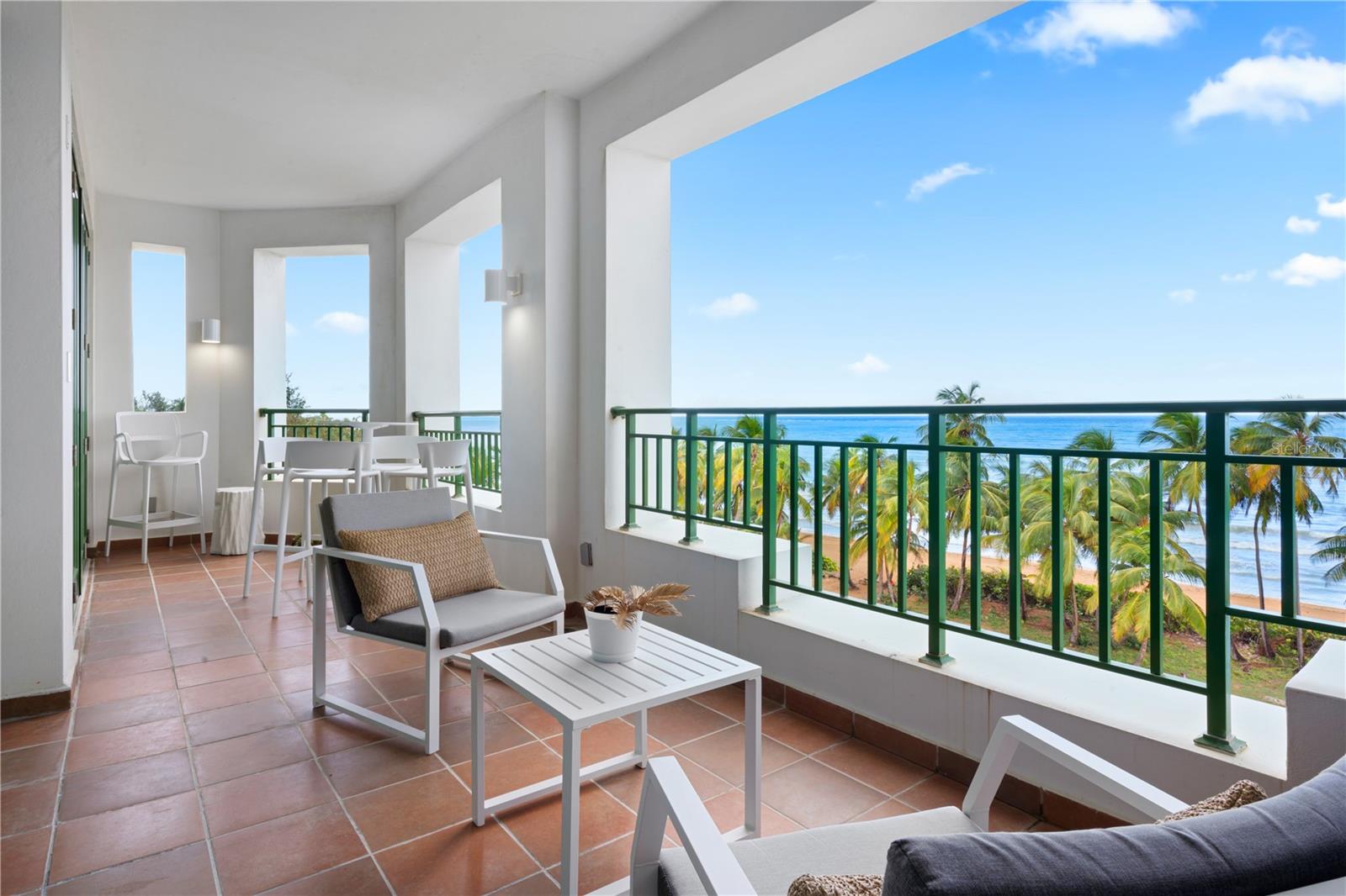 Experience tropical luxury in this beachfront apartment at Ocean Sixteen, located within the Wyndham Grand Rio Mar Puerto Rico Golf and Beach Resort. This 2,401 sq. ft. furnished residence features 3 bedrooms with en-suite bathrooms, ample closets, guest bathroom, spacious kitchen, open terrace, and parking for 2 vehicles. Amenities include an infinity pool, fitness center, activity room with pool table and wine cellar, storage room, full power generator, water cistern, and 24-hour security. The resort offers oceanfront pools, a spa, casino, gym, nine restaurants, shops, over 10 tennis courts, and two championship golf courses. Conveniently located near the airport and San Juan, Rio Grande is also home to El Yunque National Rainforest and Carabali Rainforest Adventure Park