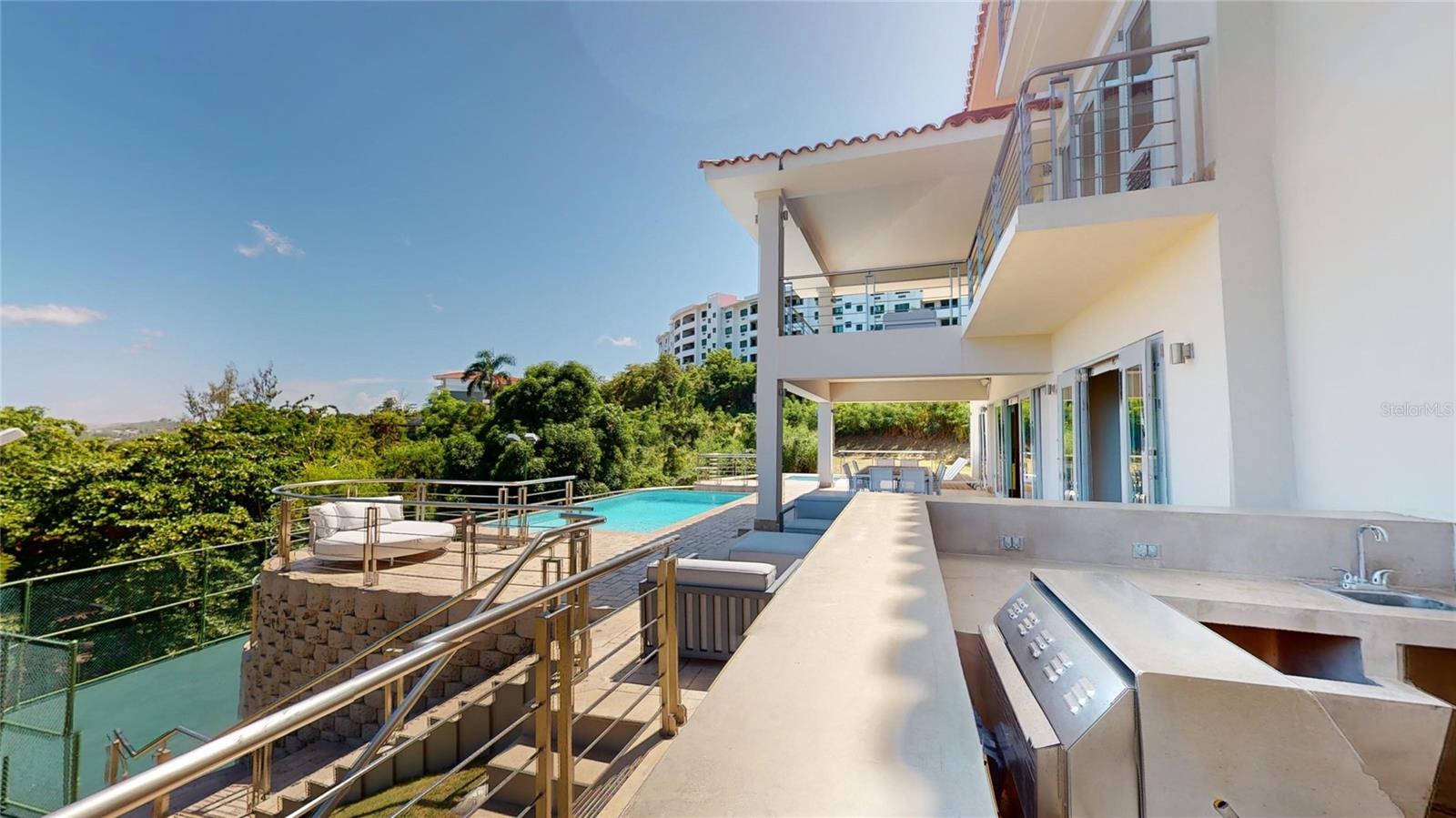 Experience unparalleled luxury and comfort at this breathtaking property. This expansive three-story home features six generously sized bedrooms, offering abundant space for both relaxation and privacy. With four and a half elegantly designed bathrooms, convenience and style await you at every turn. The property includes two fully-equipped kitchens with premium appliances and ample counter space, perfect for crafting culinary delights. Additionally, enjoy two formal living rooms, a family room, two dining rooms, a temperature-controlled wine cellar, and a full power generator along with a water cistern. Outdoors, take in sweeping mountain and coastline views as you play a game on the basketball court or unwind in the infinity pool and jacuzzi. Situated within the Grand Río Mar Resort and Spa, you’ll have access to over eight restaurants, 1.5 kilometers of pristine beach, two 18-hole golf courses, tennis courts, a fitness center, and a beach club. Located in Río Grande, just 40 minutes from Luis Muñoz Marín Airport, you’re perfectly positioned to explore the largest rainforest in the Caribbean, El Yunque, and enjoy all the amenities Río Mar.