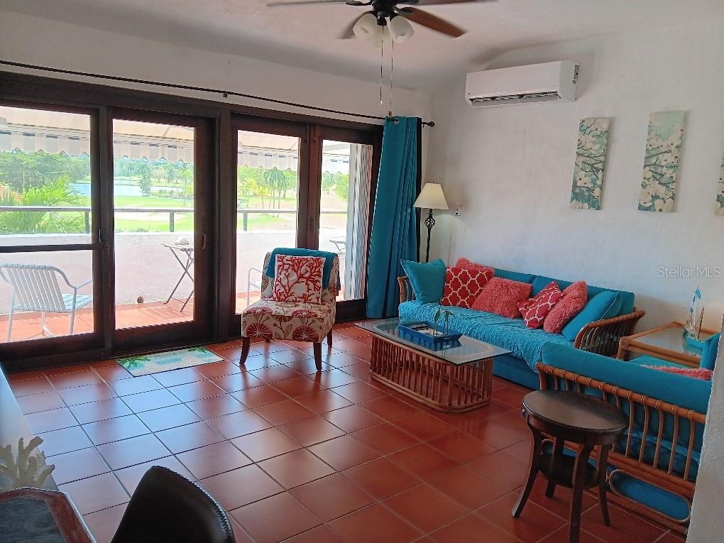 This is great Classic Mediterranean villa, within the premises of the Wyndham Grand Rio Mar Rainforest Beach and Golf Resort, your home away from home or your primary home. Resort lifestyle is unique. Is like being, feeling on vacation all the time. Villas Cluster 2 is a unique Golf course front property. Security is a plus as a gated community. Guard house also at the entrance to Cluster 2 Great restaurants within the premises, at the Wyndham Rio Mar Rainforest Beach and Golf Resort. Resort lifestyle. Two great championship golf courses and 13 tennis courts, great Beach Club, to enjoy as a club member (by membership), or resident. Very spacious, with unique view directly to Hole 9 of the Ocean Golf Course. The unit has 1 bedroom and 1 bathroom, spacious closet space and a laundry room. The villa has easy access to the pool and the lovely beach. Rio Mar also provides a lively beach club for owners and residents with a big pool and jacuzzi. Steps to one of the cleanest and most uncrowded beaches on the North Shore. Convenient parking space for cars and golf carts. The Club Membership at Wyndham gives great amenities including food and beverages discounts and access to hotel pools. Great Dining options abound. The resort offers a variety of restaurants. Further afield there are more restaurants on Highway 3 and in Palmer, with food kiosks at Luquillo – horse back riding in less 5 minutes at Carabali. The major outlet shopping mall, "The Outlet 66 Mall' at Canovanas,PR in less 10-15 minutes driving.
