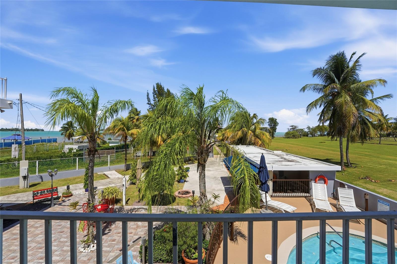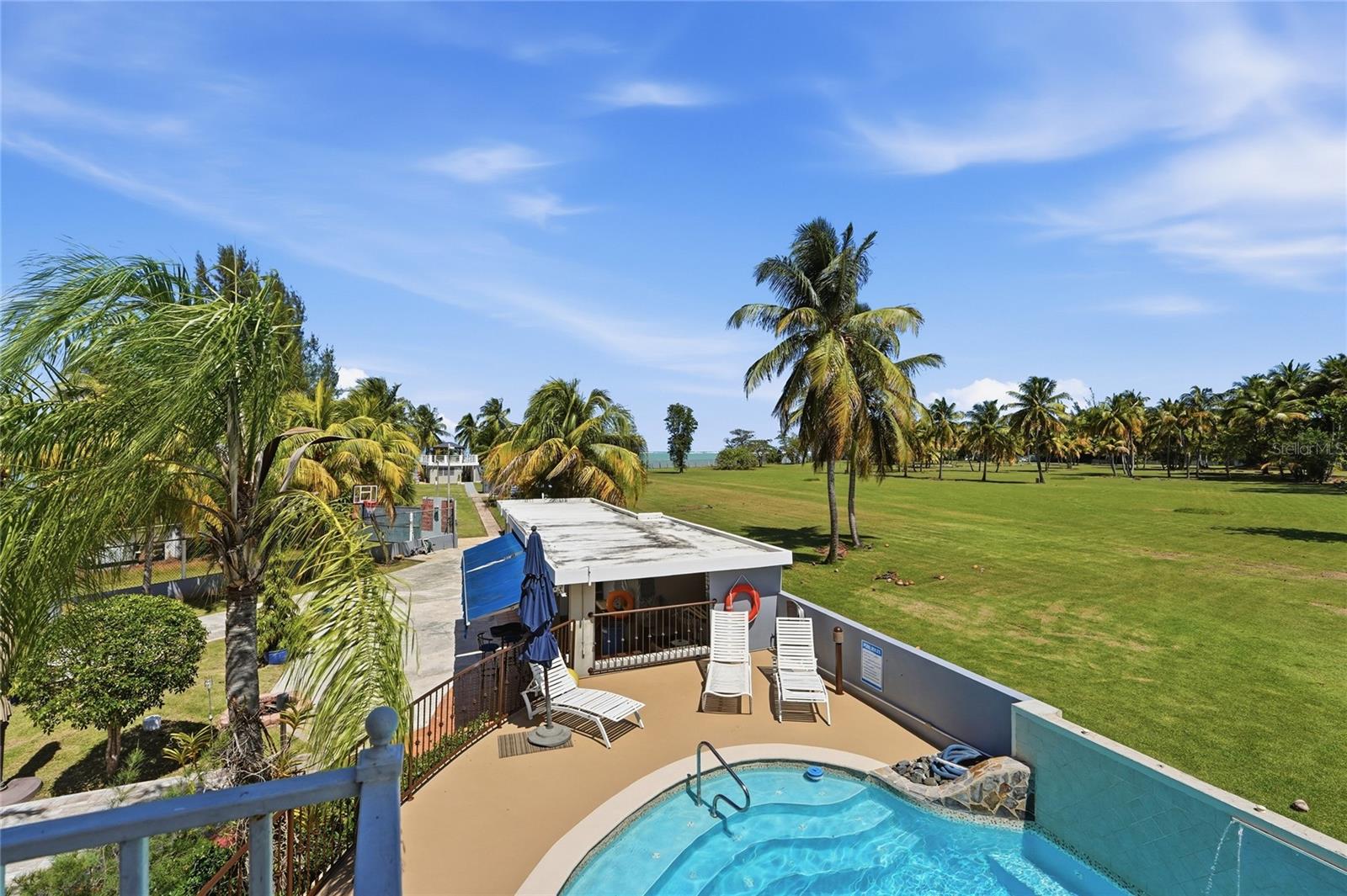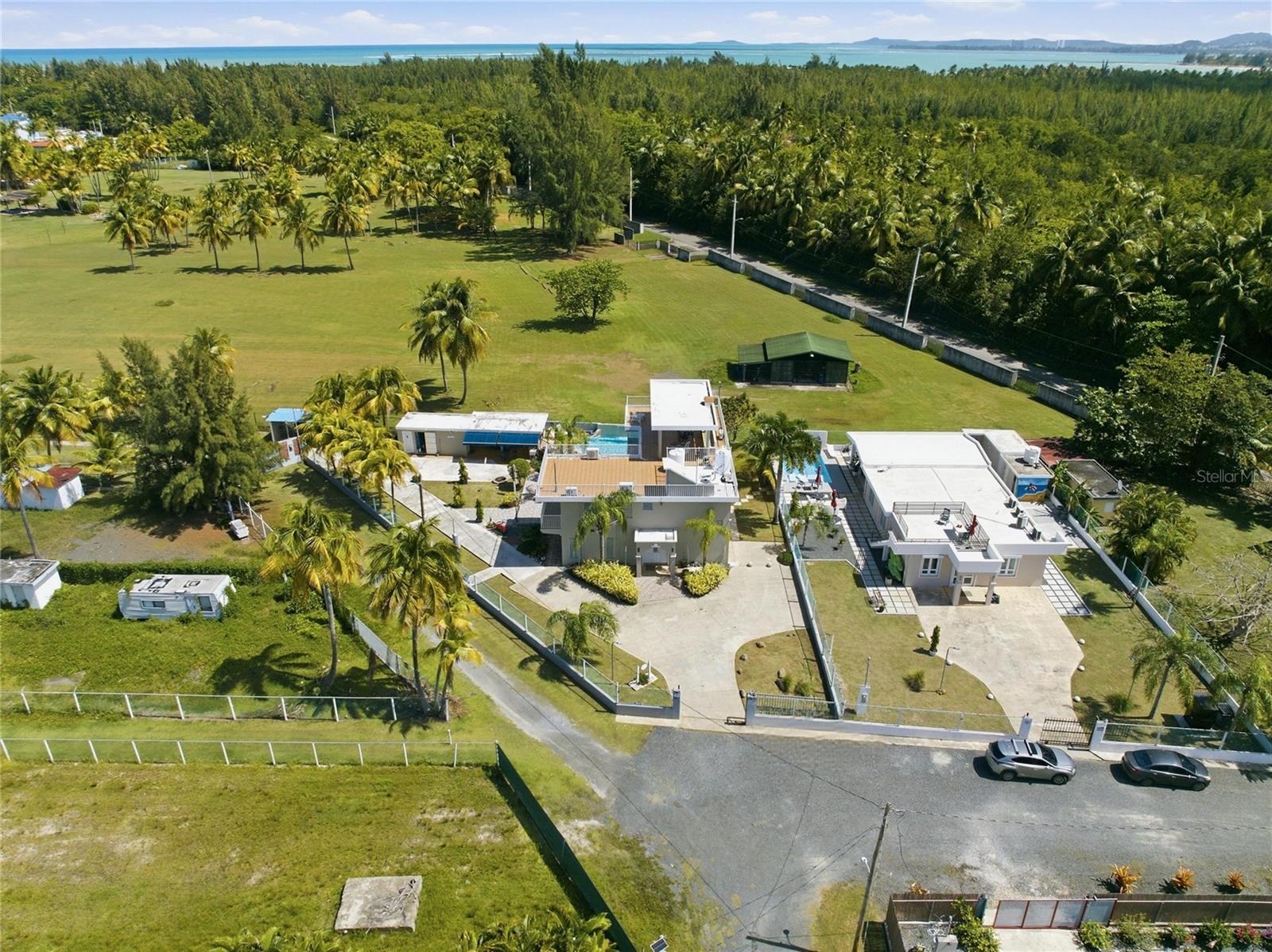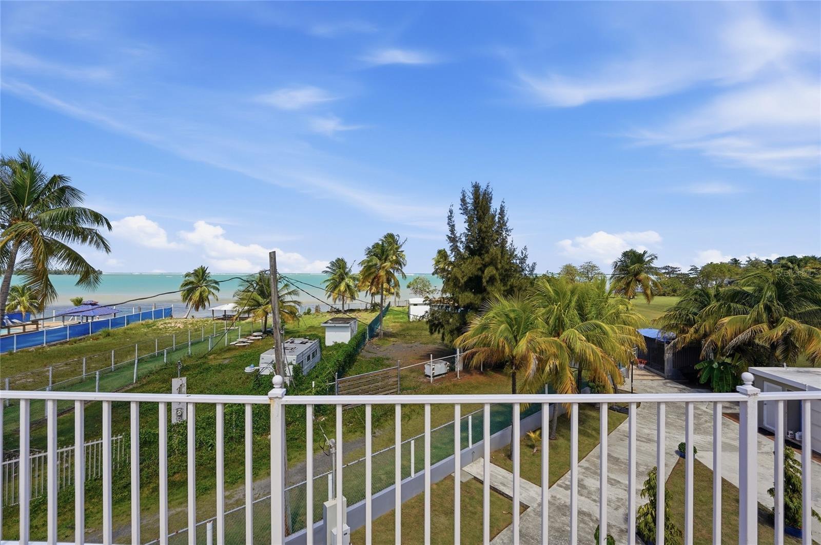 PALMA SOLA, Las Picuas, Rio Grande, Puerto Rico 5 Bedrooms · Ocean Front · Pool Discover your Caribbean oasis in the quiet Las Picuas neighborhood, just five minutes from Rio Mar resort. Perfect for beach lovers, this oceanfront property is ideal for snorkeling, paddleboarding, fishing, and sailing. This solid, three-story concrete home features French doors, storm windows, roll-down security doors, a pool, patio with bar, and generator. The main house has five bedrooms and three bathrooms. The master suite has an ensuite bath, while the spacious kitchen/living area and media room provide comfort. The roof deck is built for entertaining, complete with a shaded area and bar. An oceanfront casita with a roof deck offers breathtaking Caribbean views. The gated property features a utility building with bathrooms, storage, and lush tropical landscaping.