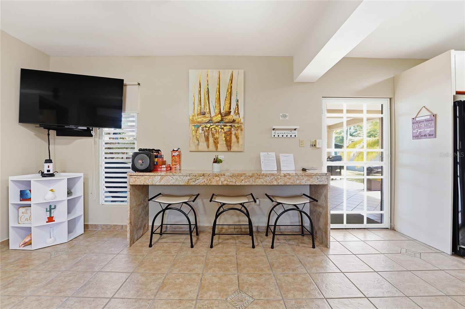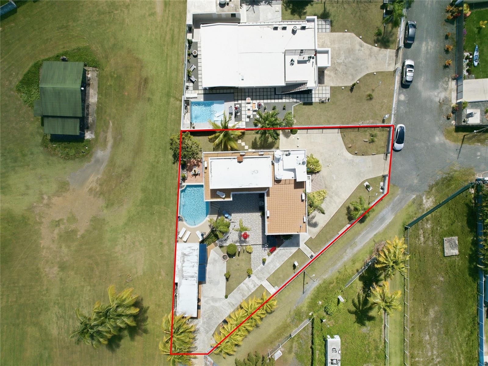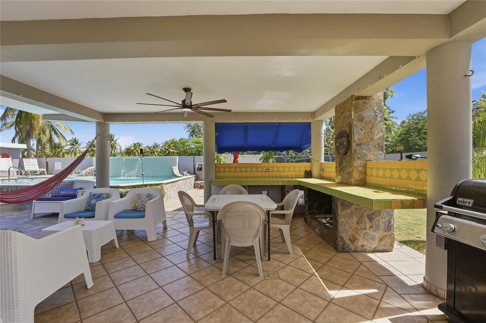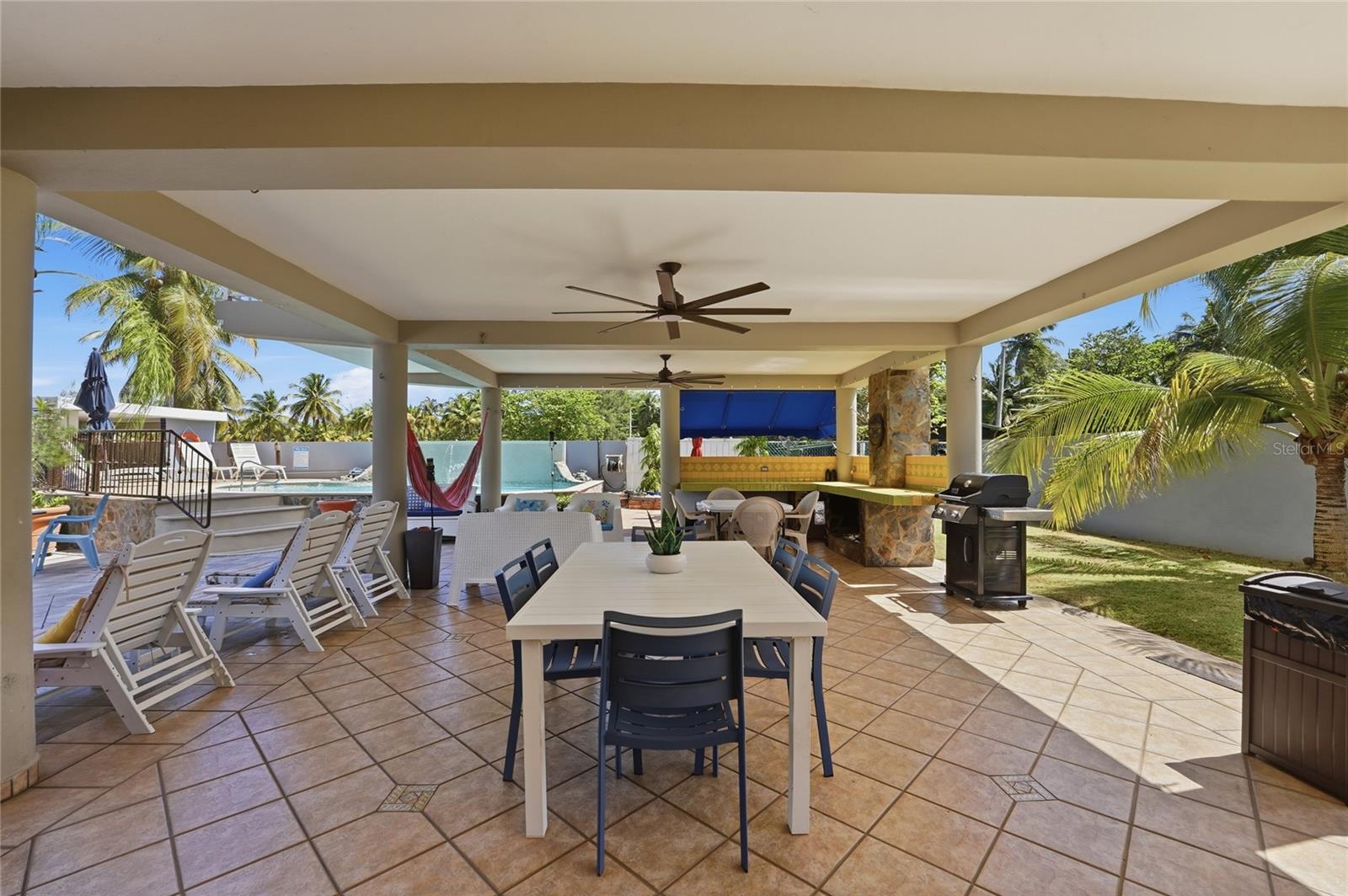PALMA SOLA, Las Picuas, Rio Grande, Puerto Rico 5 Bedrooms · Ocean Front · Pool Discover your Caribbean oasis in the quiet Las Picuas neighborhood, just five minutes from Rio Mar resort. Perfect for beach lovers, this oceanfront property is ideal for snorkeling, paddleboarding, fishing, and sailing. This solid, three-story concrete home features French doors, storm windows, roll-down security doors, a pool, patio with bar, and generator. The main house has five bedrooms and three bathrooms. The master suite has an ensuite bath, while the spacious kitchen/living area and media room provide comfort. The roof deck is built for entertaining, complete with a shaded area and bar. An oceanfront casita with a roof deck offers breathtaking Caribbean views. The gated property features a utility building with bathrooms, storage, and lush tropical landscaping.