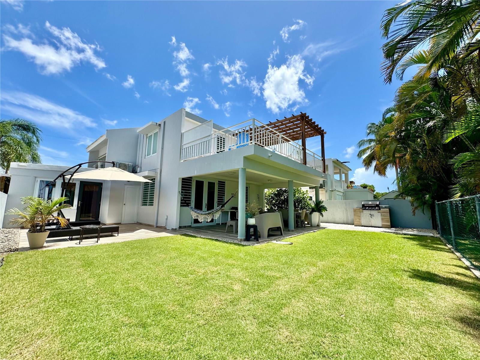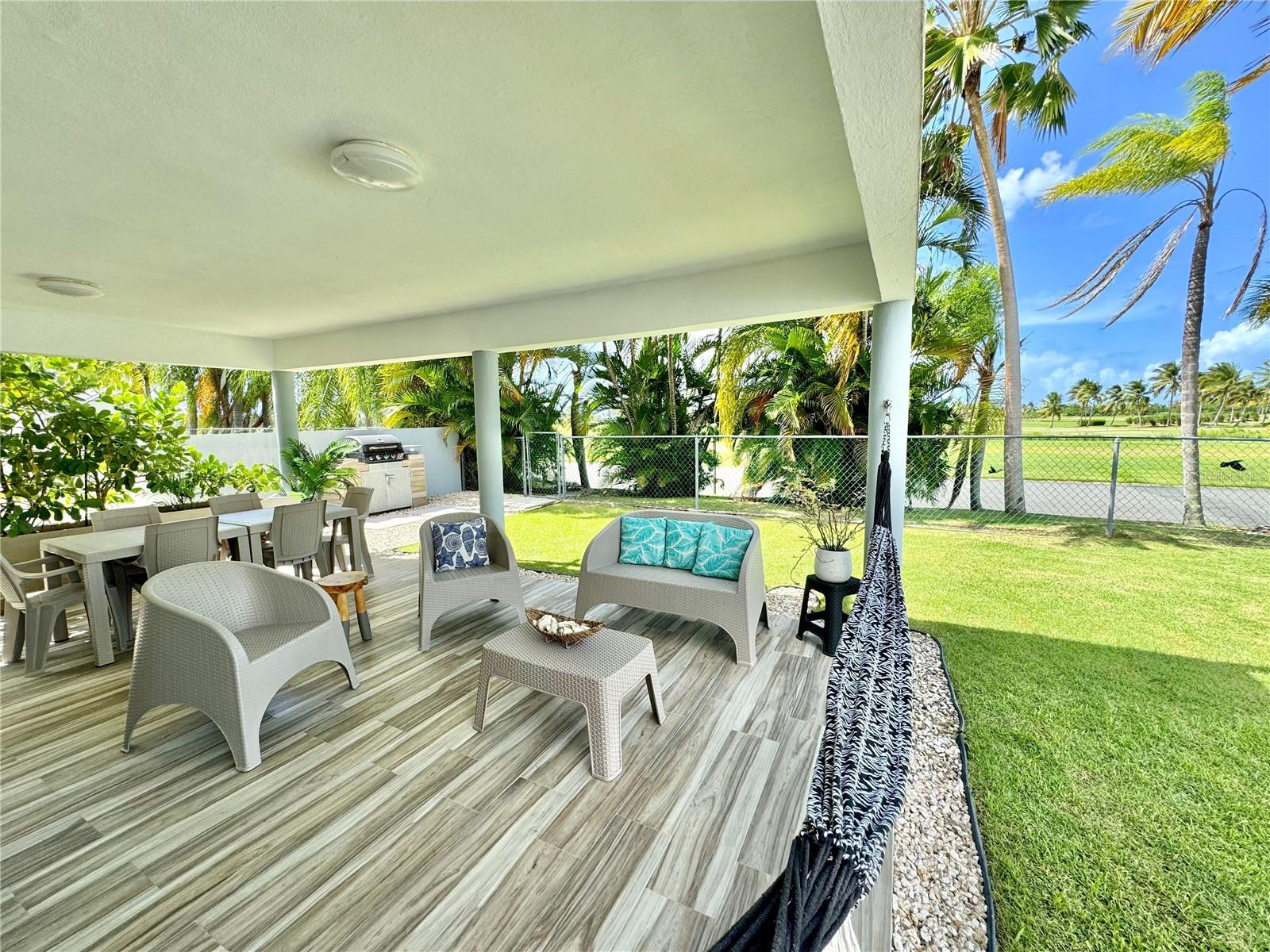 Welcome to a truly exceptional coastal retreat, nestled within the prestigious Hyatt Regency Grand Reserve Resort and Golf, just steps from the pristine shores of Coco Beach. Located on a picturesque peninsula extending into the Atlantic Ocean, this home offers unparalleled living within over 1,000 acres of lush tropical grounds, at the foothills of the iconic El Yunque National Rainforest. This charming residence spans approximately 3,000 sq.ft. and boasts 4 spacious bedrooms and 3 elegantly appointed bathrooms. The heart of the home is the outdoor space it provides to fully enjoy outdoor living in its spectacular tropical surroundings, an ideal setting for both intimate gatherings and entertaining on a grand scale. The inviting terraces, facing east to capture the refreshing ocean breeze—a perfect spot to relax or host guests. The surrounding garden provides ample space for a pool, enhancing your outdoor living experience. With one bedroom and full bath, kitchen, living/dining room conveniently located on the lower level, all with access to terraces and garden, this home ensures comfort, privacy and entertainment. Upstairs, along with a spacious master bedroom are two additional bedrooms with access to a large open terrace where you can relax and take in panoramic vistas of the pristine coastline and championship golf course, home to the PR Open PGA tournament. Interior finishes are equally impressive, with elegant coraline stone flooring throughout, offering both beauty and durability. As part of a secure, gated community, residents enjoy exceptional amenities including 24/7 security, two pools, tennis and basketball courts, a clubhouse, and a children’s playground. A short drive from the property brings you to San Juan, the Canovanas Outlets, El Yunque National Rainforest, major marinas, fine dining, casinos, and a wealth of tourist attractions. With a low monthly HOA fee of just $80, this rare find provides the perfect balance of resort-style living and serene mountain and ocean ambiance. For Sale by Owner. Contact us today to schedule a private showing and experience this unique coastal living opportunity.