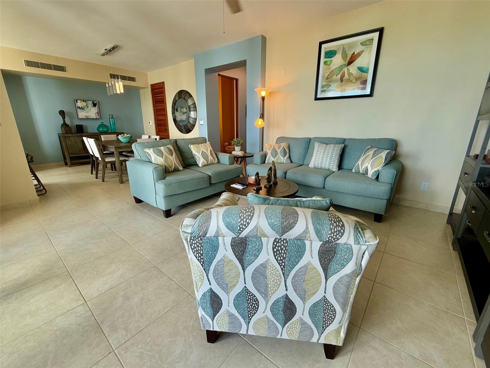 This beach front villa boasts breathtaking views! With two bedrooms and two and a half bathrooms, kitchen, laundry room, 2 parking spaces (one covered, one open) it's move in ready. The sales include furniture and appliances. Nestled in the Wyndham Rio Mar Beach Resort, this beautiful property offers access to the beach, golf course, and tennis courts.