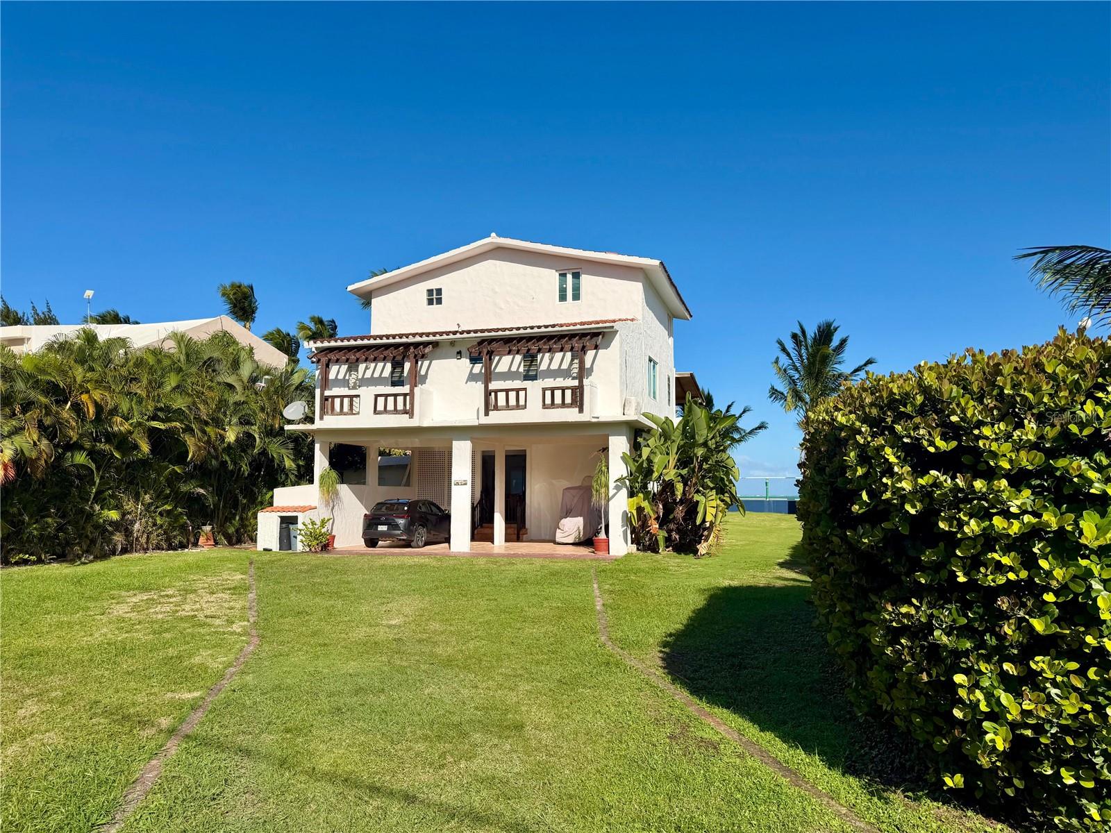 Nestled within the exclusive Río Espíritu Santo Preserve, this spectacular Swiss chalet–inspired beach residence offers the perfect blend of tropical elegance, privacy, and breathtaking natural beauty. Located just a short stroll from the secluded shores of Las Picuas Beach, the home enjoys sweeping views of the Atlantic Ocean, Puerto Rico’s eastern coastline, and the majestic mountains of El Yunque National Forest. Set on a generous 975 square meter lot, the property immediately captivates with its expansive manicured front lawn, framed by mature palms and lush tropical landscaping that enhance both privacy and curb appeal. The elevated design, covered terraces, and distinctive dark wood balcony accents reflect its charming chalet character while maximizing ocean breezes and panoramic vistas. With approximately 2,800 square feet of construction across three levels, the residence was thoughtfully designed with flexibility and future expansion in mind. First Level: An inviting living area with half bath and kitchenette opens to a covered outdoor terrace — ideal for entertaining, relaxing in the shade, or creating a separate guest suite. The elevated structure also provides architectural presence and functionality. Second Level: The heart of the home features an open-concept family room, dining area, and kitchen seamlessly connected to a spacious ocean-facing terrace. This level also includes two bedrooms with private balconies that share a full bathroom, allowing guests to enjoy both comfort and views. Third Level: A loft-style primary suite crowns the residence, offering enhanced privacy, its own balcony with stunning ocean and rainforest views, and an en-suite bath. The home was originally built with the vision to expand and can be easily converted into a 5-bedroom, 4-bath residence, presenting excellent potential for a luxury vacation rental or multigenerational living. Ideally situated just minutes from Wyndham Grand Rio Mar Golf & Beach Resort, owners have the opportunity to become resort members and enjoy world-class amenities including championship golf courses, tennis and pickleball courts, beach club access, fine dining, bars, and casino entertainment. The location also offers close proximity to marinas, outlet shopping, stunning beaches, and outdoor adventures, all within approximately 45 minutes drive of Luis Muñoz Marín International Airport. This is a rare opportunity to own a distinctive ocean-view residence in one of Puerto Rico’s most naturally preserved and desirable coastal communities — ideal as a primary home, vacation retreat, or high-income investment property. Please call now for a private appointment!