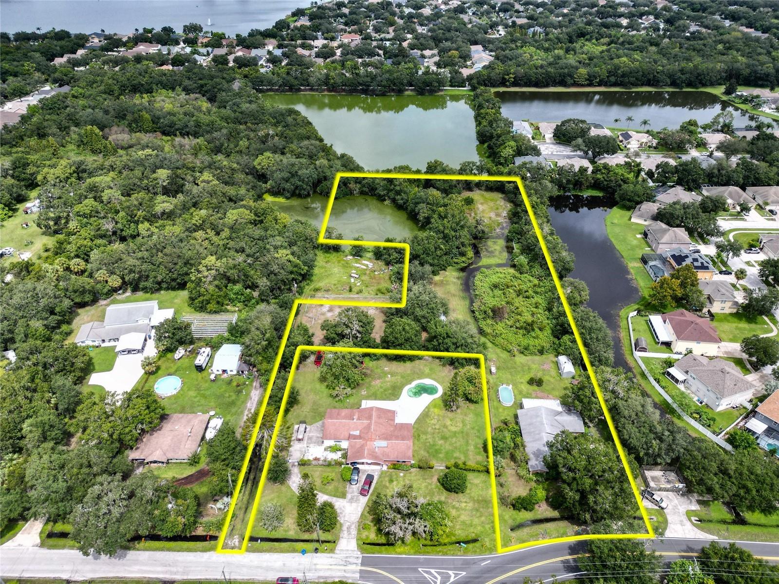 MOTIVATED SELLER! NO HOA or CDD! Home can be knocked down or remodeled. Welcome to a serene 3.36-acre parcel on Riverview Drive, nestled within a peaceful agricultural zone. This picturesque property features two charming ponds, adding natural beauty and tranquility to the landscape. With ample space for agricultural pursuits or personal retreats, this land offers a unique opportunity to create your dream setting. Enjoy the serene views, abundant wildlife, and endless possibilities in a setting that combines rural charm with convenient access. Ideal for gardening, or simply escaping the hustle and bustle, this property is a true gem in a desirable location. The property is conveniently located near US 301, I-75 as well as the Crosstown Expressway and also is ideally located near restaurants, shopping and recreational activities. Come and check out this beautiful home. It won't last long!