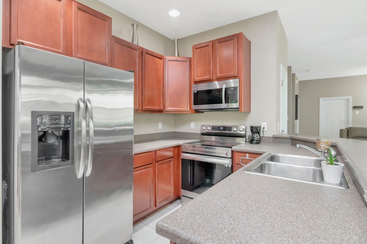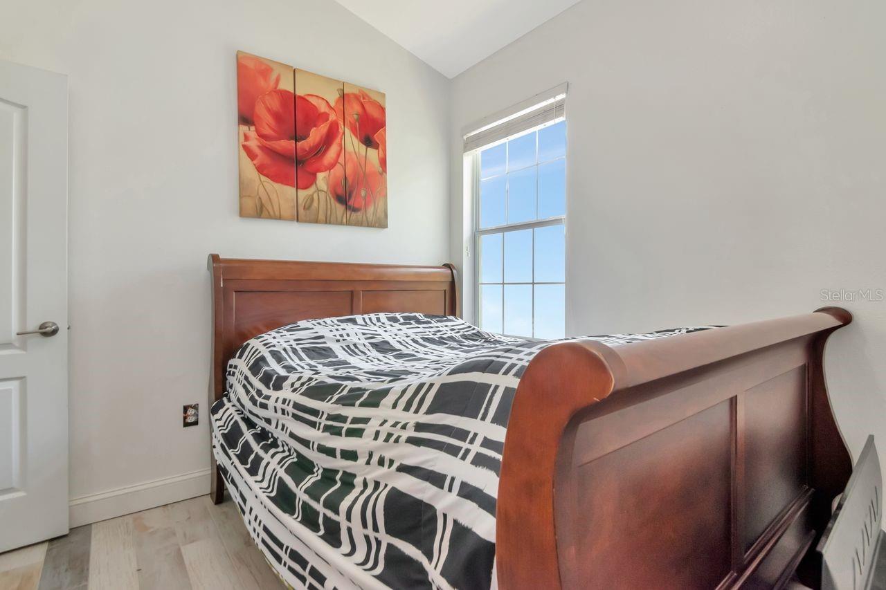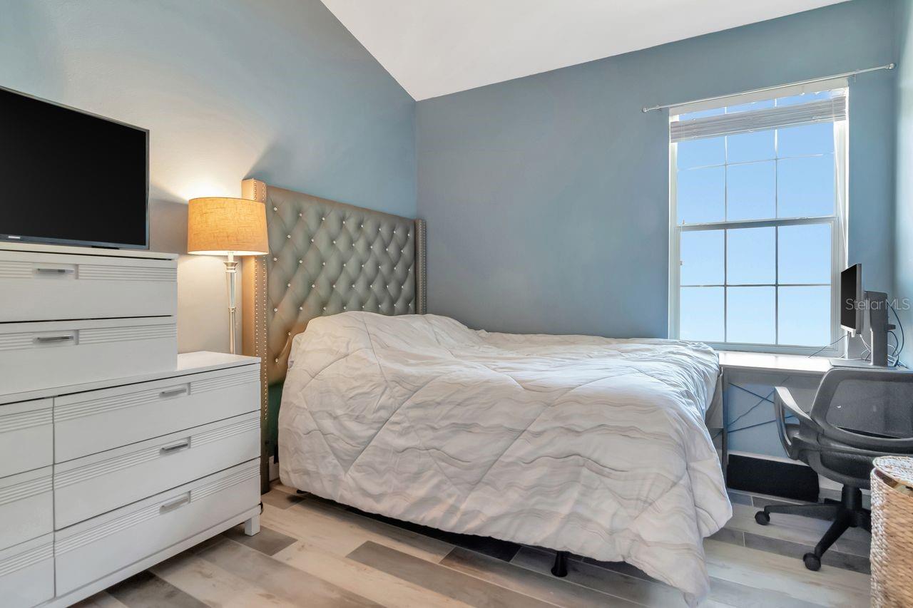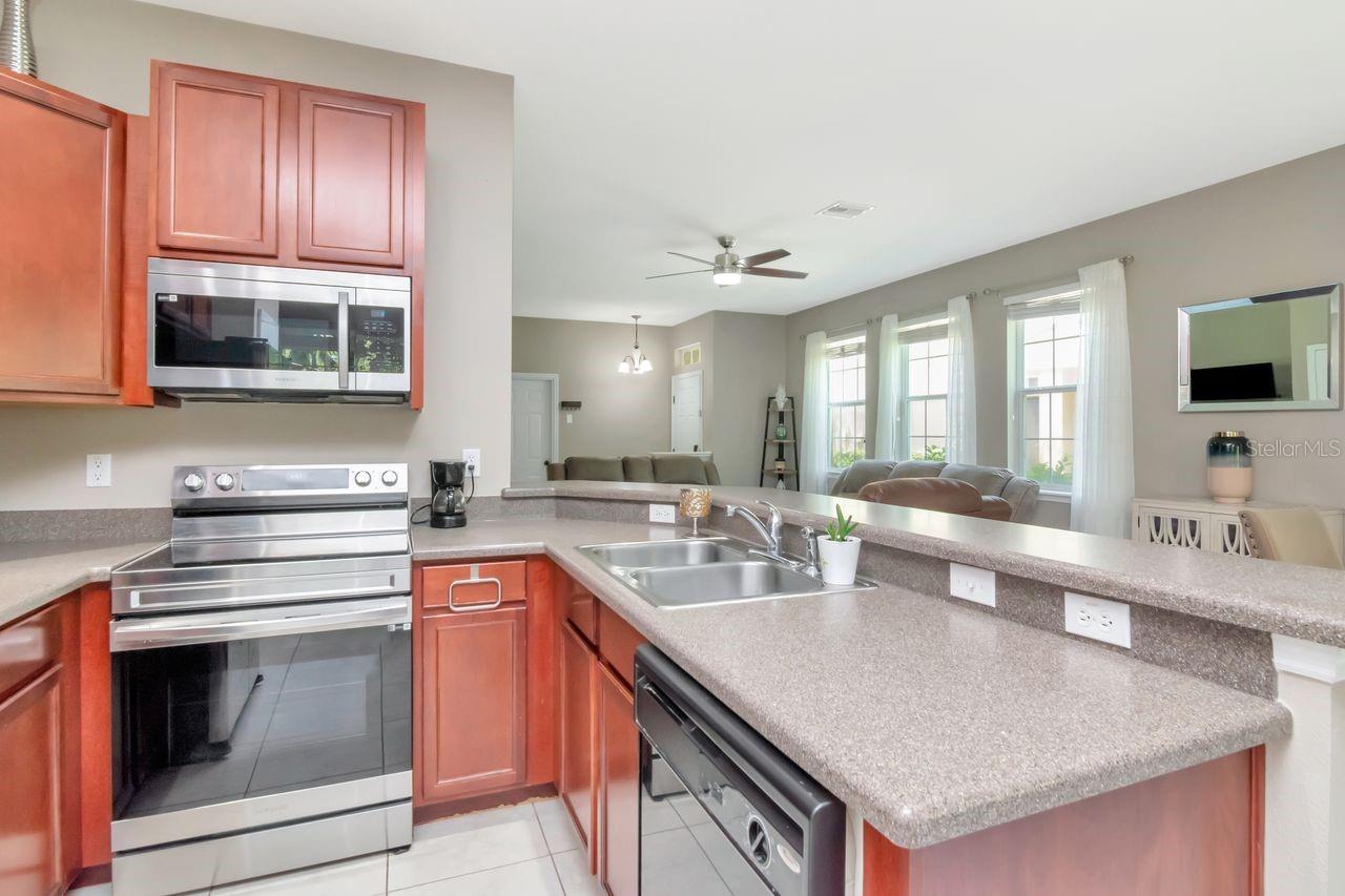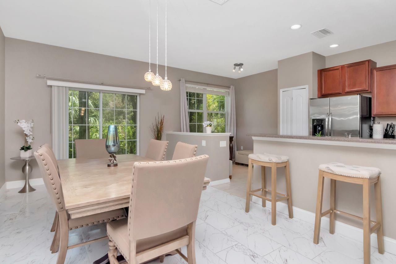 Welcome to this impeccably maintained, move-in ready end-unit townhome in the gated Eagle Palm pool community—where comfort, smart features, and modern upgrades come together. This two-story home offers three bedrooms, two-and-a-half baths, and a one-car garage. With no CDD fees makes this unit and neighborhood a very affordable option! Inside, you'll find a light-filled, open-concept living and dining area featuring durable Carrera marble look oversized ceramic tile, neutral paint throughout. The kitchen is the heart of the home and a standout feature, designed for both function and style with 42-inch wood cabinetry, a spacious breakfast bar, stainless steel appliances, recessed lighting, and a cozy dinette for casual meals. Upstairs, the spa-inspired primary suite offers a generous walk-in closet, dual sinks, and a soaking tub for the perfect end-of-day retreat. Two additional bedrooms share a beautifully appointed full bathroom, ideal for guests, family, or a home office setup. Laundry room is also conveniently located on the second floor. In the rear of the home, a private patio invites outdoor entertaining or quiet relaxation. The gated community also offers access to a resort-style pool and clubhouse. Located just minutes from MacDill Air Force Base, the Selmon Expressway, I-75, Brandon Mall, top shopping centers, Tampa airport, dining options, and the Xtreme Movie Theatre, this home is as convenient as it is beautiful. Ready for its next chapter, this Eagle Palm gem is a rare find. Schedule your private showing today and experience all it has to offer.