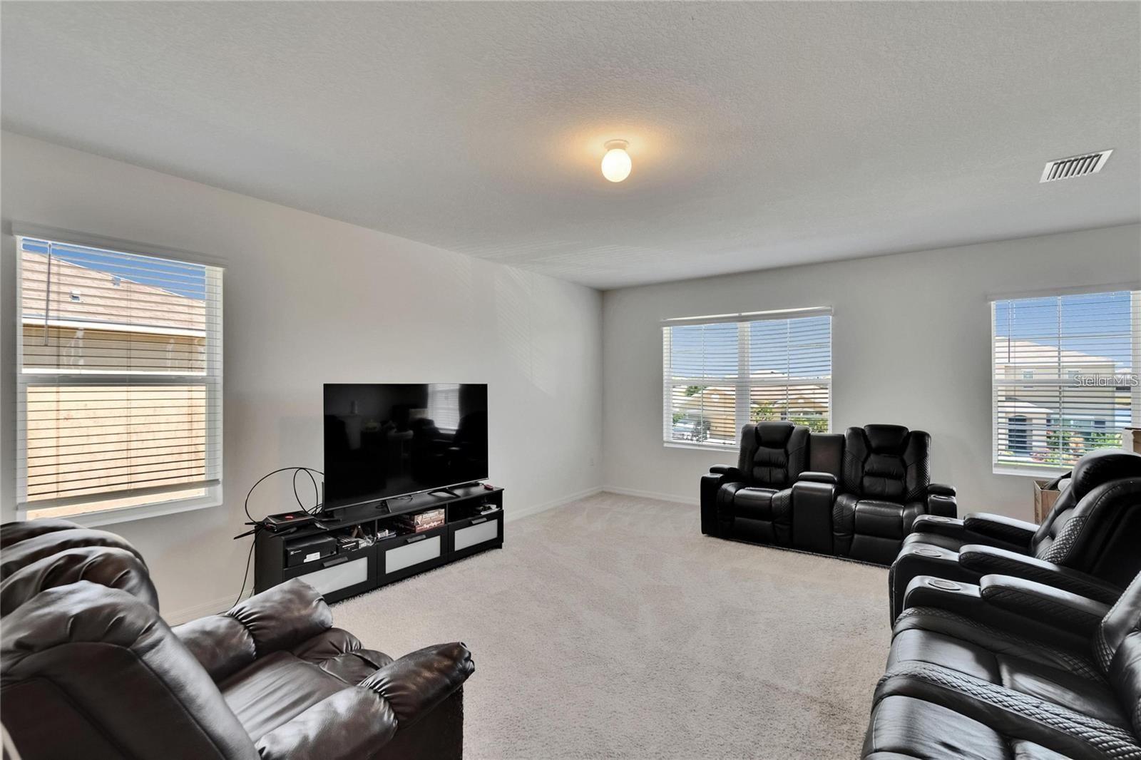 Spacious 5-bedroom, 2.5-bath home built in 2019, offering 2,889 sq ft of living space in the Carlton Lakes community. Features include a first-floor master suite with walk-in closet, open-concept kitchen with eat-in area, and a large upstairs loft suitable for various uses. Additional spaces include a den/office and a 2-car garage. Situated on a 6,437 sq ft lot with a manageable backyard. Low HOA fees. Conveniently located near shopping, dining, and major highways.