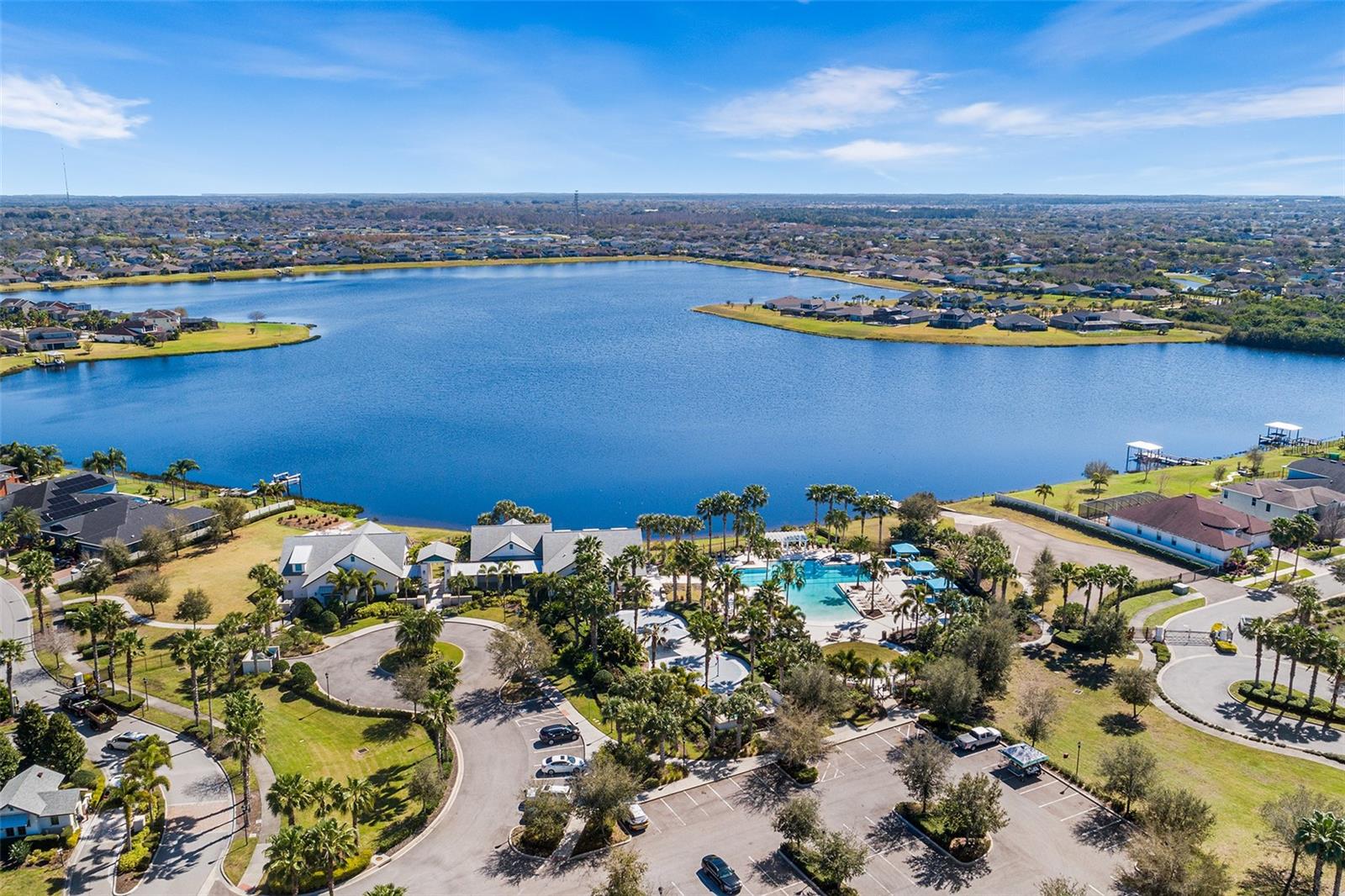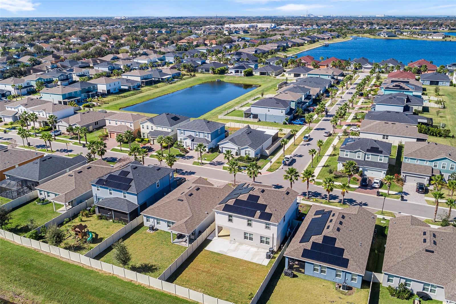 One or more photo(s) has been virtually staged. This home backs up to a lake and nature preserve! The Sellers have invested in many upgrades since they purchased this home including the 34 Solar Panel System, a 5 burner Gas Cooktop & Cabinet, a Double Oven & Cabinet, a new upgraded refrigerator , extra storage cabinets, Crown Molding, new washer & dryer, a refinished walk-in pantry, a Samsung 75 inch flatscreen TV, main floor bathroom cabinet & sink, Custom Curbing, PVC yard fencing with dual gates, ADT alarm system, Culligan water softener, a reverse osmosis water purification system, faucet and instant hot water faucet, Rain Gutters and French Drains, an extended paver driveway walk with a side paver walk to the back gate and a sidewalk to the patio, new Cabinets in the Laundry Room, and new cabinets in the Bedroom/office, cabinets in the Garage, along with 4 storage racks in the Garage. This is a gated, all-natural gas community which features privacy, resort-style amenities and a 78-acre private lake where you can kayak, fish, or just relax on the beach. The only thing between you and a day on the water is your imagination. This home backs up to an additional lake ensuring no future developments or neighbors behind the home offering more peace and quiet. When you first arrive, you will notice the exquisite curb appeal of this home. Featuring beautiful landscape and fresh laid sod, an extended paver driveway, as well as a fully fenced yard with dual gates. This Estero Bay Model by Ryan Homes with its 5 bedrooms, 3.5 baths, and a 3 car garage features include beautiful extended cabinets with custom crown molding for maximum storage, an extra-large island, granite counters and walk-in pantry. Don't miss the reverse osmosis water purification system with faucet, and an instant hot water faucet, both at the double sink - perfect for those tea drinkers and for faster cooking preparation! This lovely gourmet gas kitchen also features stainless steel appliances including refrigerator, 5 burner gas cook-top, double oven and microwave. The first floor has a large living room, formal dining room, spacious family room, along with a half-bath. When you head upstairs you will find enough bedrooms for the entire family, as well as any guest, office or hobby space you may need. One of the bedrooms has built-in cabinetry to easily serve as office/workspace. Another bedroom features its own private bath. The conveniently located second floor laundry room offers cabinets and plenty of storage space. In the large and luxurious master bedroom you will find tray ceilings, dual walk-in closets, and a gorgeous view of the peaceful and calming lake. The master bath offers a double vanity, large walk-in shower, and a deep tub for those looking to relax. This energy efficient home has been upgraded with a fully paid-off, 34 panel solar system which makes for a LOW electric bill. The seller only ever paid the TECO monitoring fee, and there are enough panels installed for future upgrades such as a pool or spa. For those looking for more than just a home, the Lucaya Lake Club community has so much to offer, with a gated entry, on-site lifestyle manager, sports field, zero-entry swimming pool, two splash pads, and a covered playground. Add in the beautiful clubhouse and 24-HOUR fitness center and you'll be living the lifestyle you've always dreamt of. This home is located near schools, hospitals, dining, entertainment.