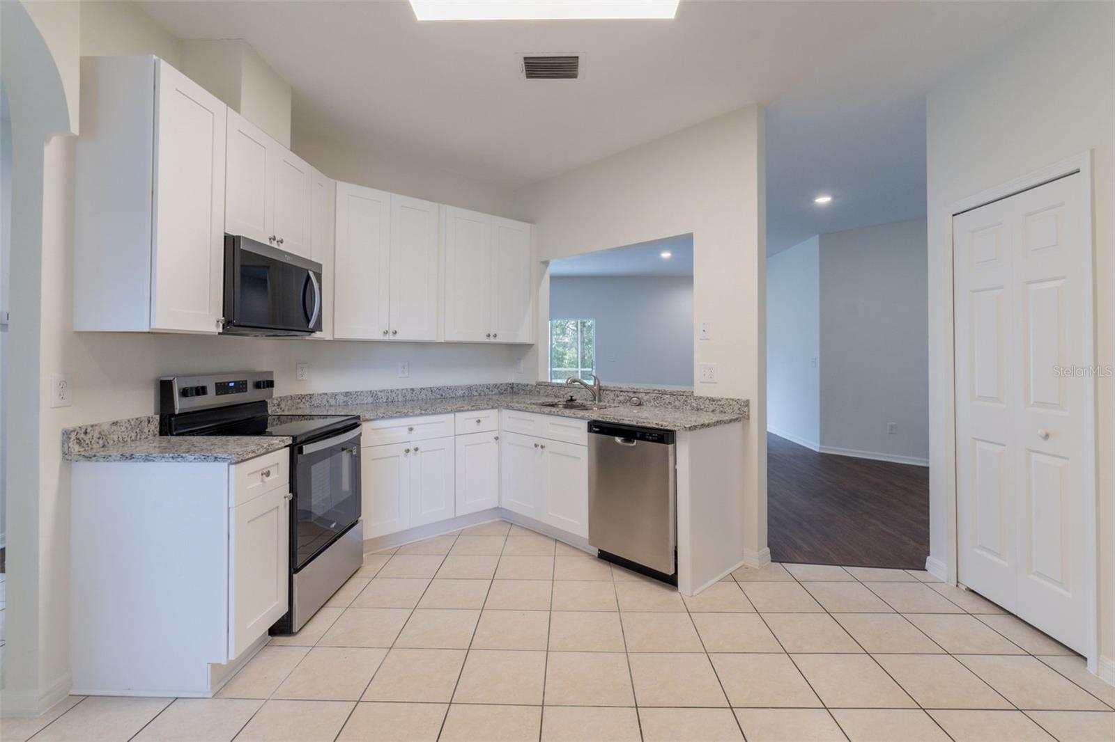 One or more photo(s) has been virtually staged. Stunning 1-story, 4-bedroom, 2-bathroom home with a 3-car garage and inviting foyer. The open floor plan allows a seamless view of the living room from the kitchen, while glass sliding doors bring natural light into the living space. The primary bathroom features a double vanity, separate tub and shower, and a spacious closet for all your storage needs. Enjoy outdoor living on the screened-in porch in the backyard. Schedule a showing today!